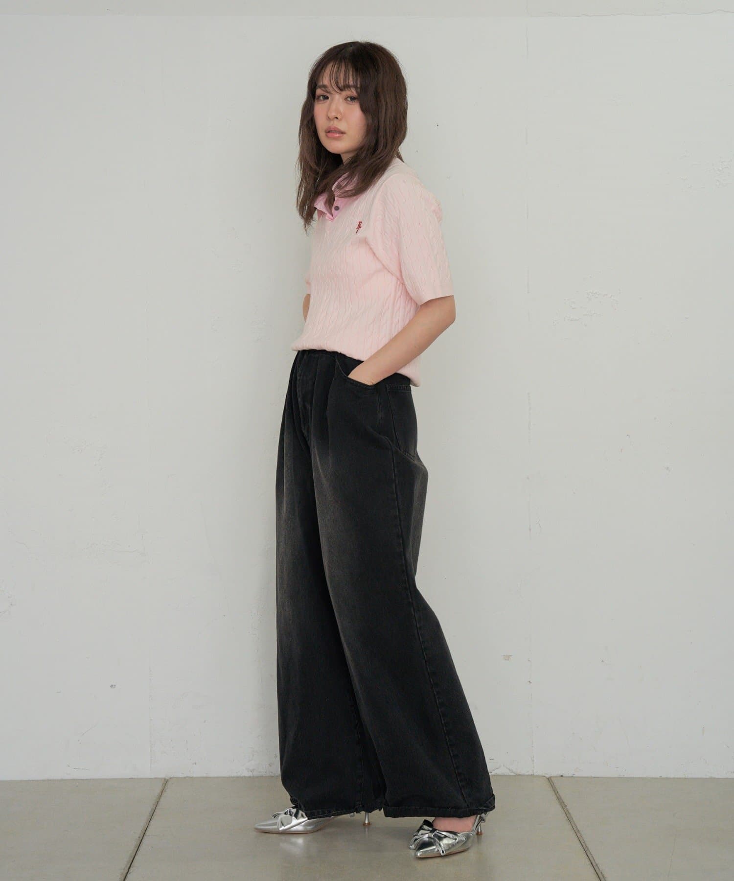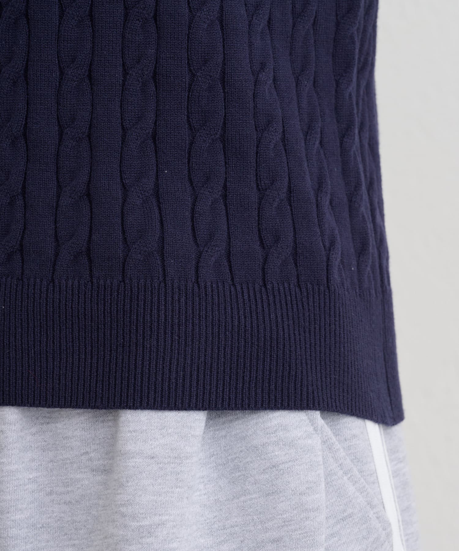 ロゴワンポイントに細かいケーブルニットが大人かわいい!