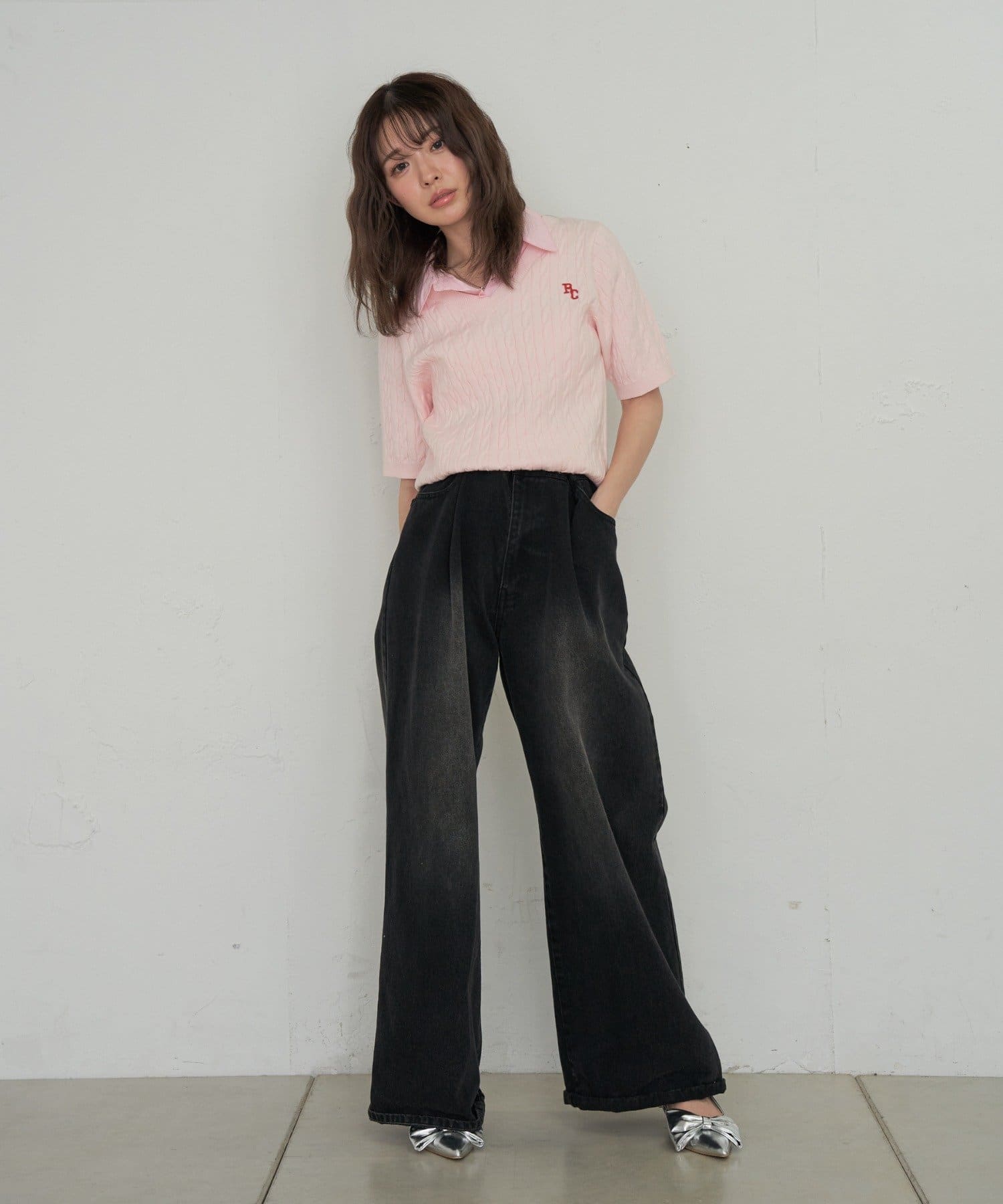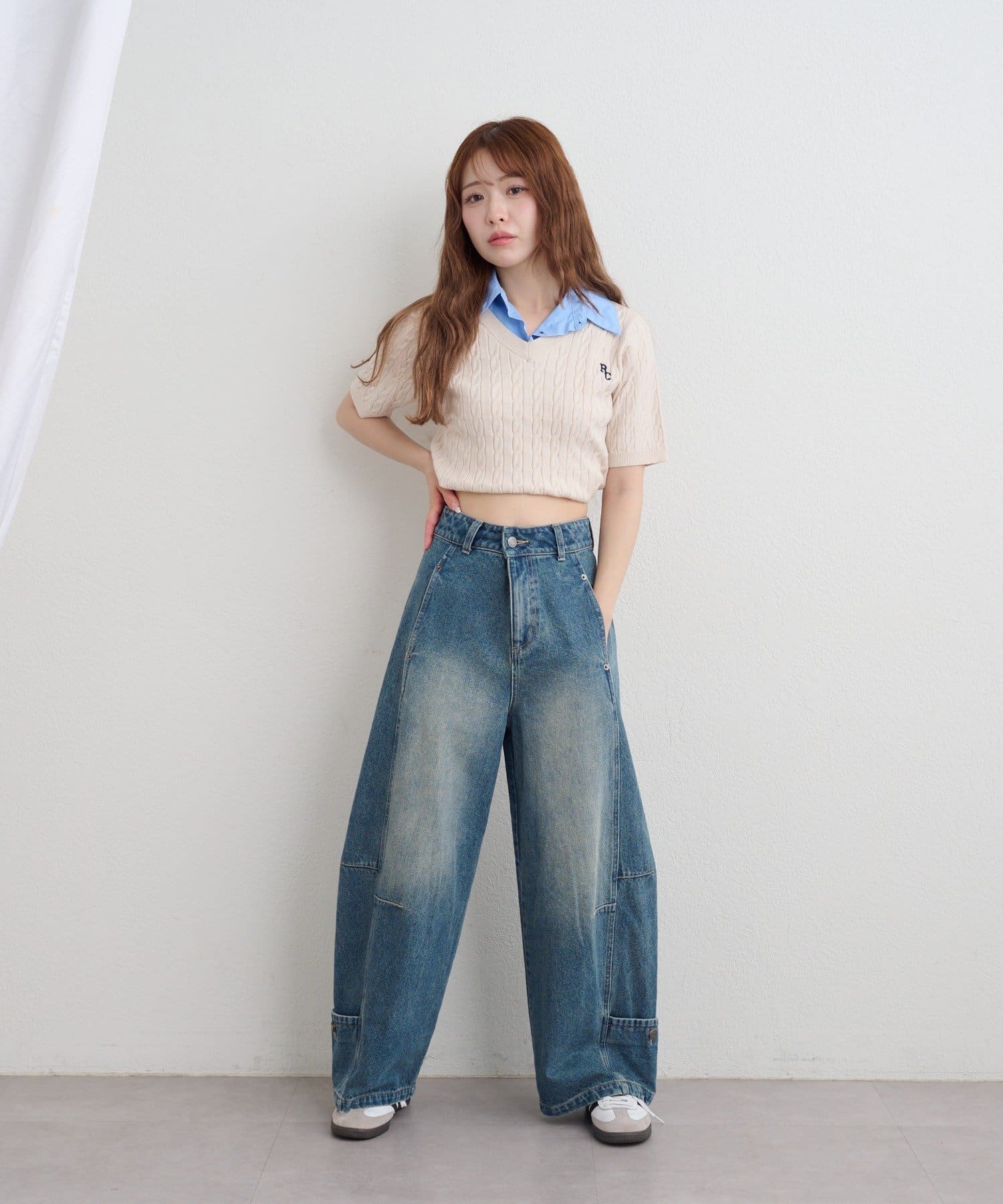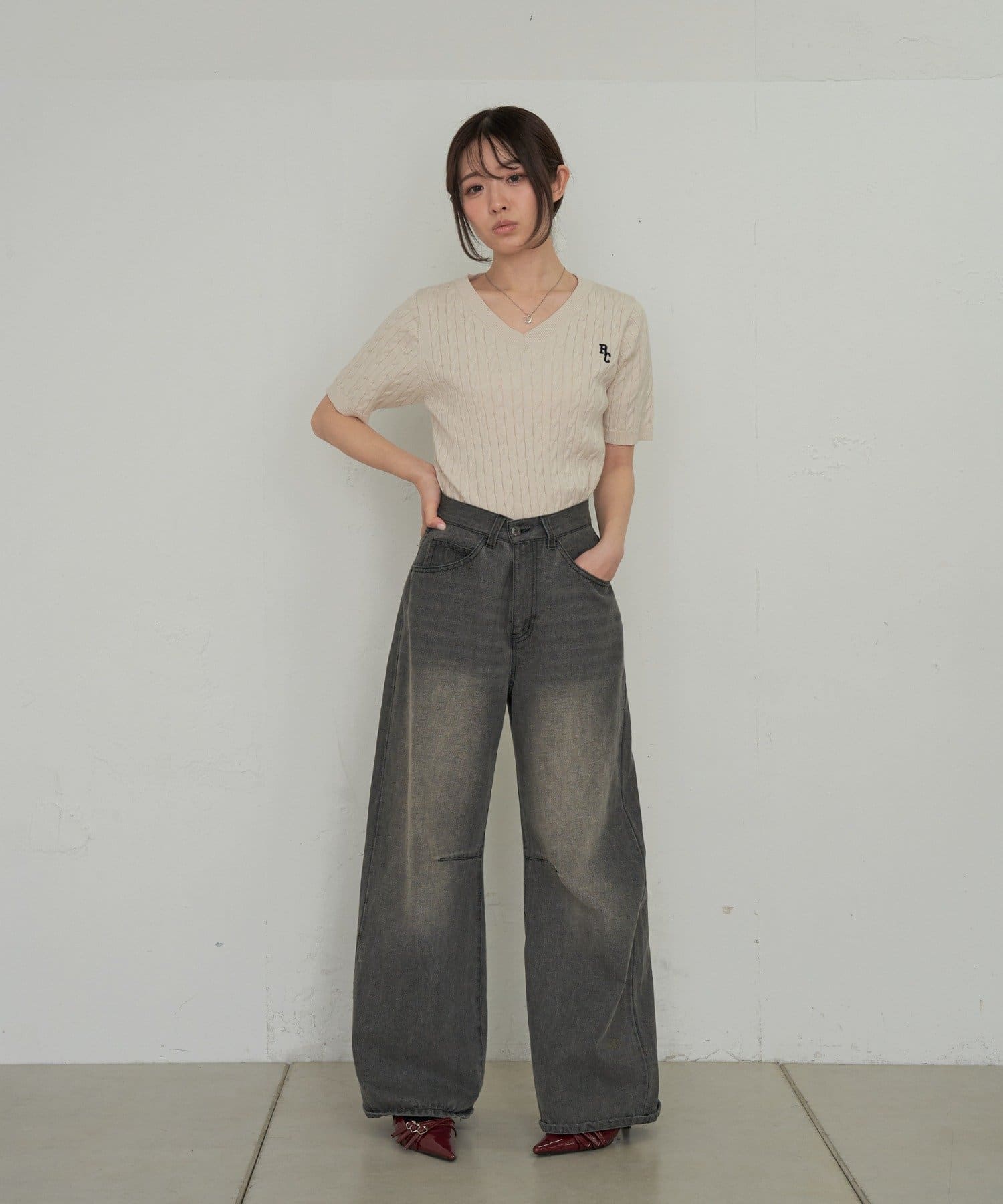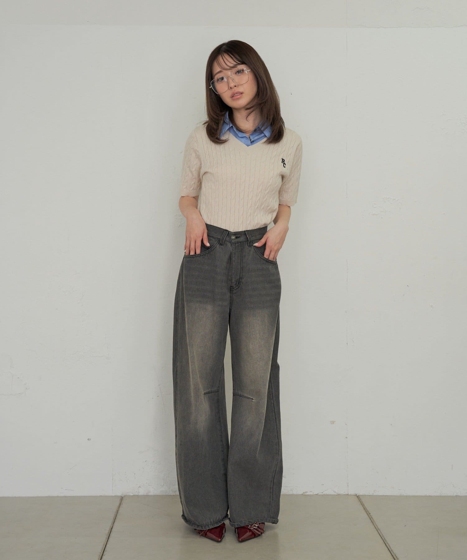 ▶襟付ルーズケーブルVネックニット-長袖ver-はこちら◎