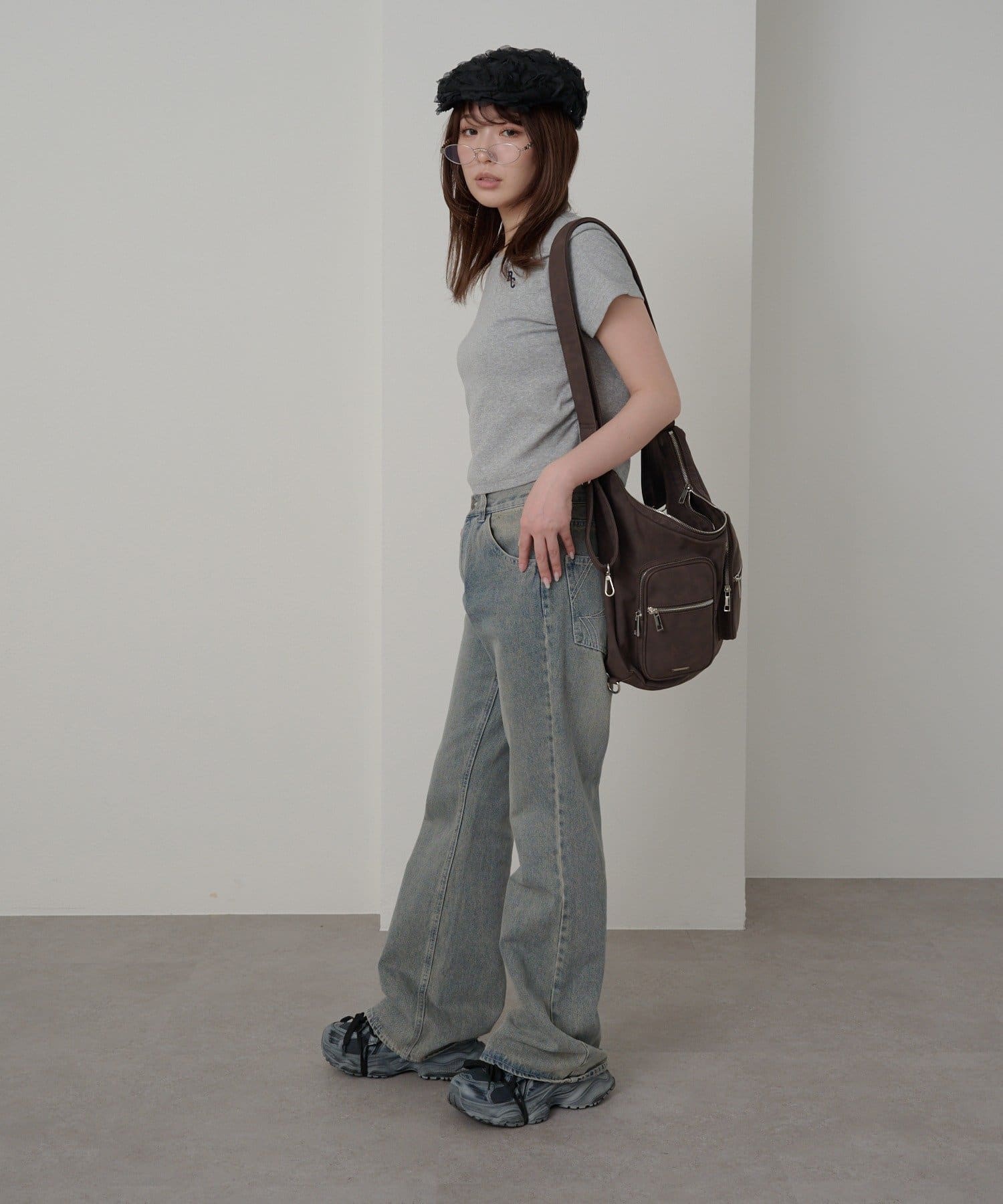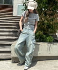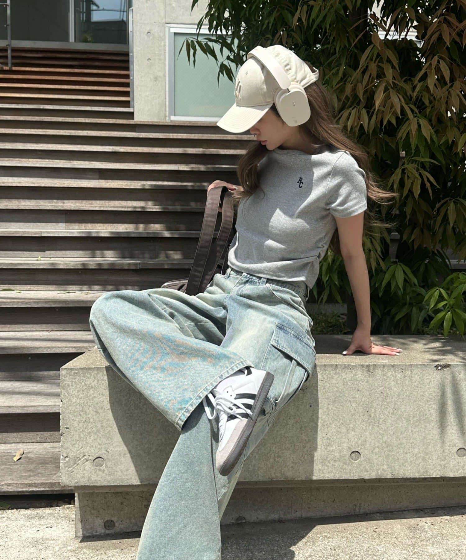 ・カジュアルにデニム合わせやミニボトムで甘めにするのもおすすめ。