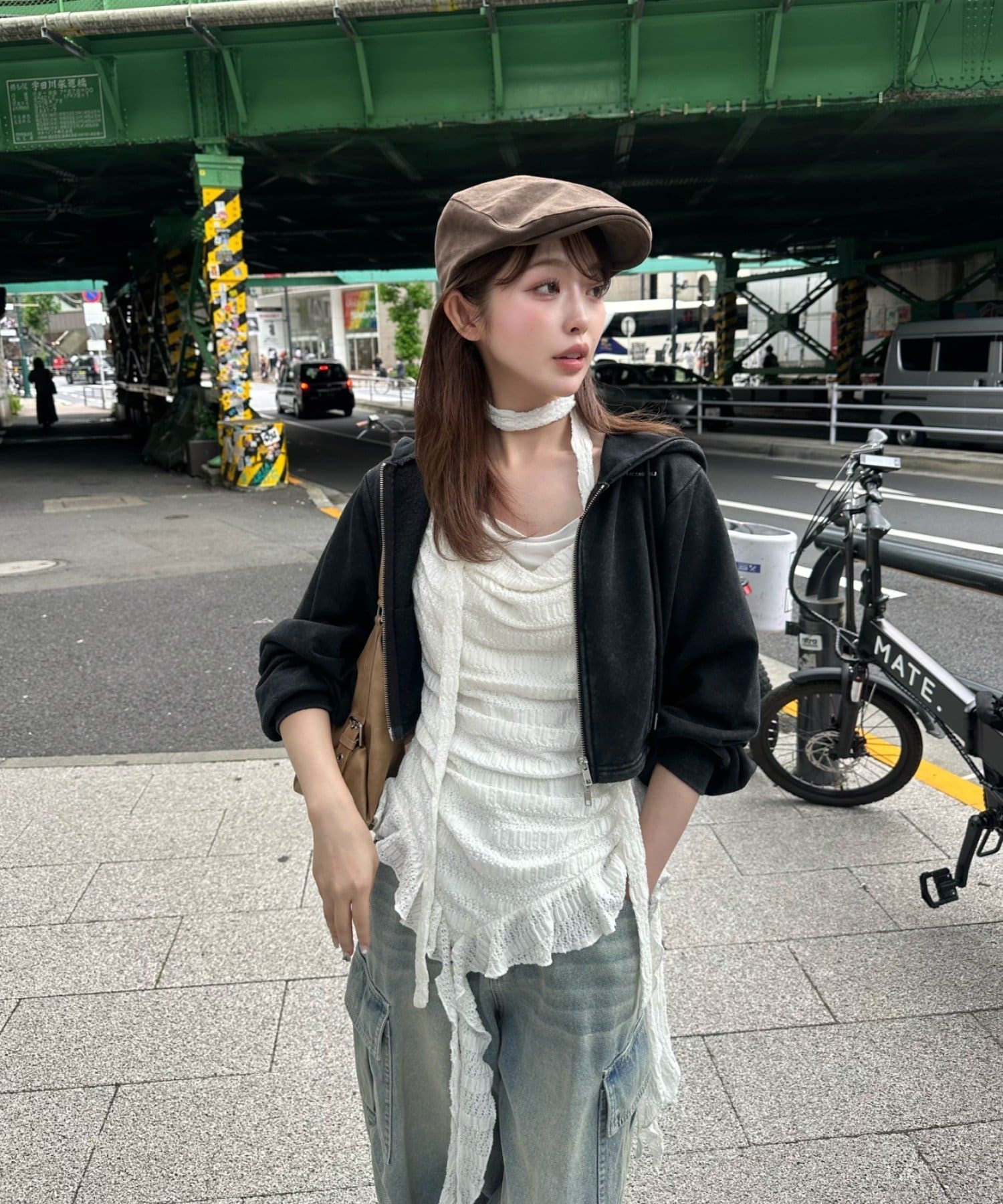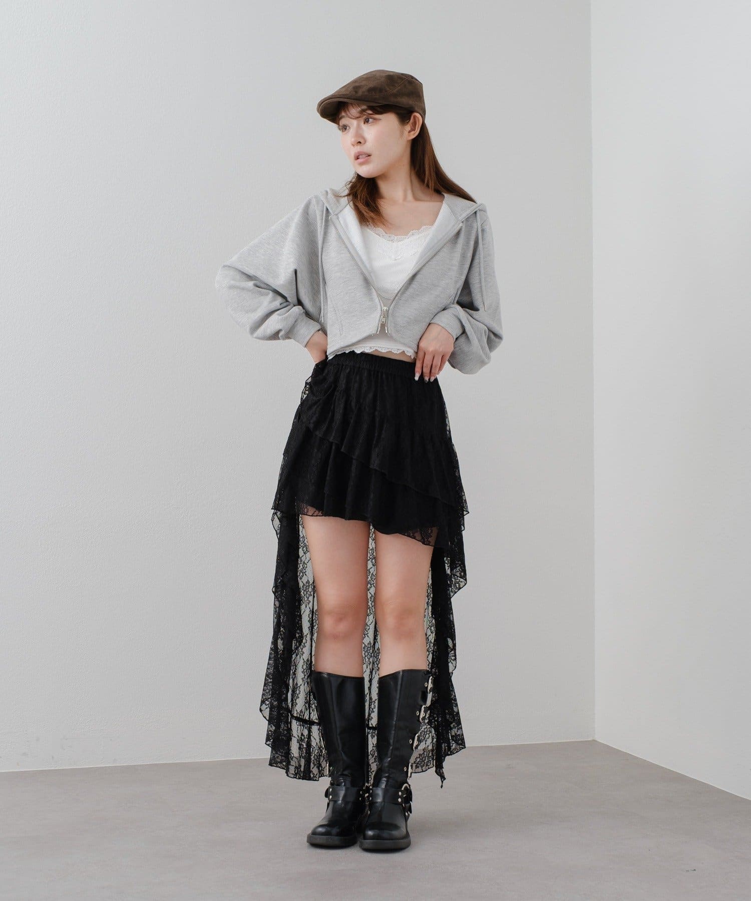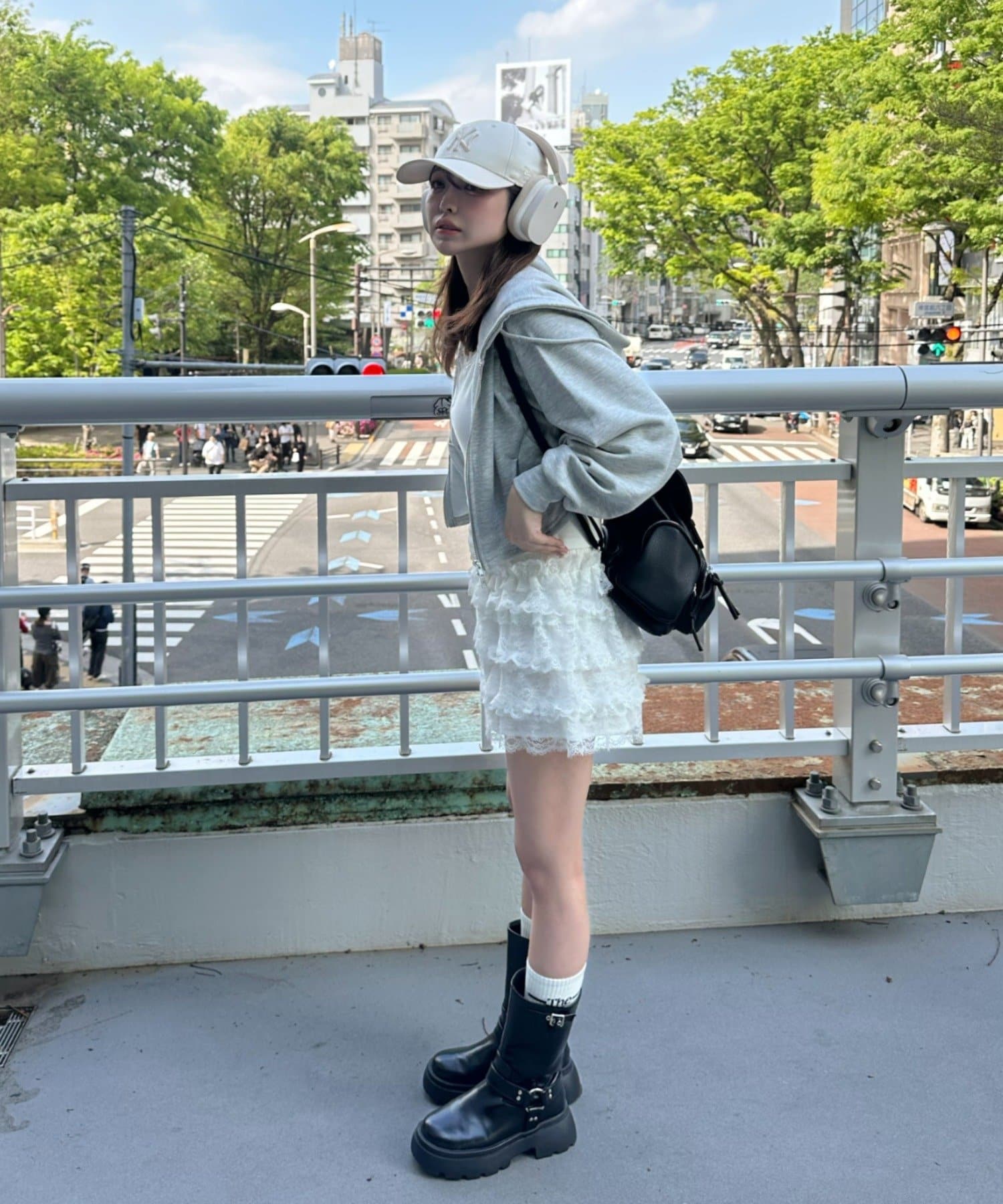 ジップを開けてレースインナーをみせるとかわいくておすすめです。