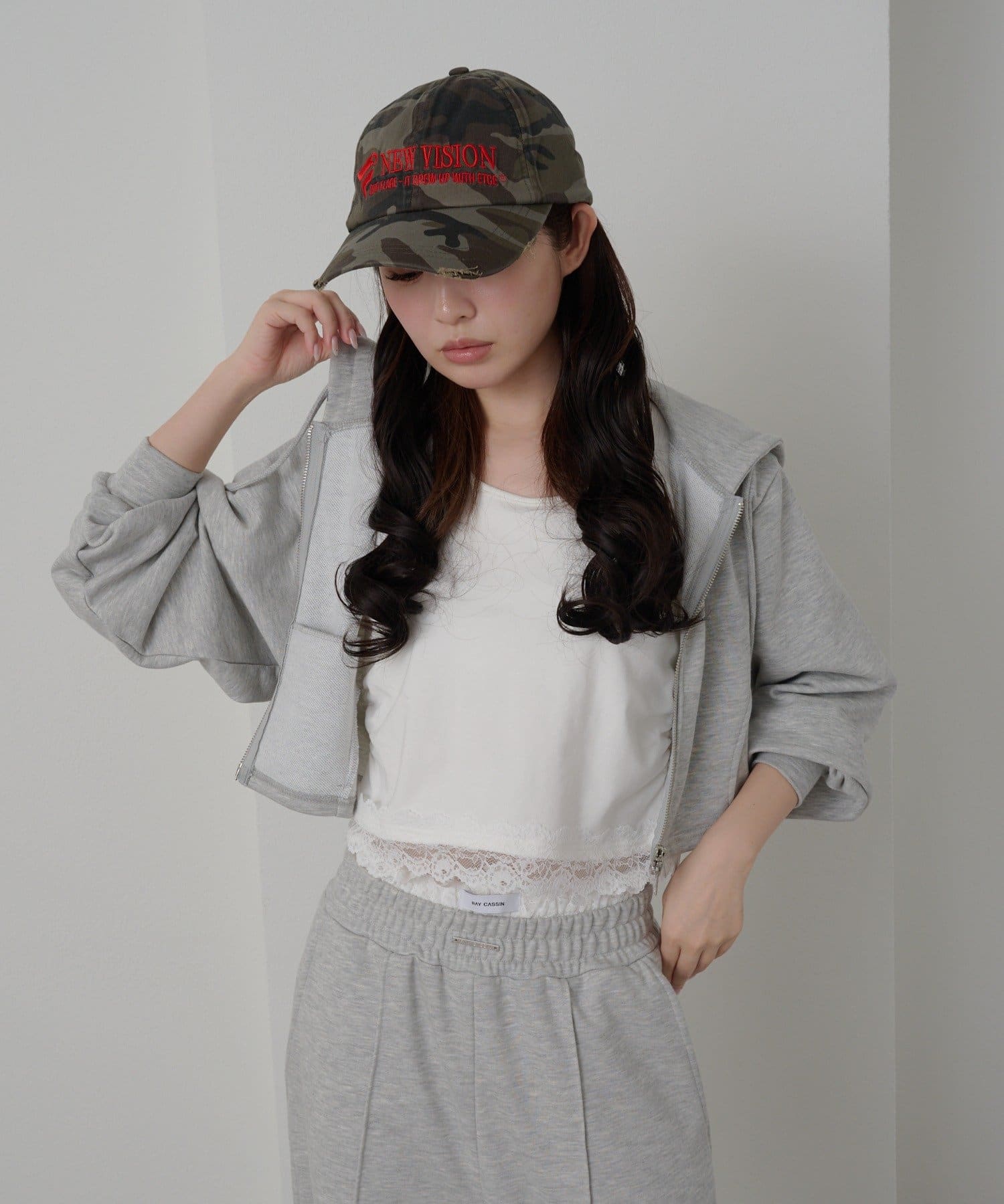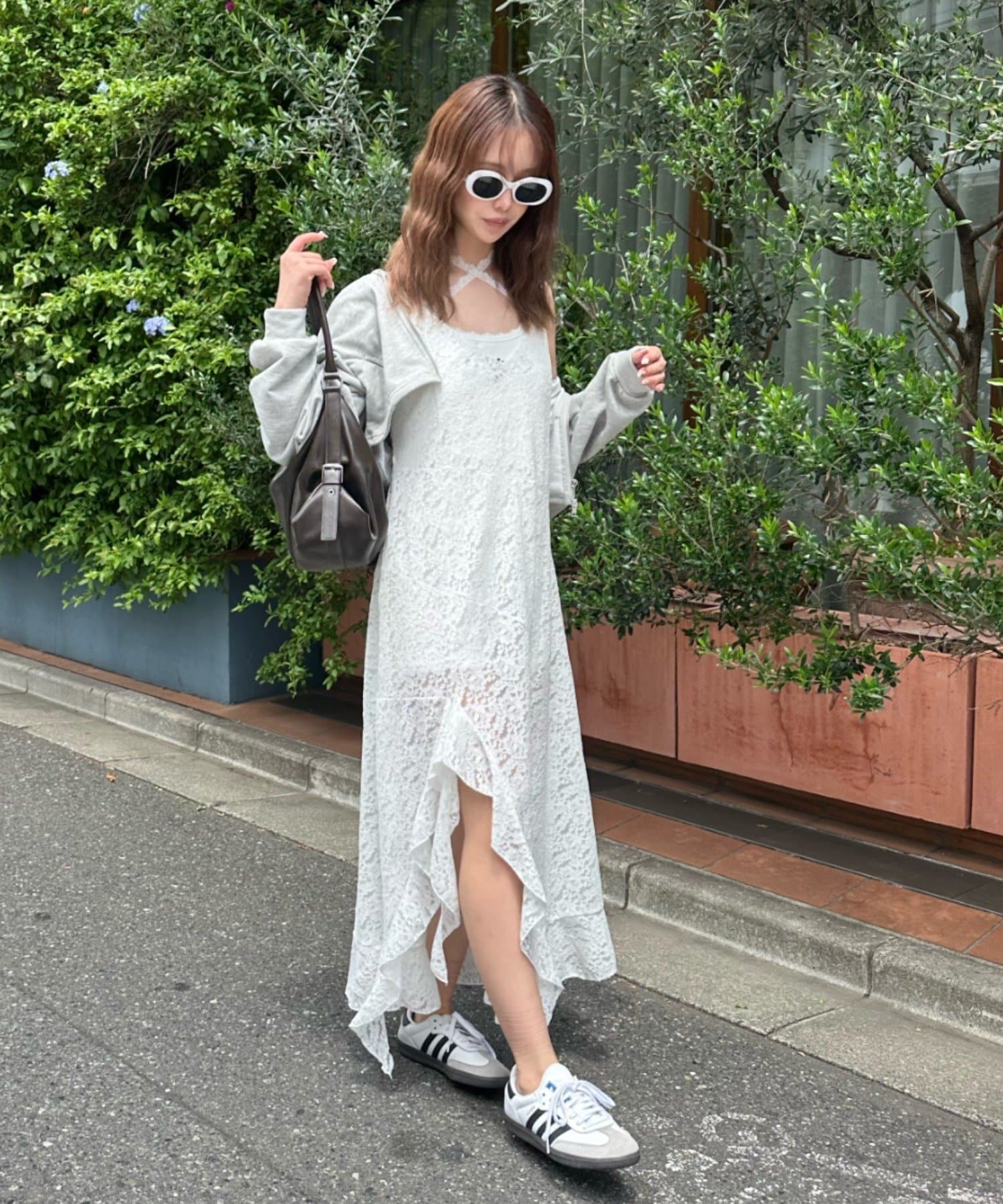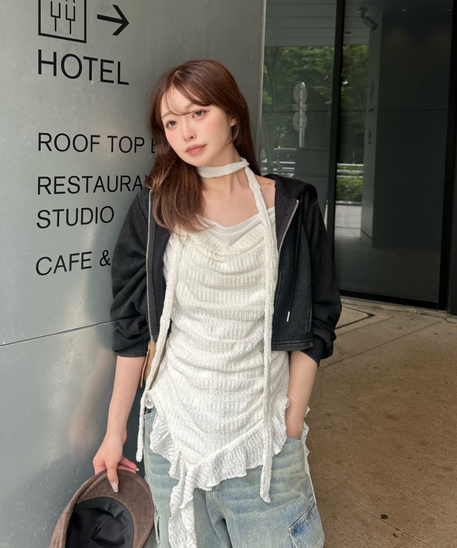 ジップを開けてレースインナーをみせるとかわいくておすすめです。