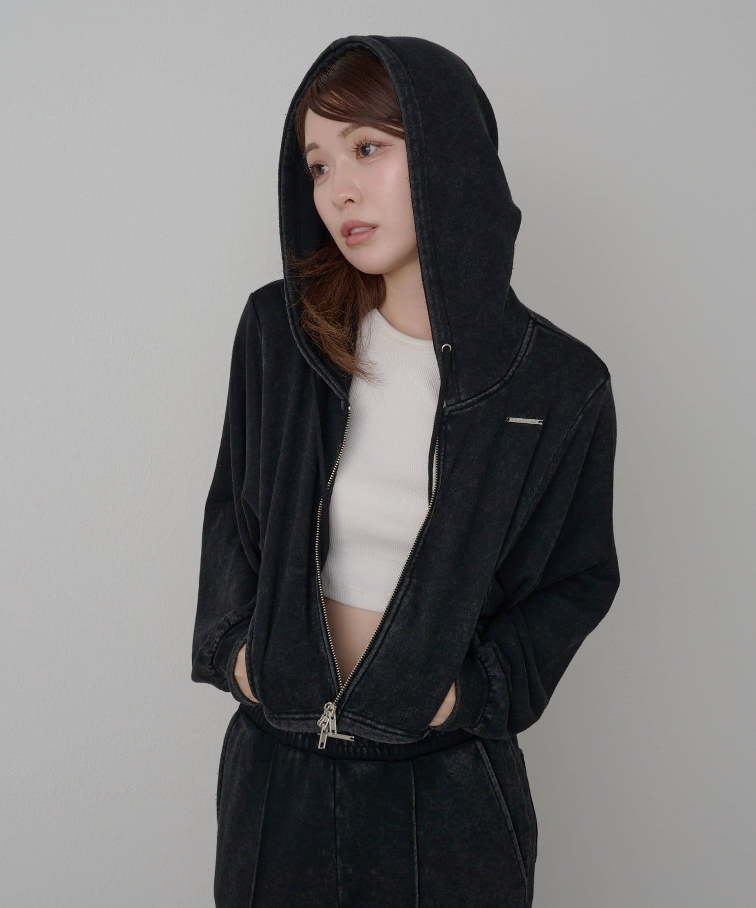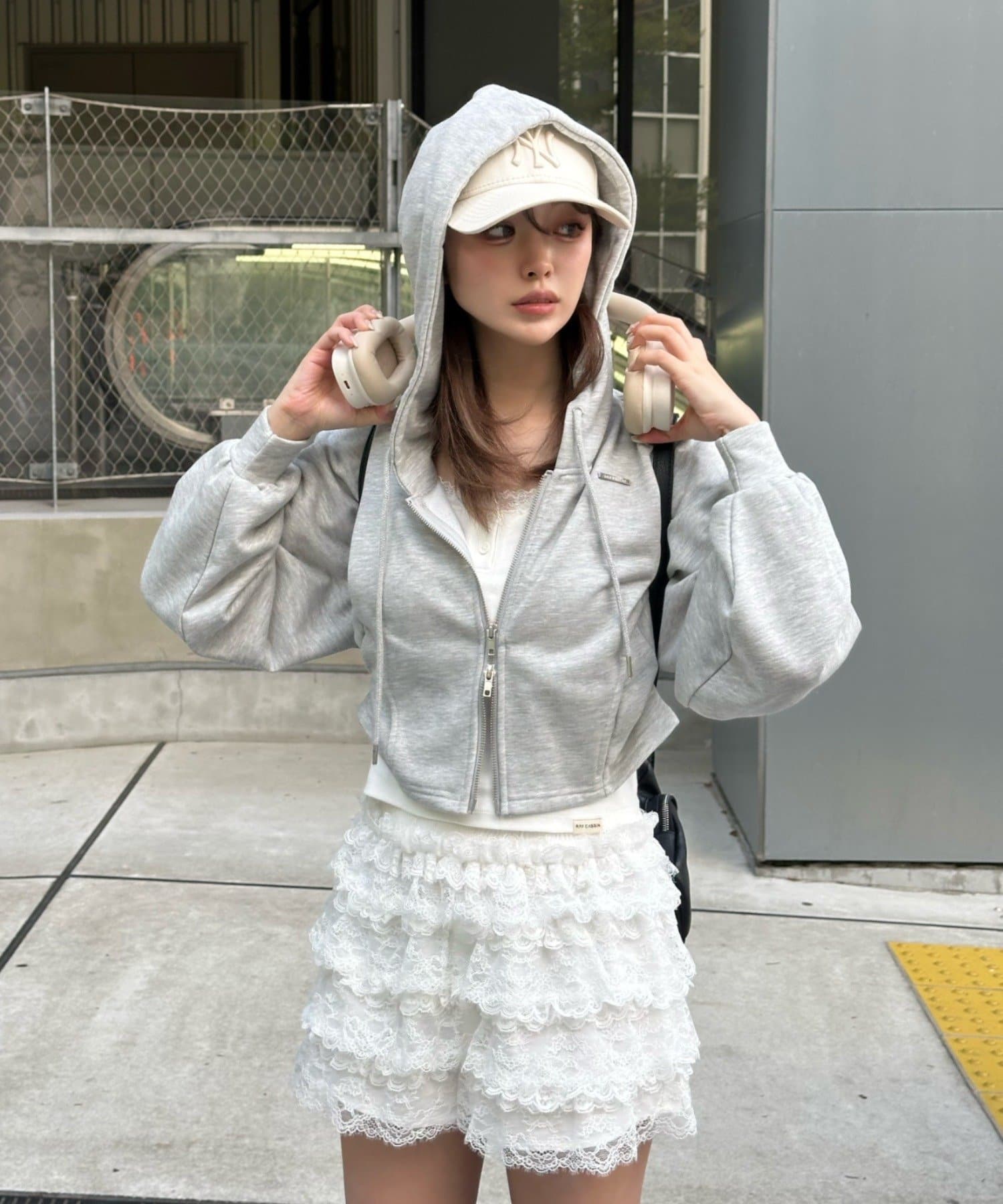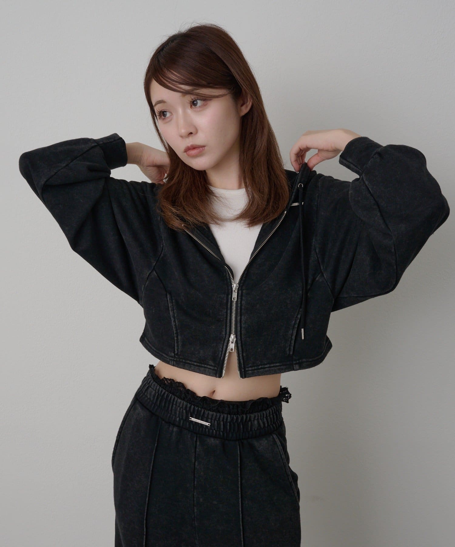 ・着るだけでスタイルアップを叶えてくれるショート丈が魅力のダブルジップパーカー。