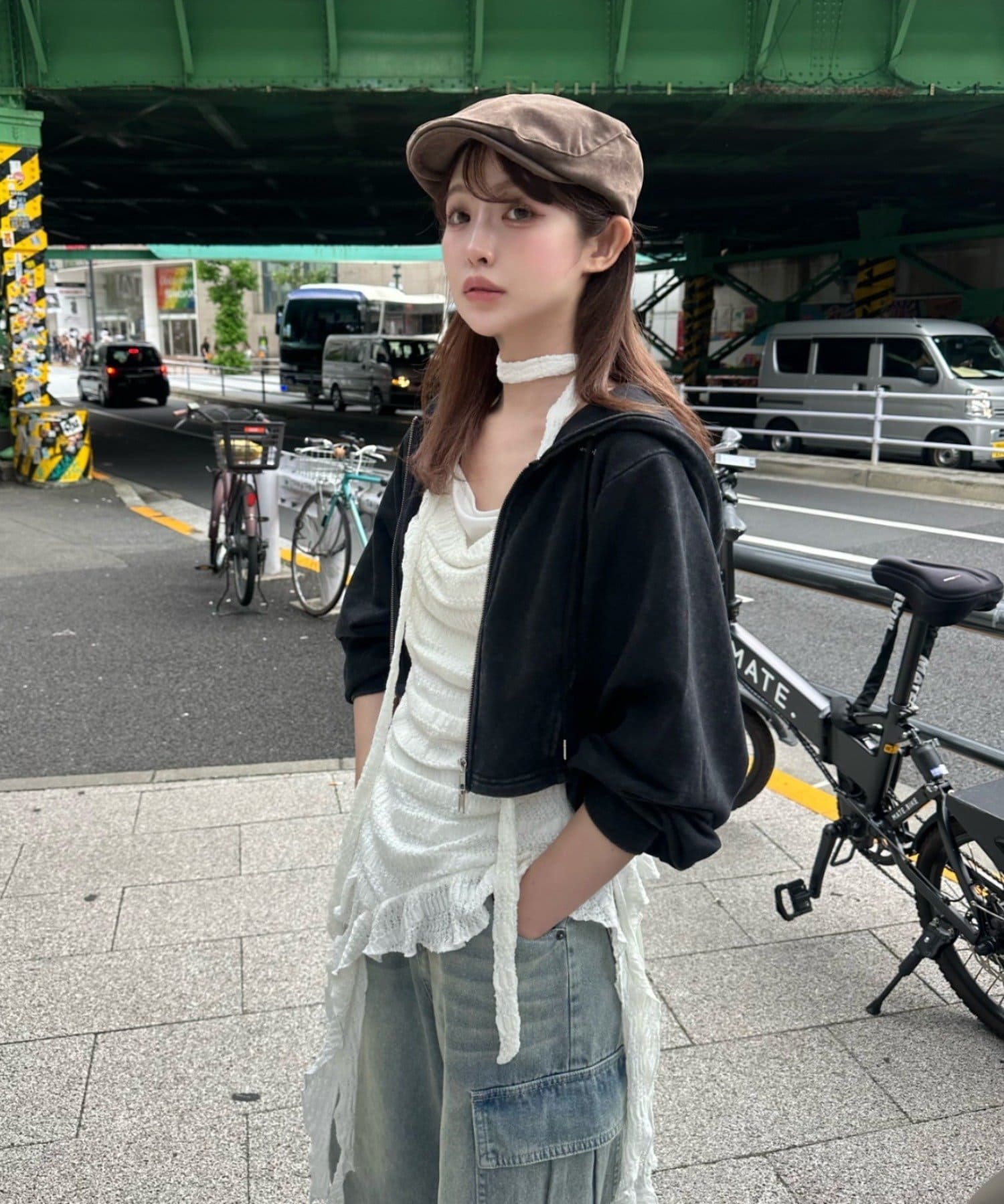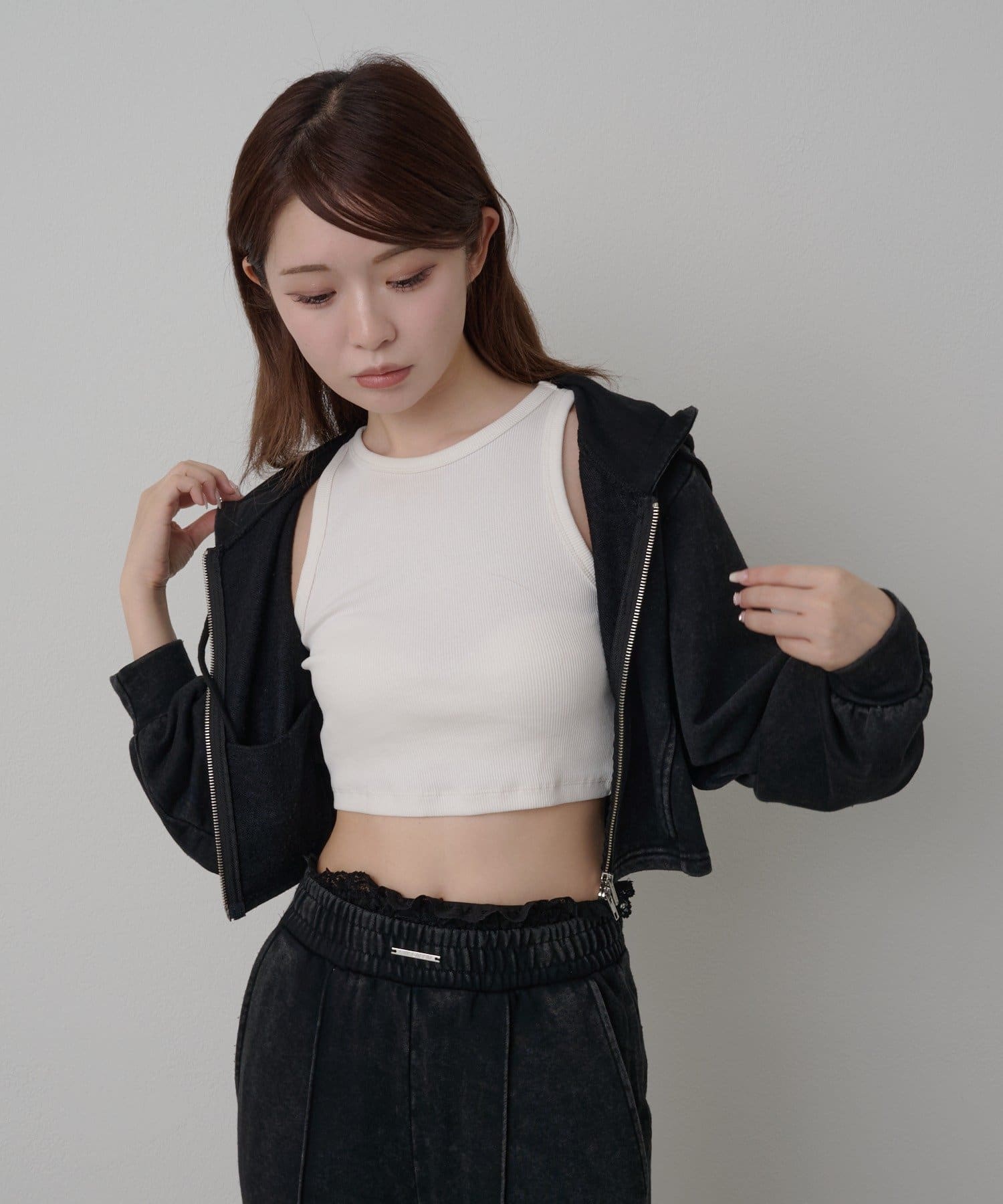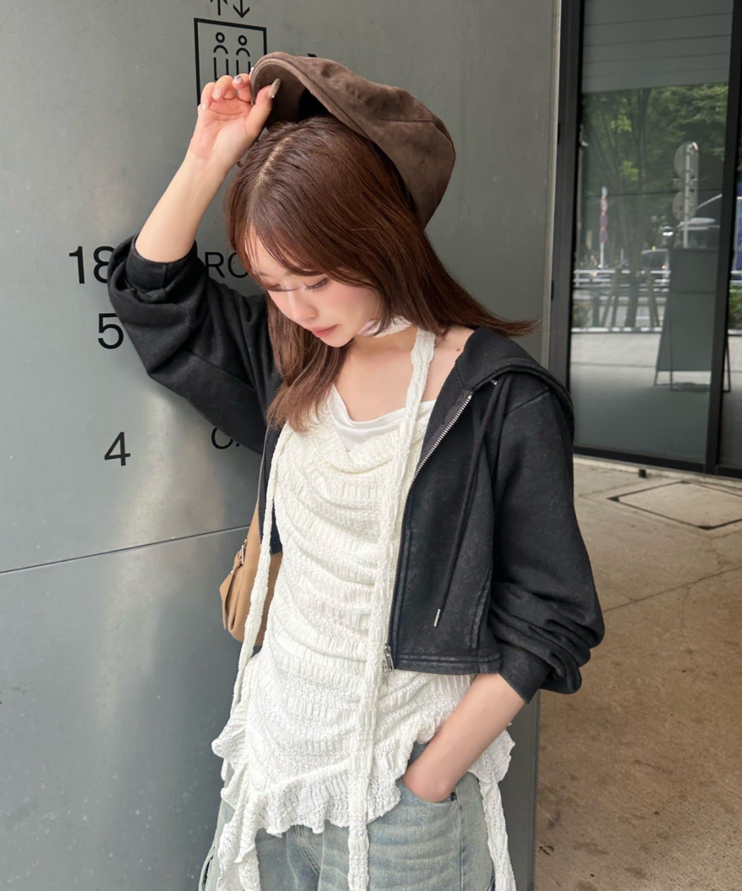 ・着るだけでスタイルアップを叶えてくれるショート丈が魅力のダブルジップパーカー。