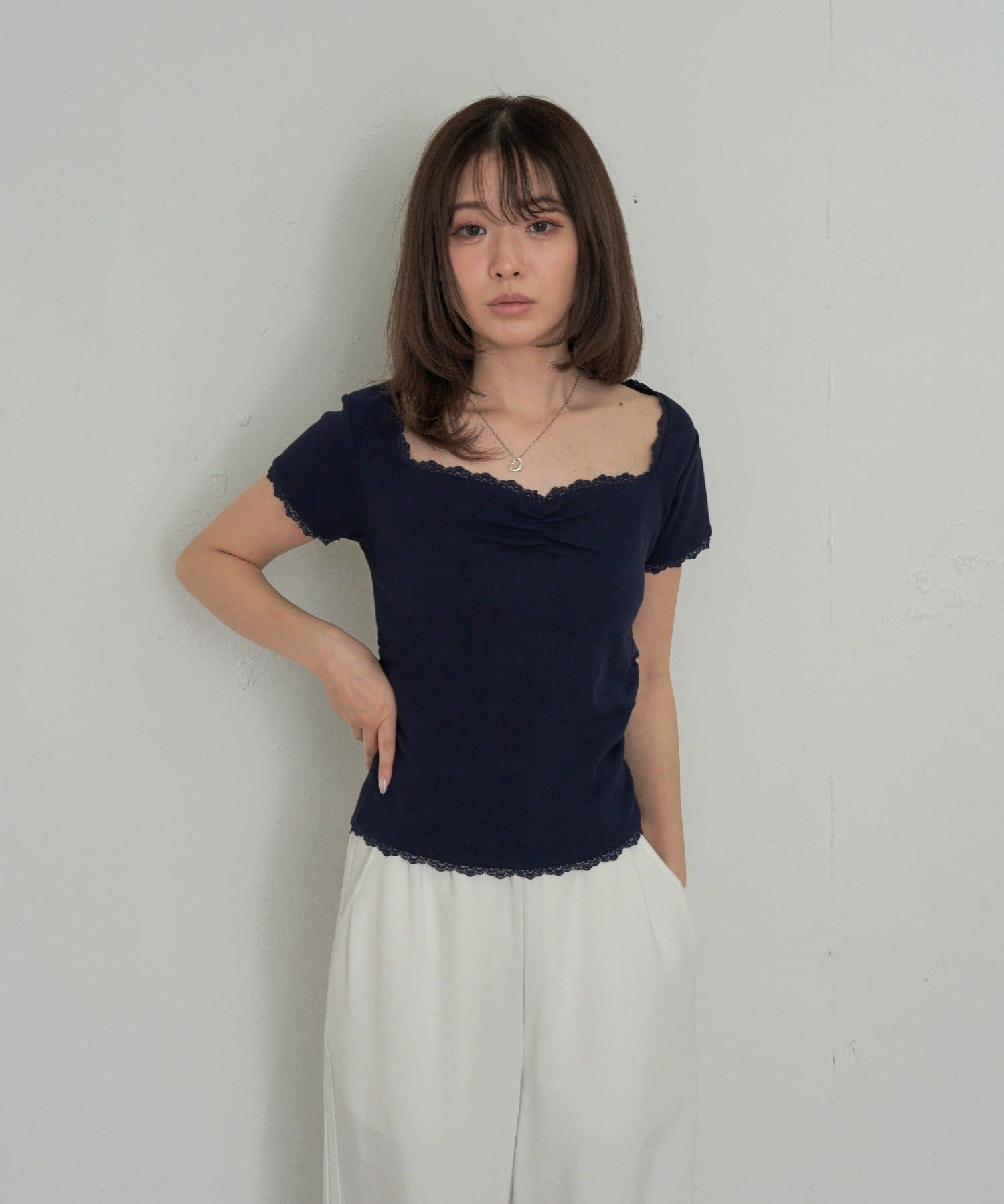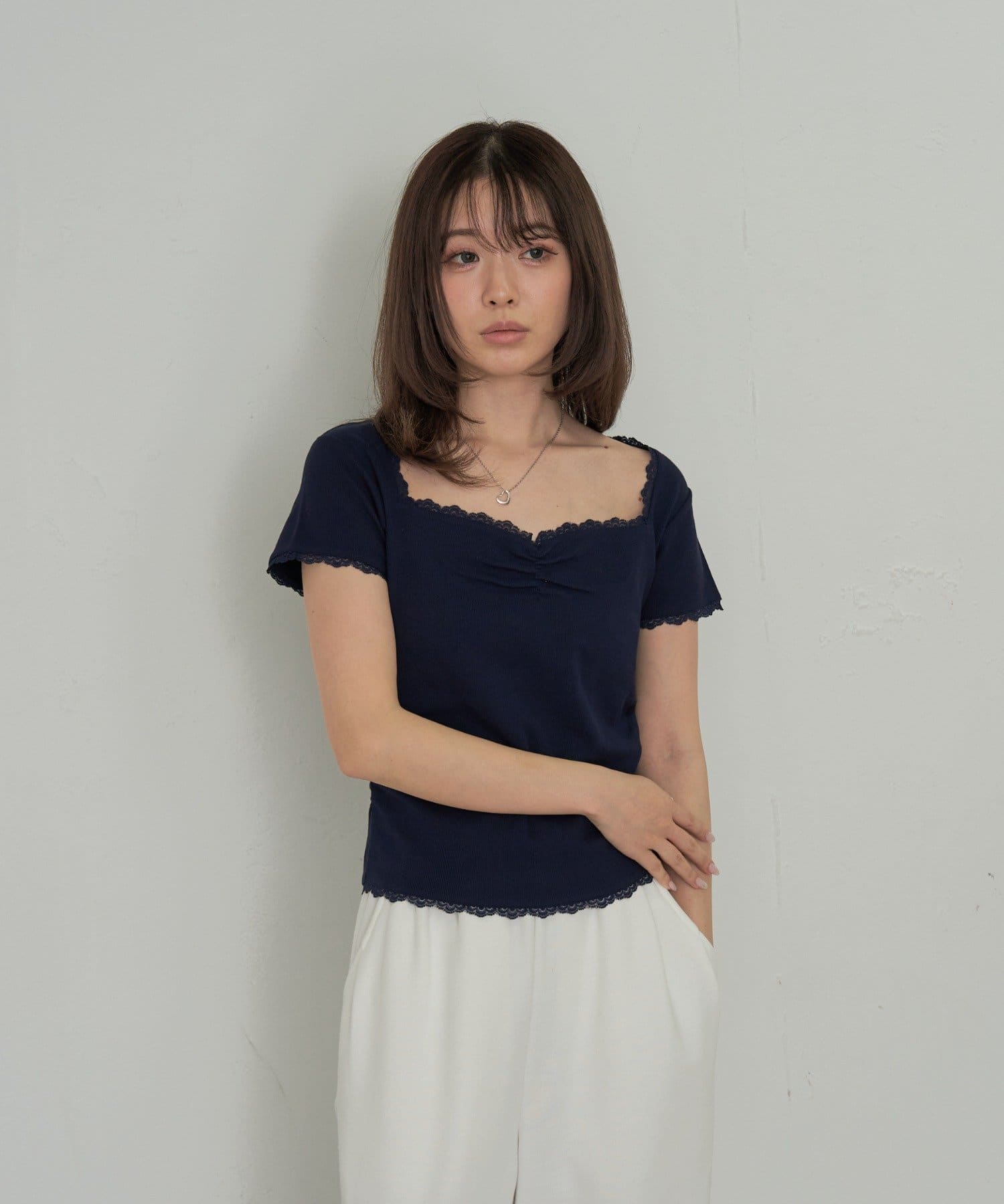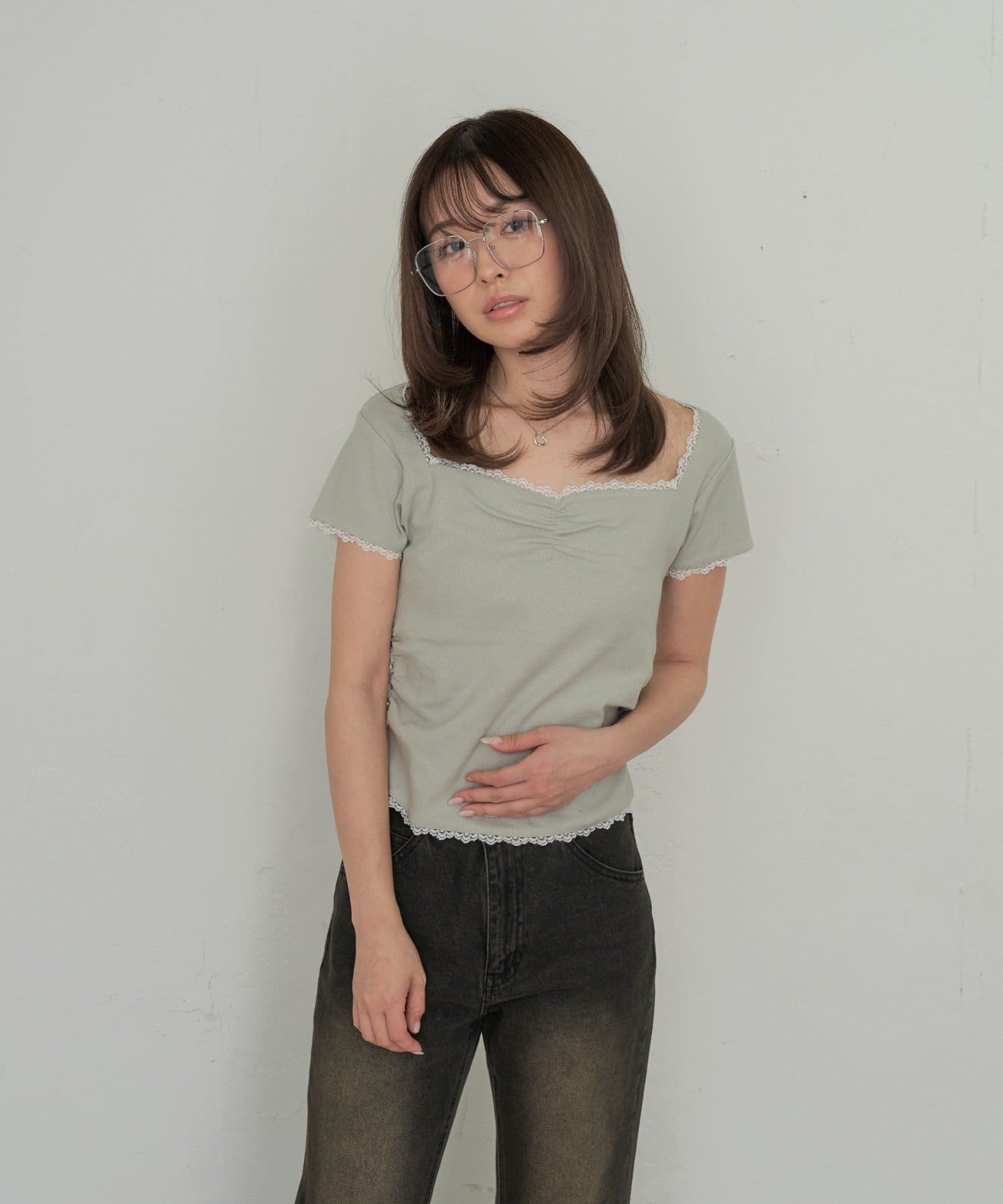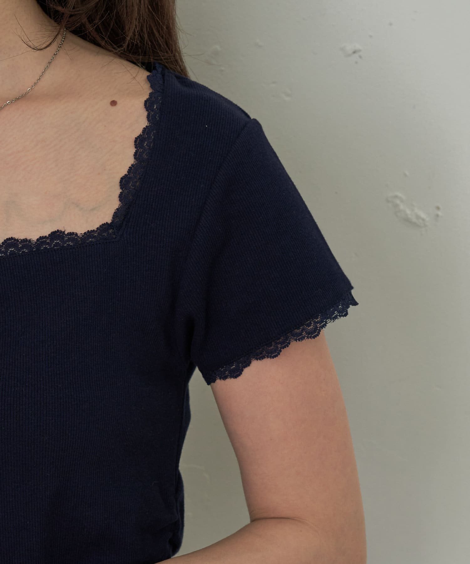 レース / くびれ / スクエアネック / ミニトップス / 海外ファッション