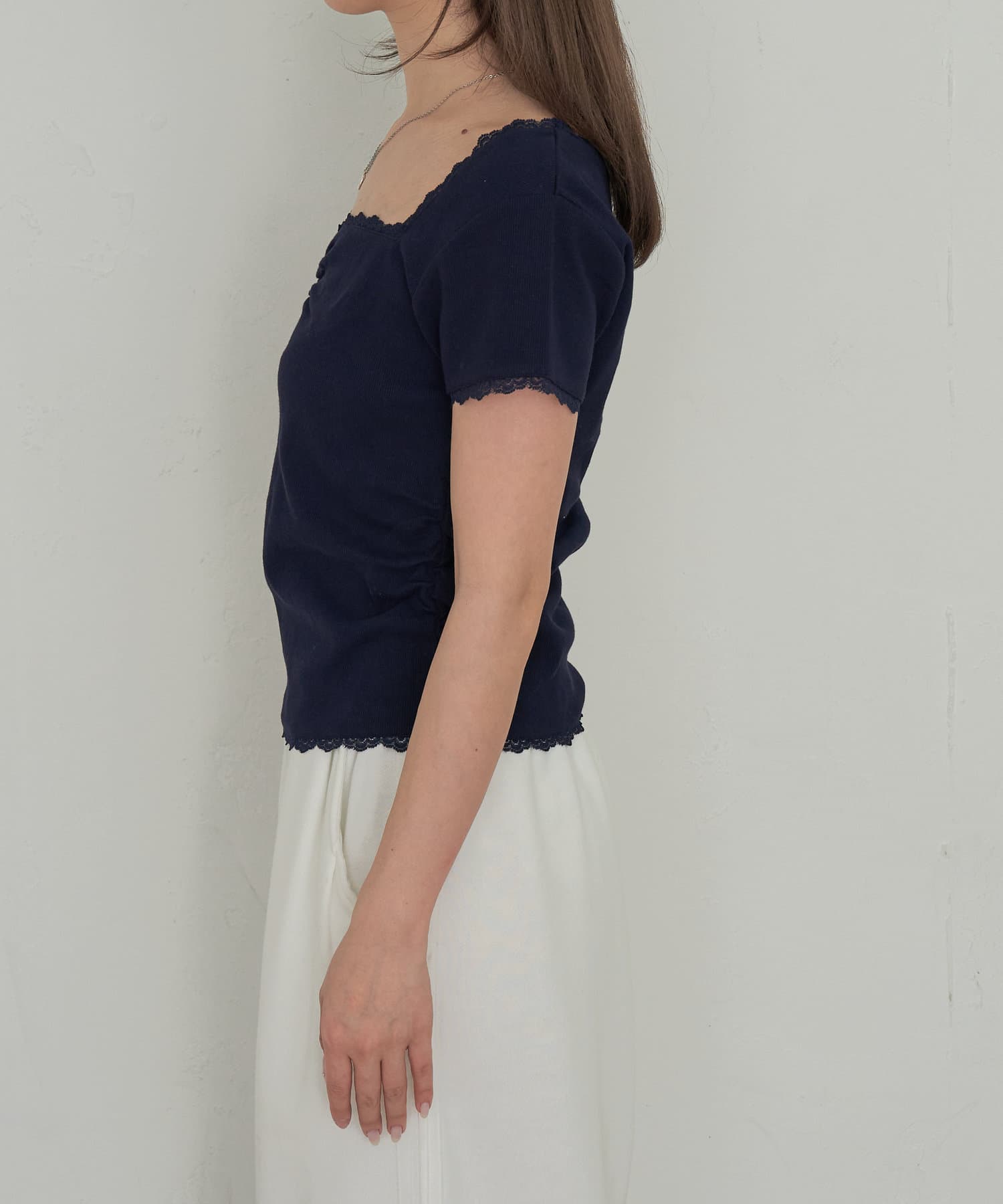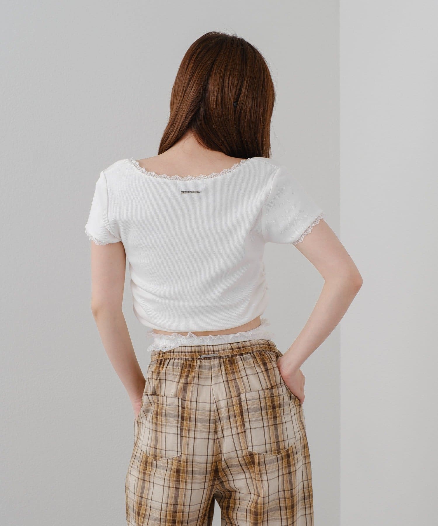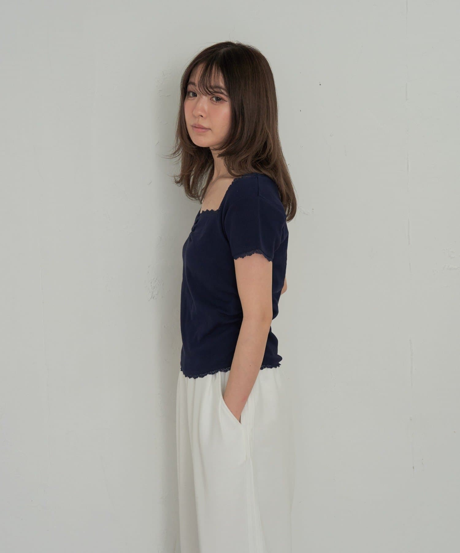 レース / くびれ / スクエアネック / ミニトップス / 海外ファッション