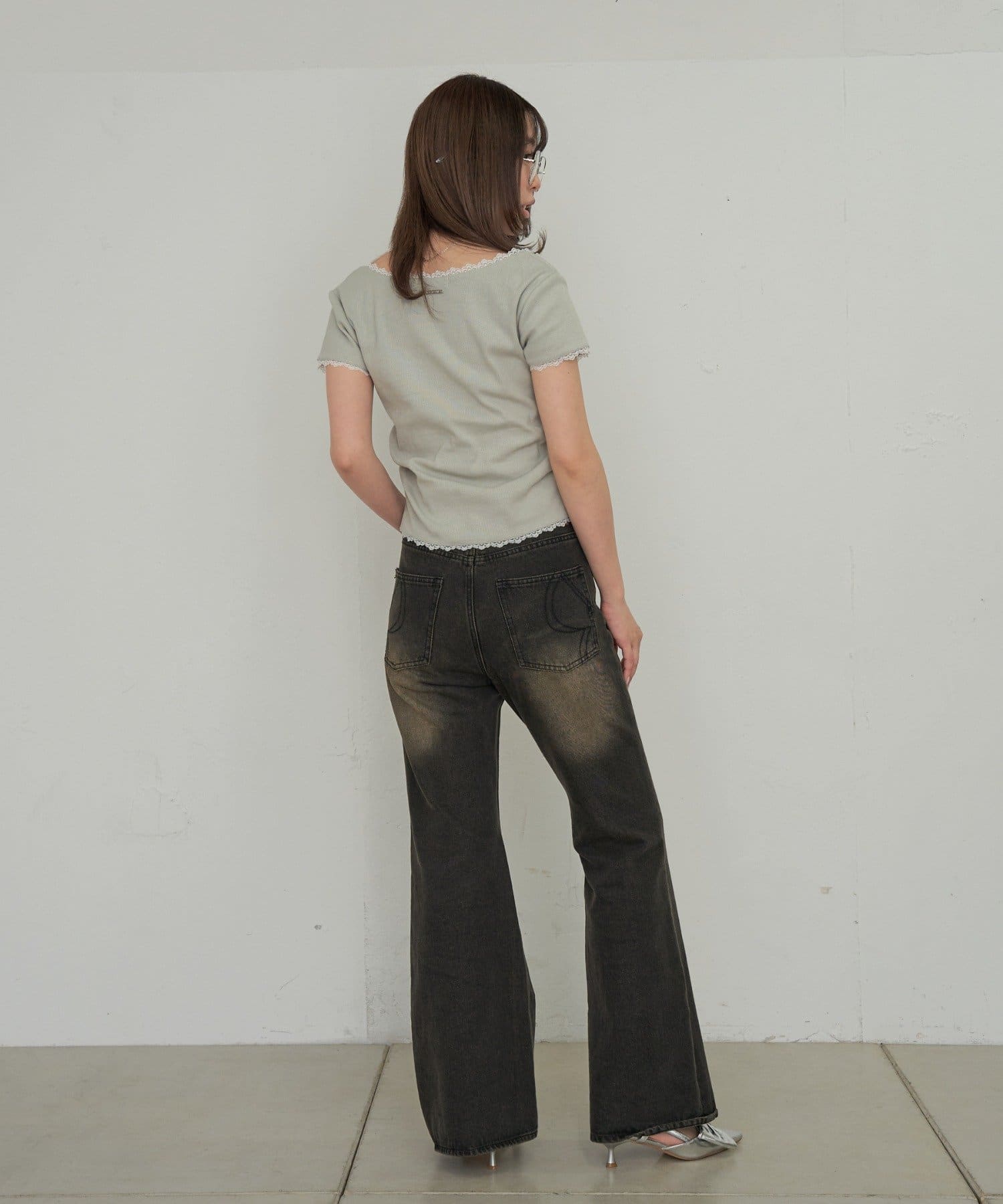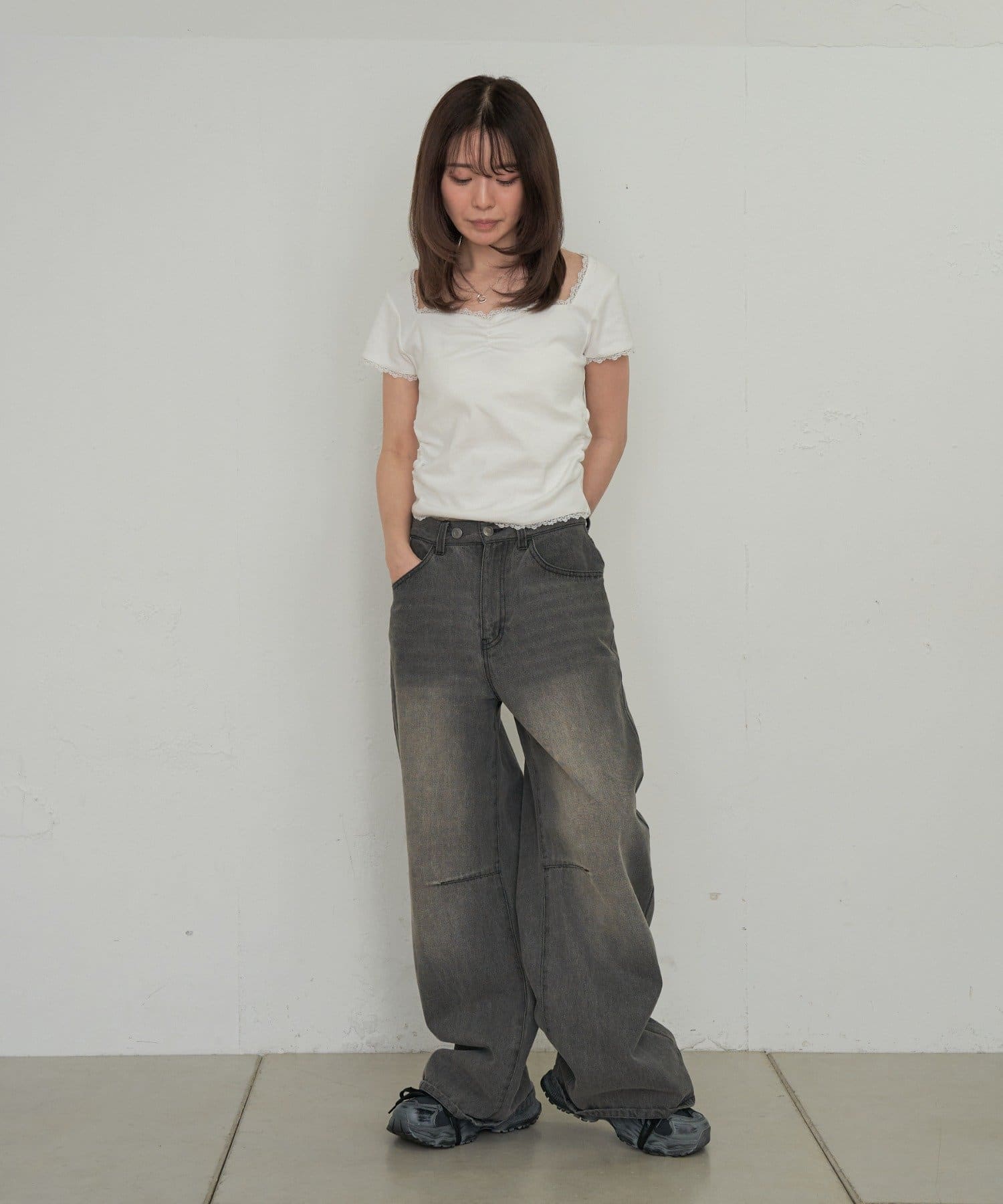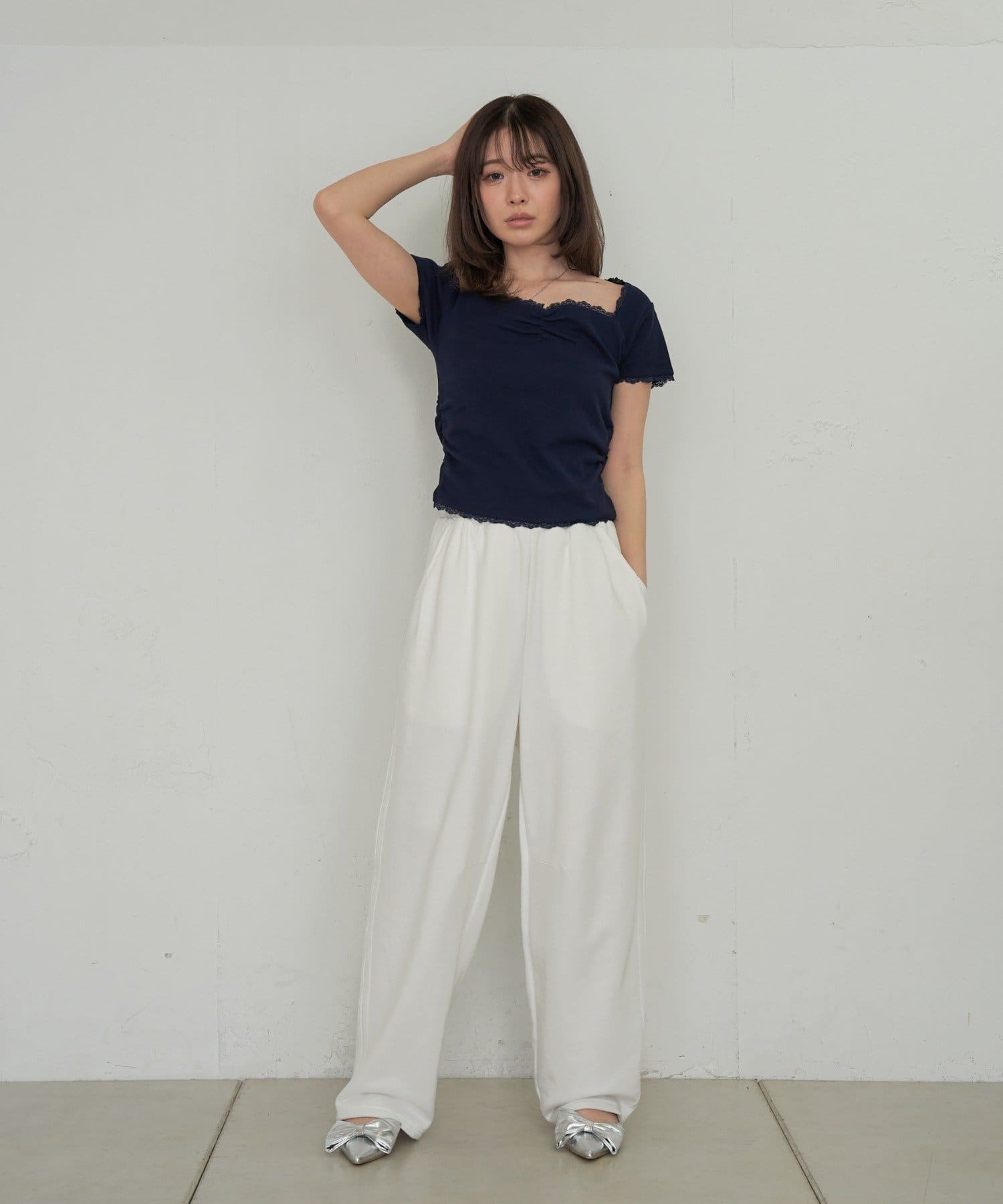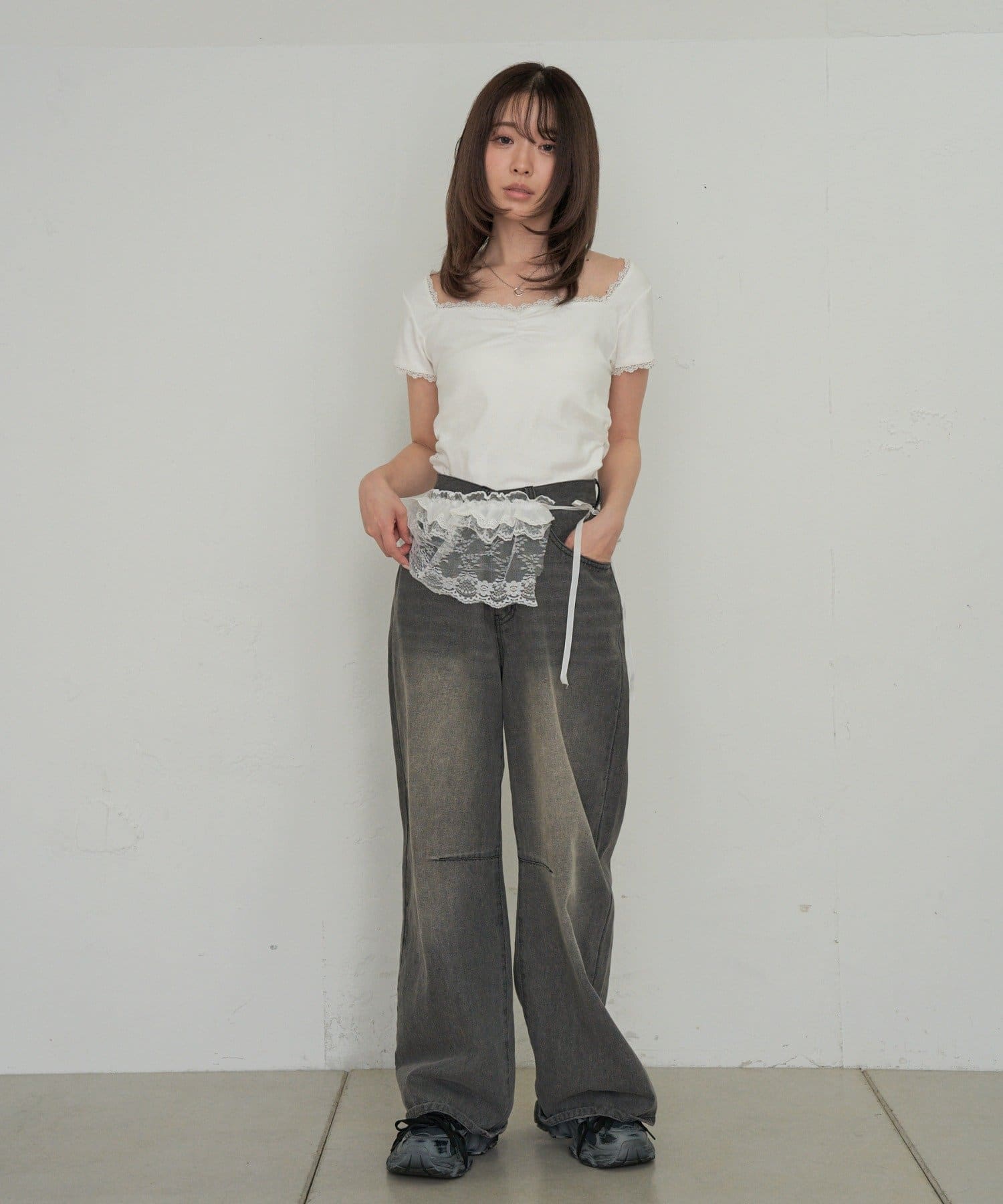 レース / くびれ / スクエアネック / ミニトップス / 海外ファッション