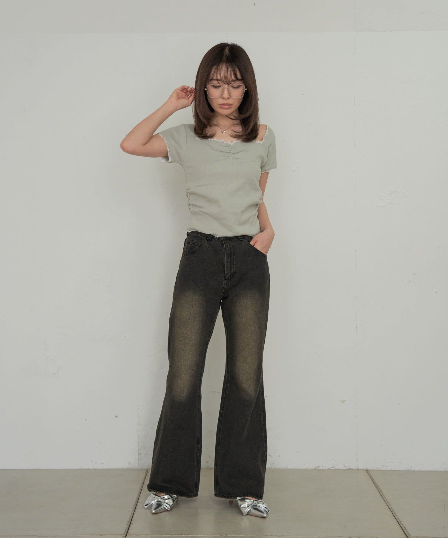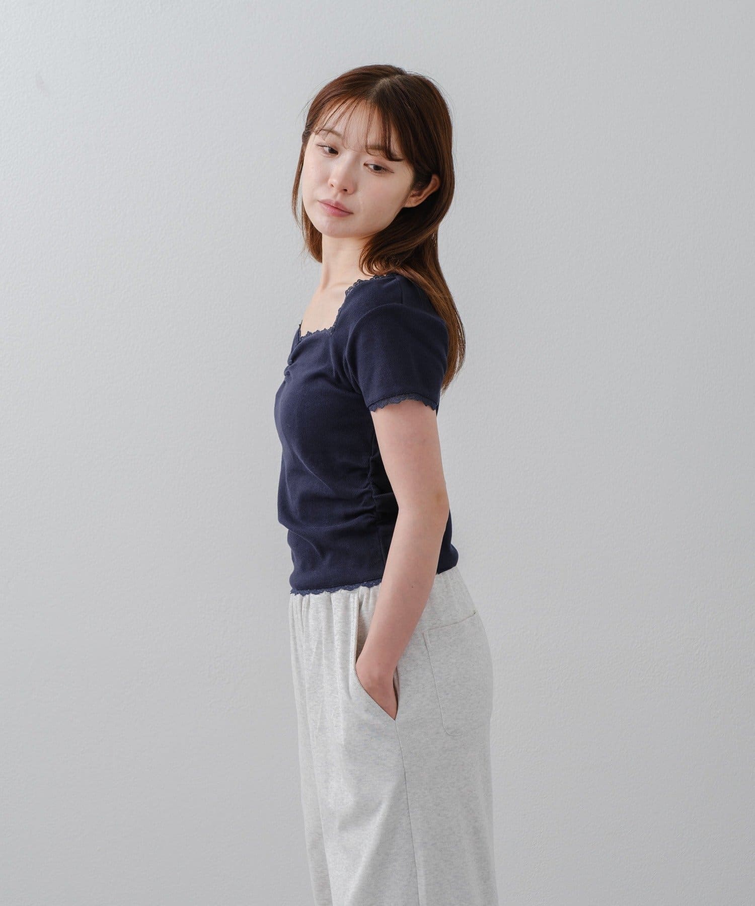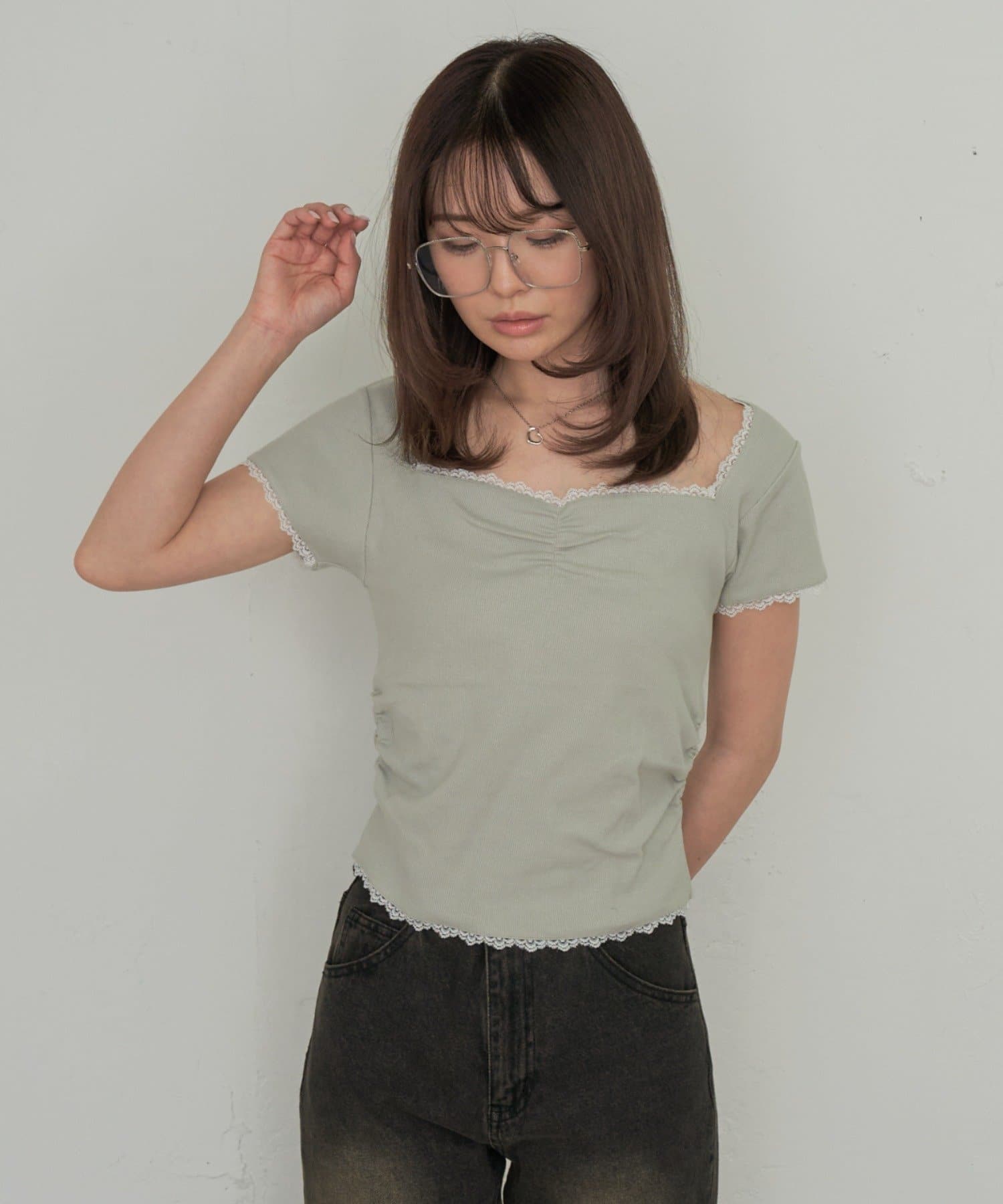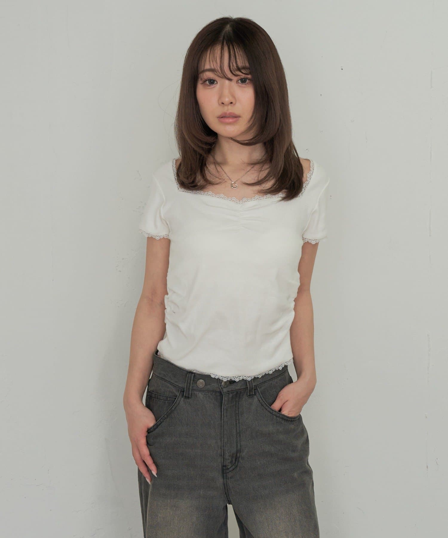 【RAY CASSIN】胸ギャザーコンパクトTシャツ