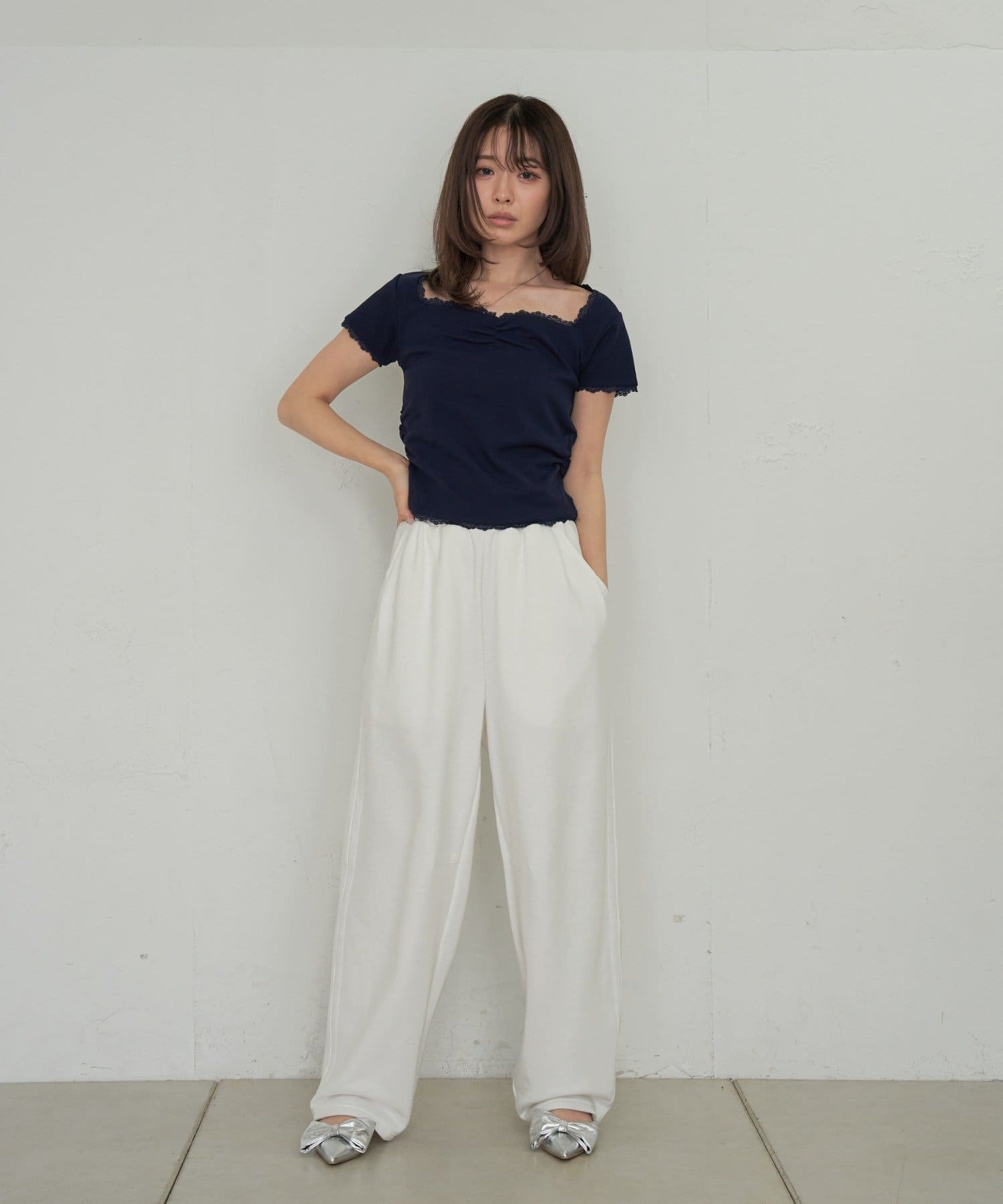 ・裾レースが女性らしい、シンプルだけどきまるアイテム。