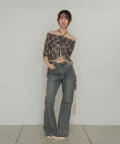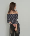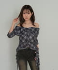 5分袖チュールプリントオフショルブラウス