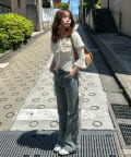 ・ワイドデニムを合わせて王道な甘めカジュアルコーデに。