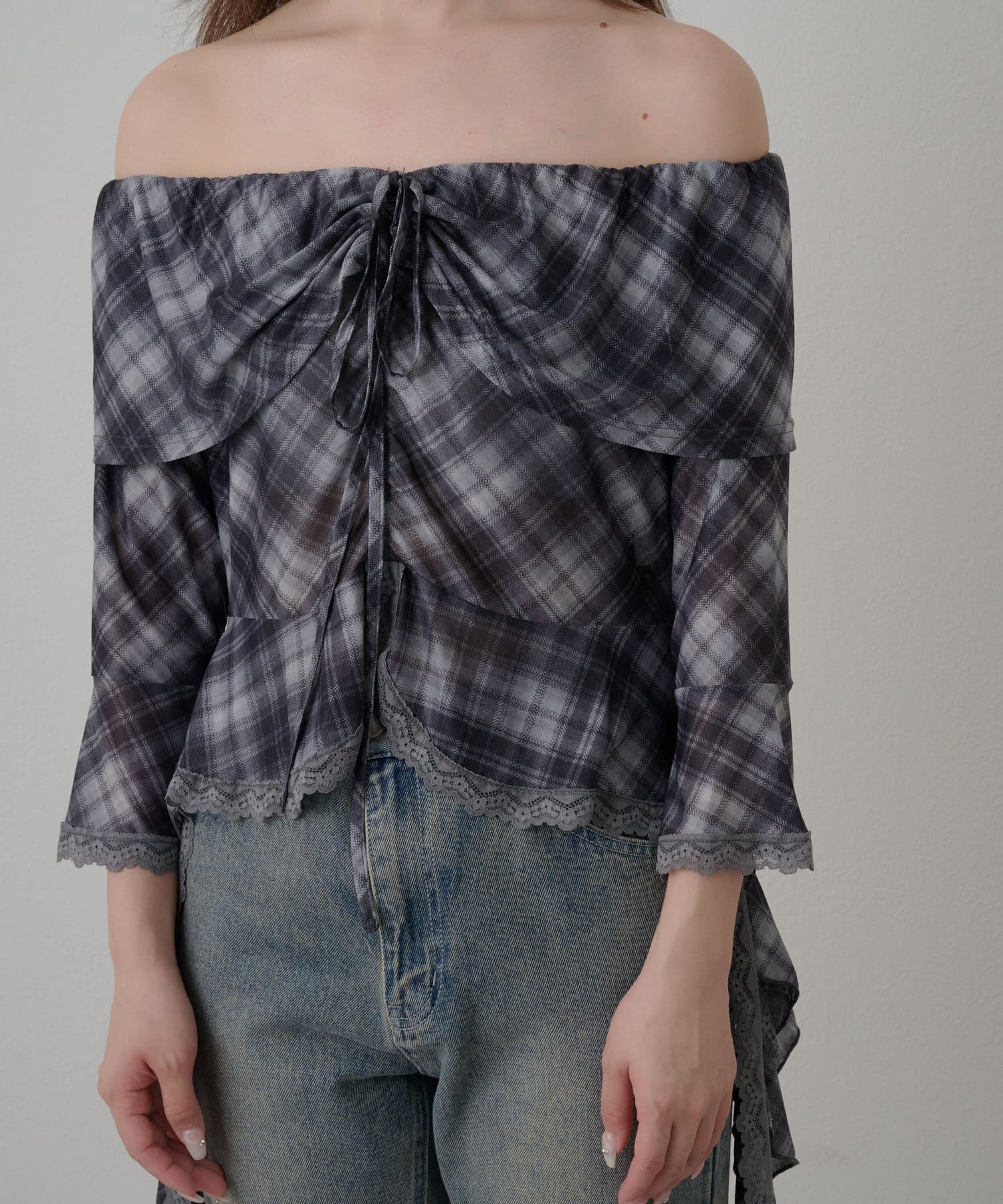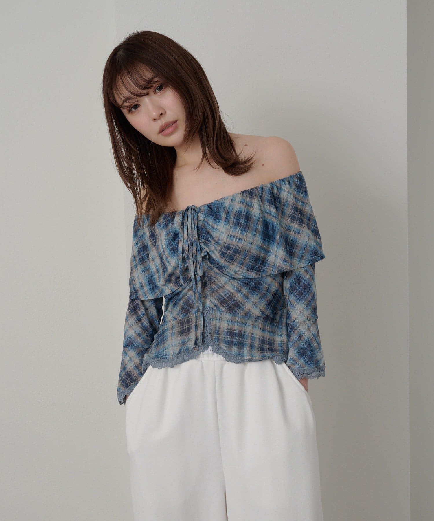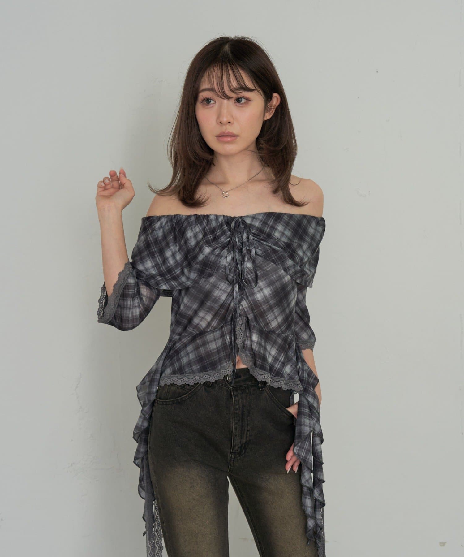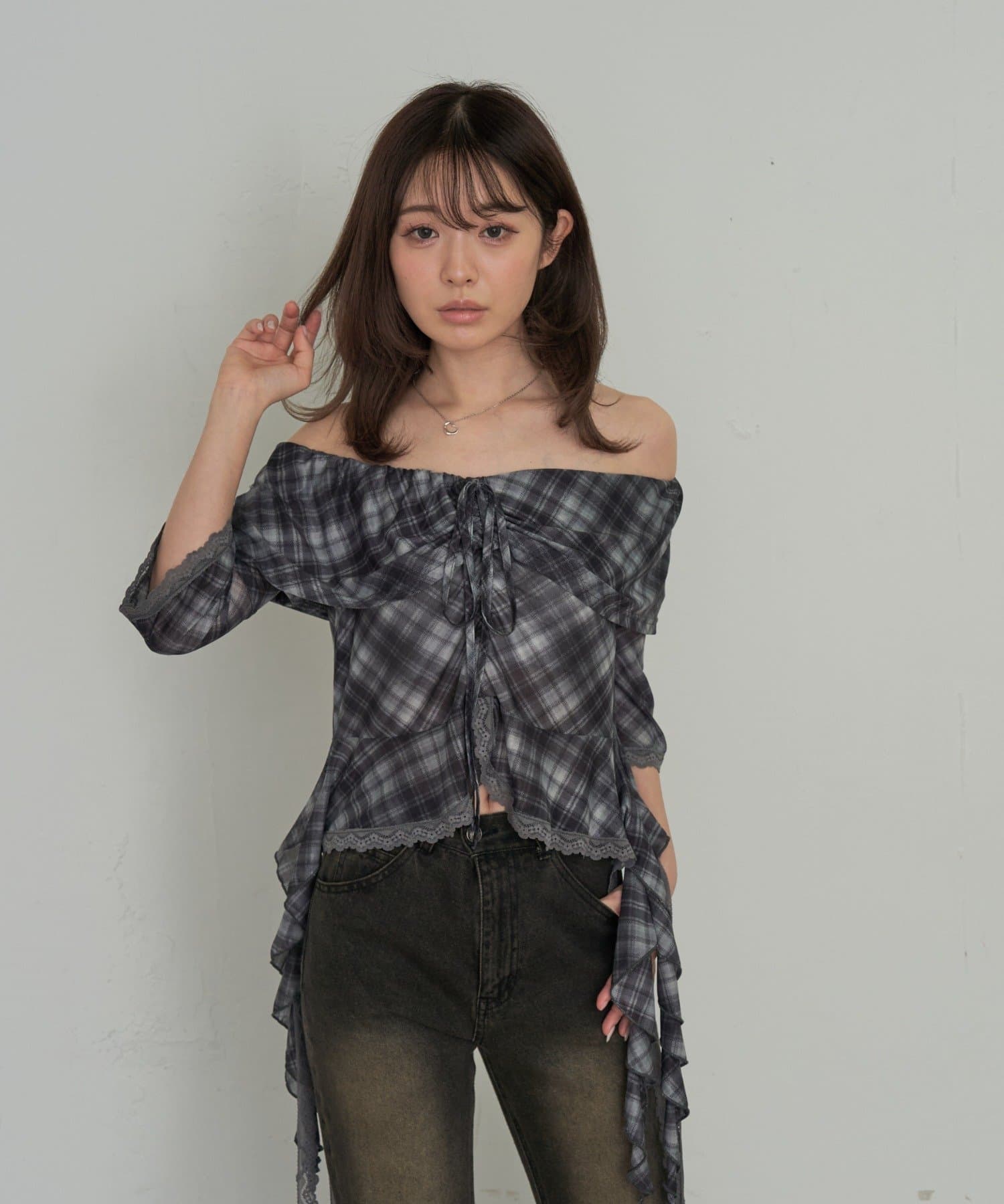 春夏に着たくなるオフショルトップスが『チェック』『レース』の2種類で新登場!