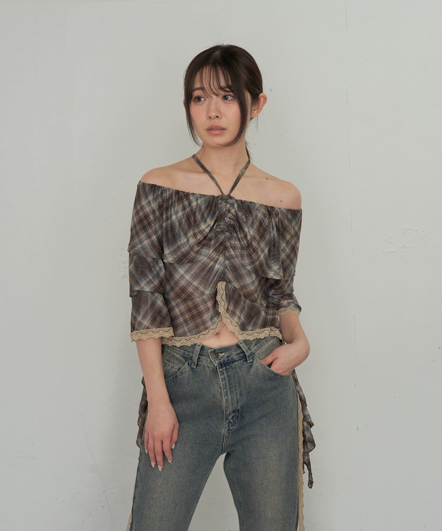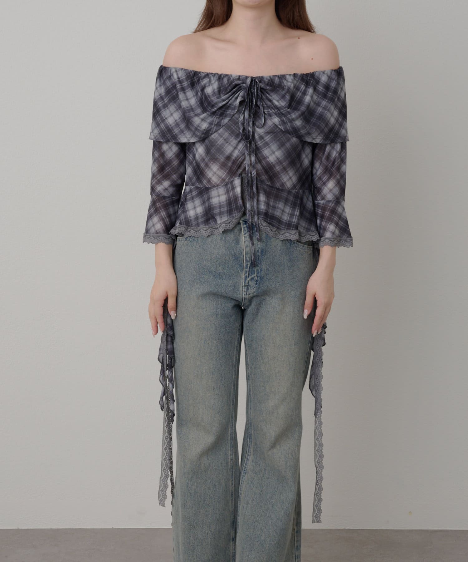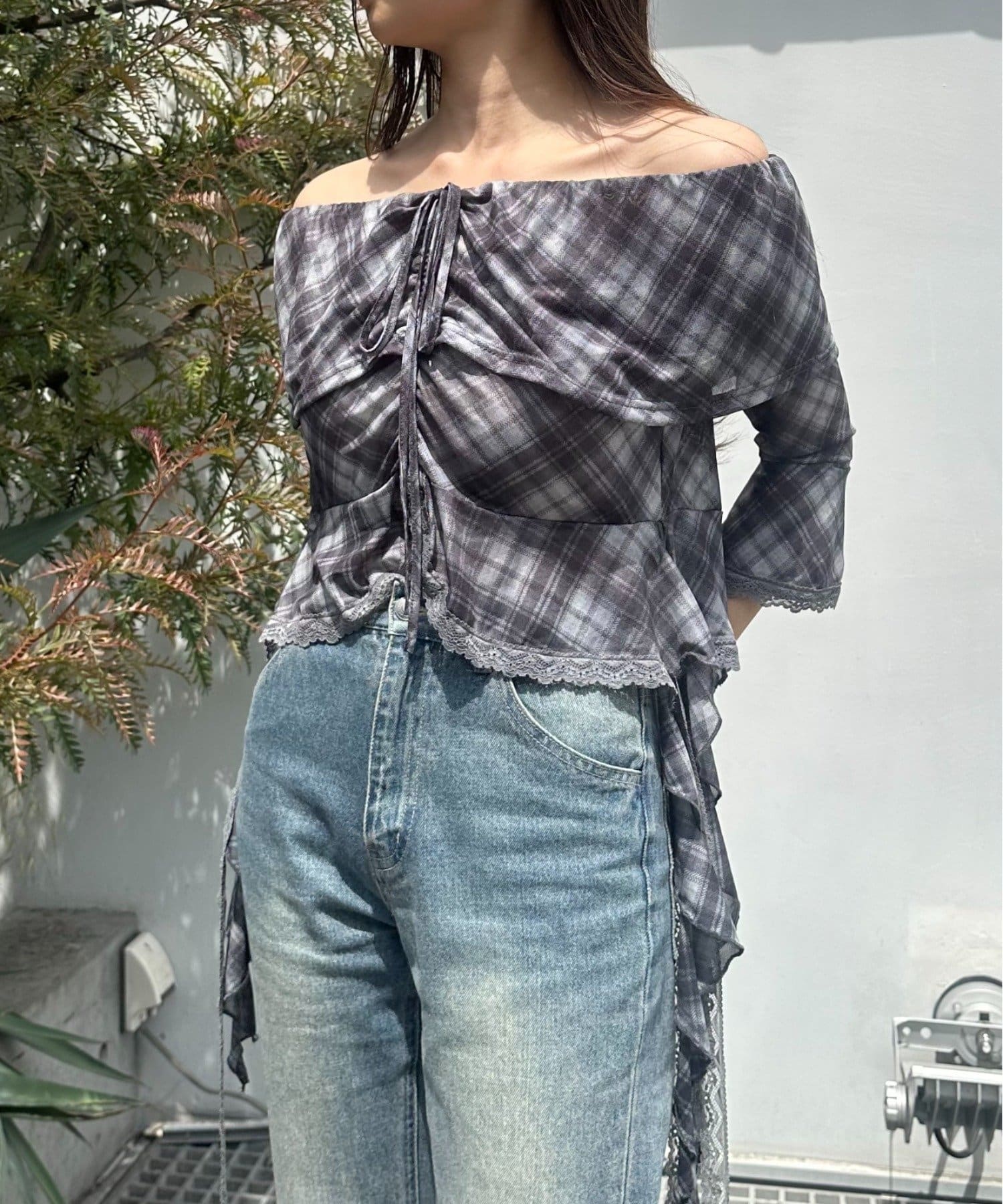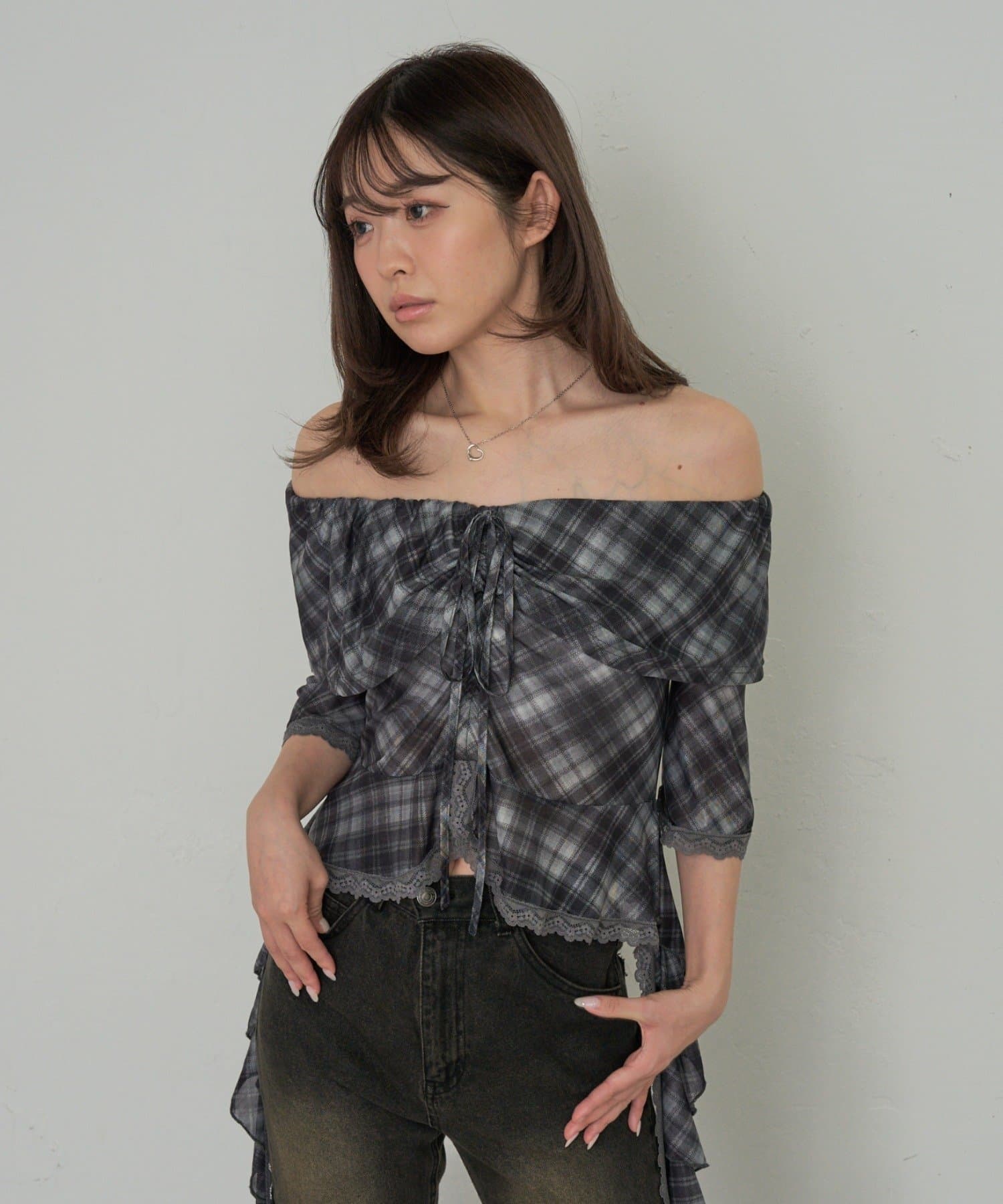 春夏に着たくなるオフショルトップスが『チェック』『レース』の2種類で新登場!