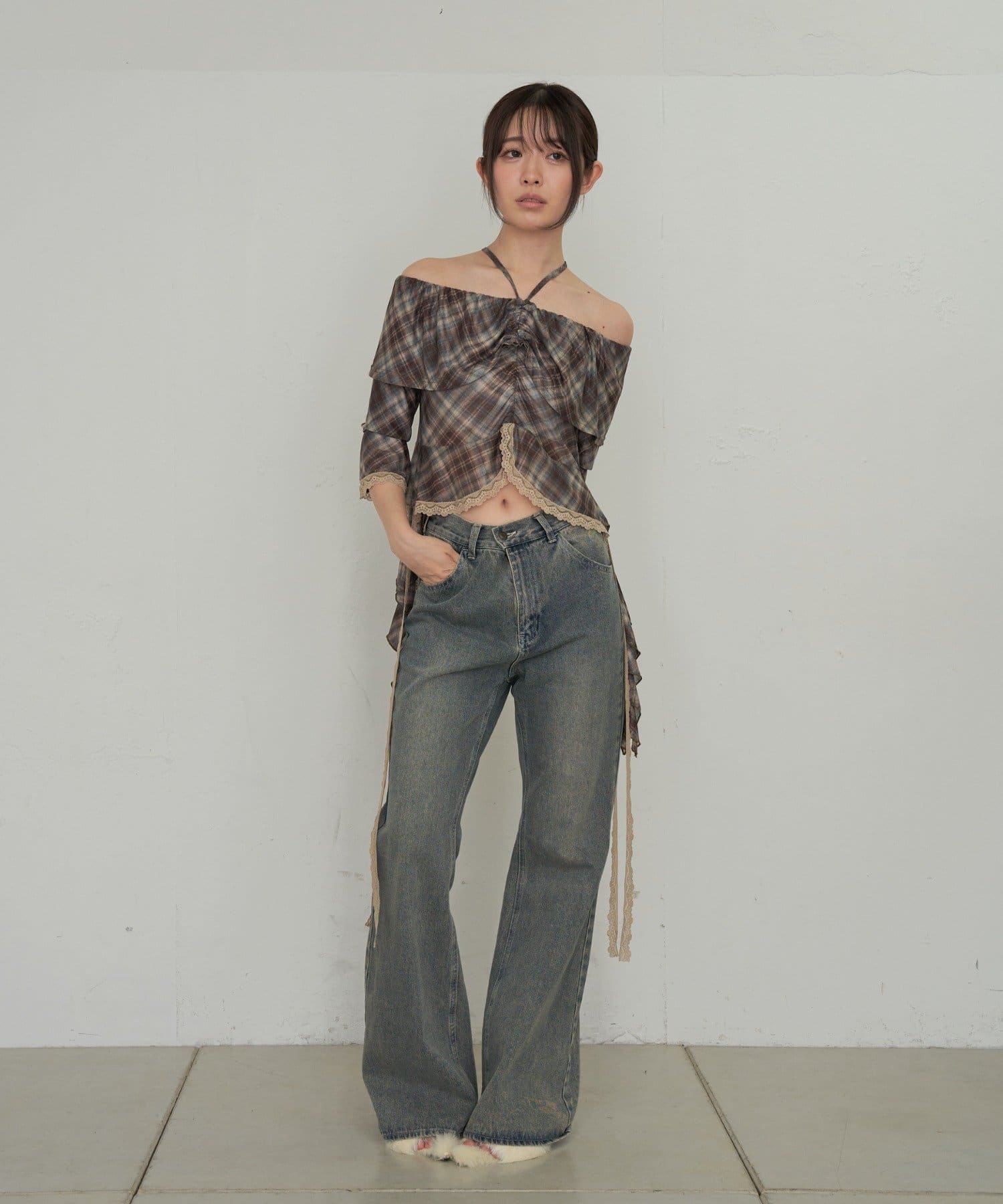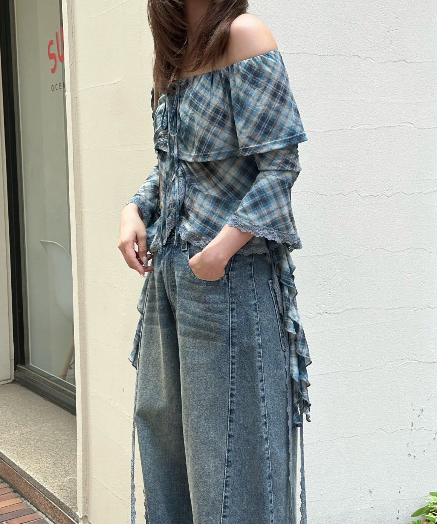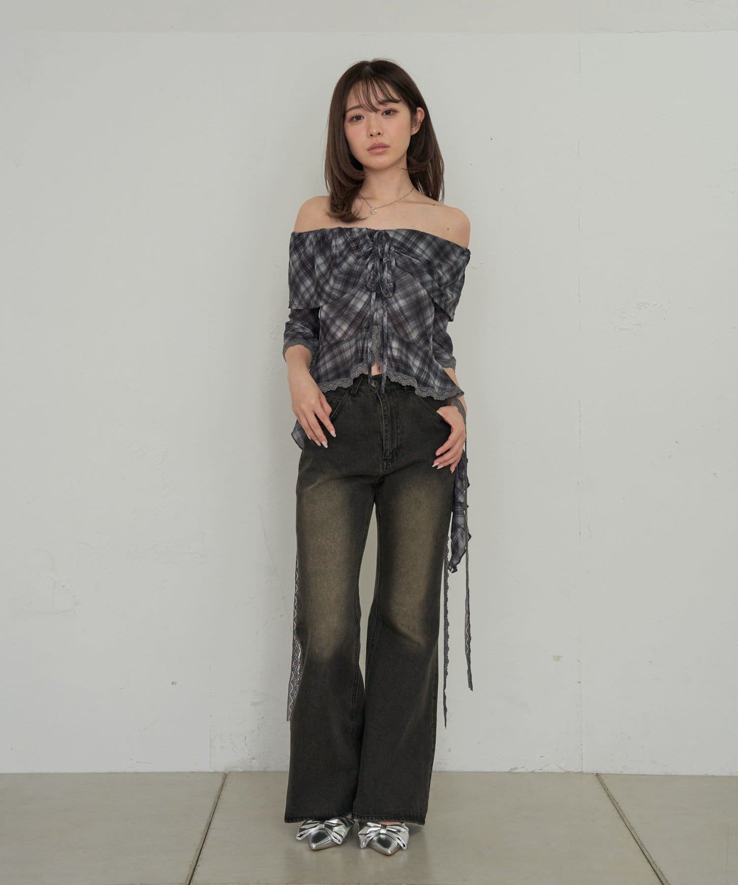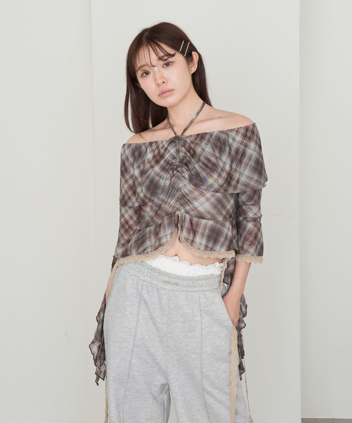 春夏に着たくなるオフショルトップスが『チェック』『レース』の2種類で新登場!