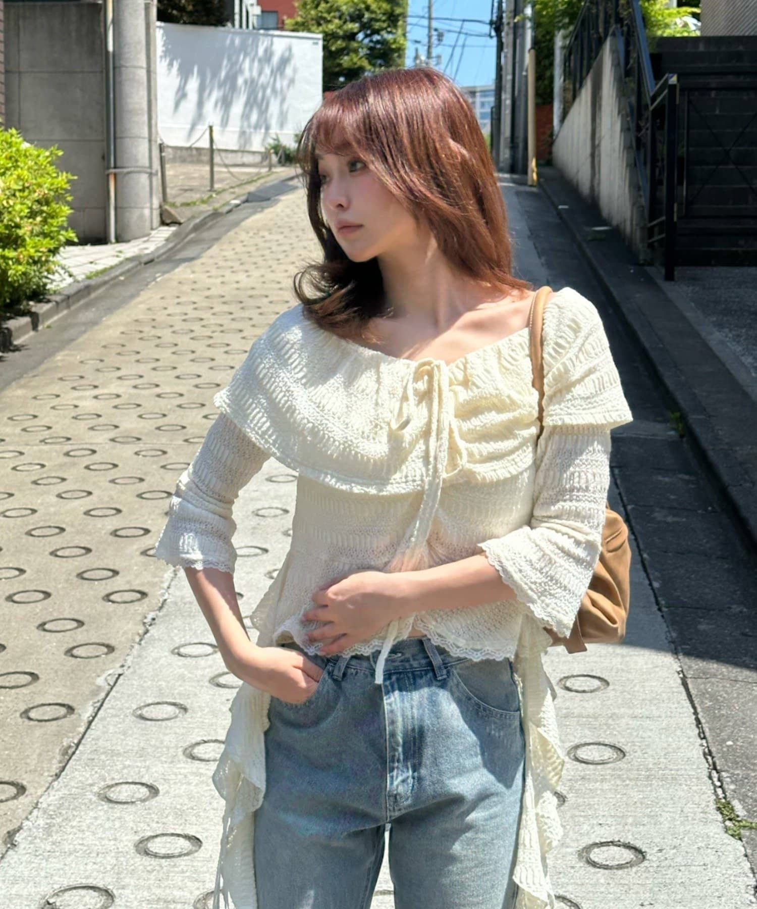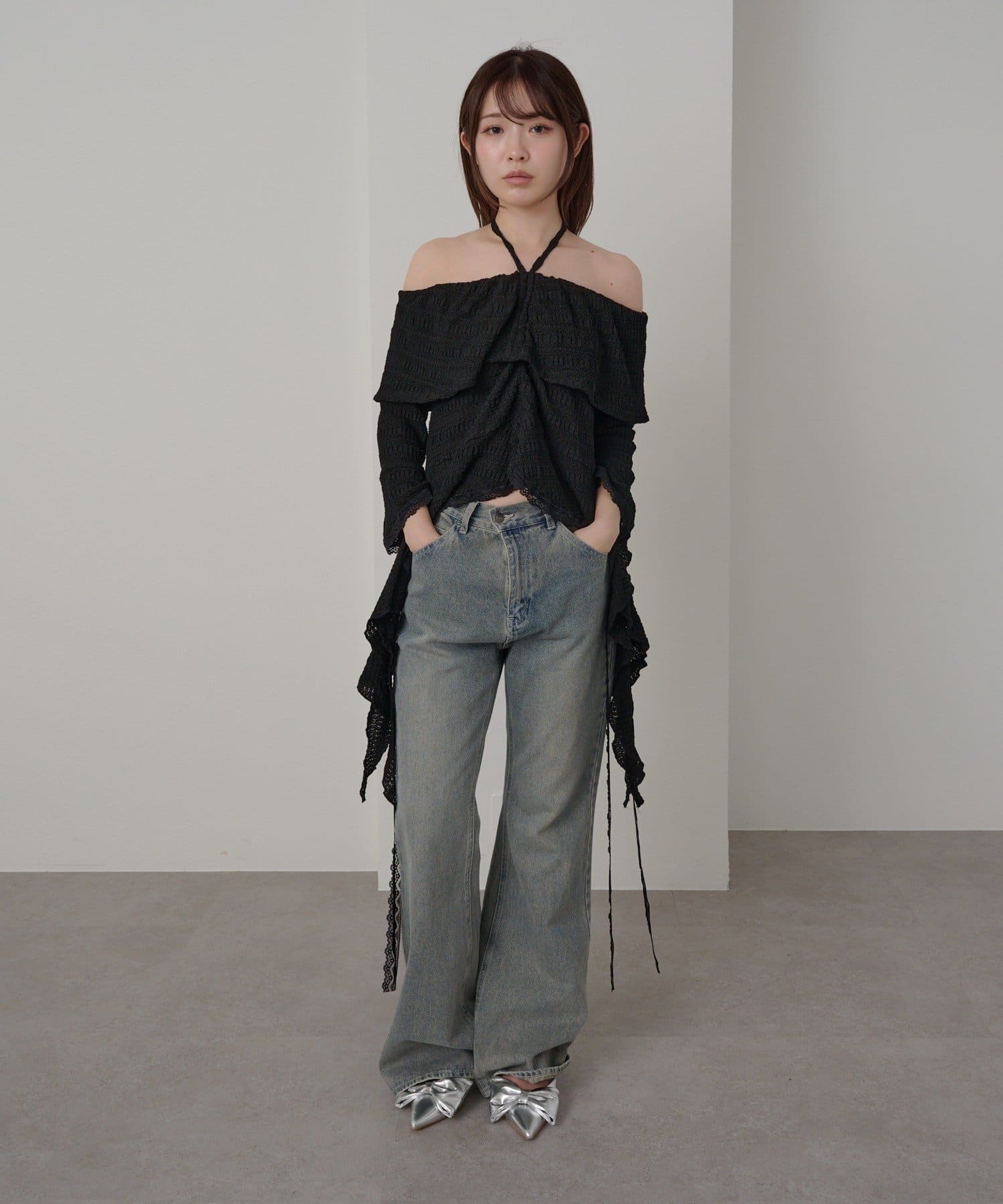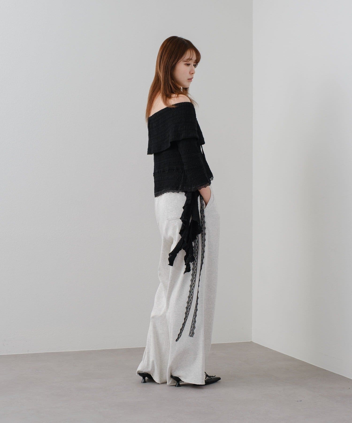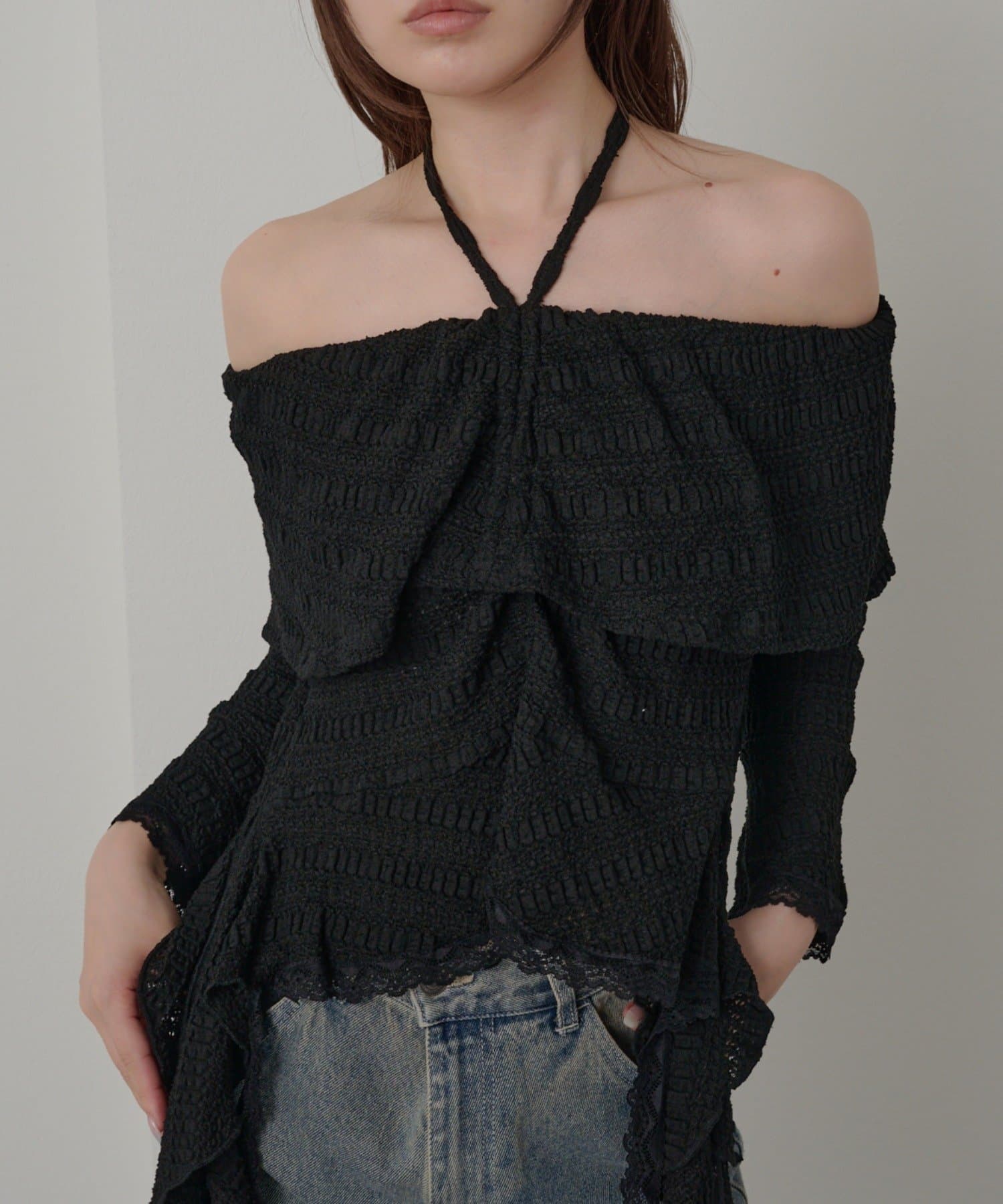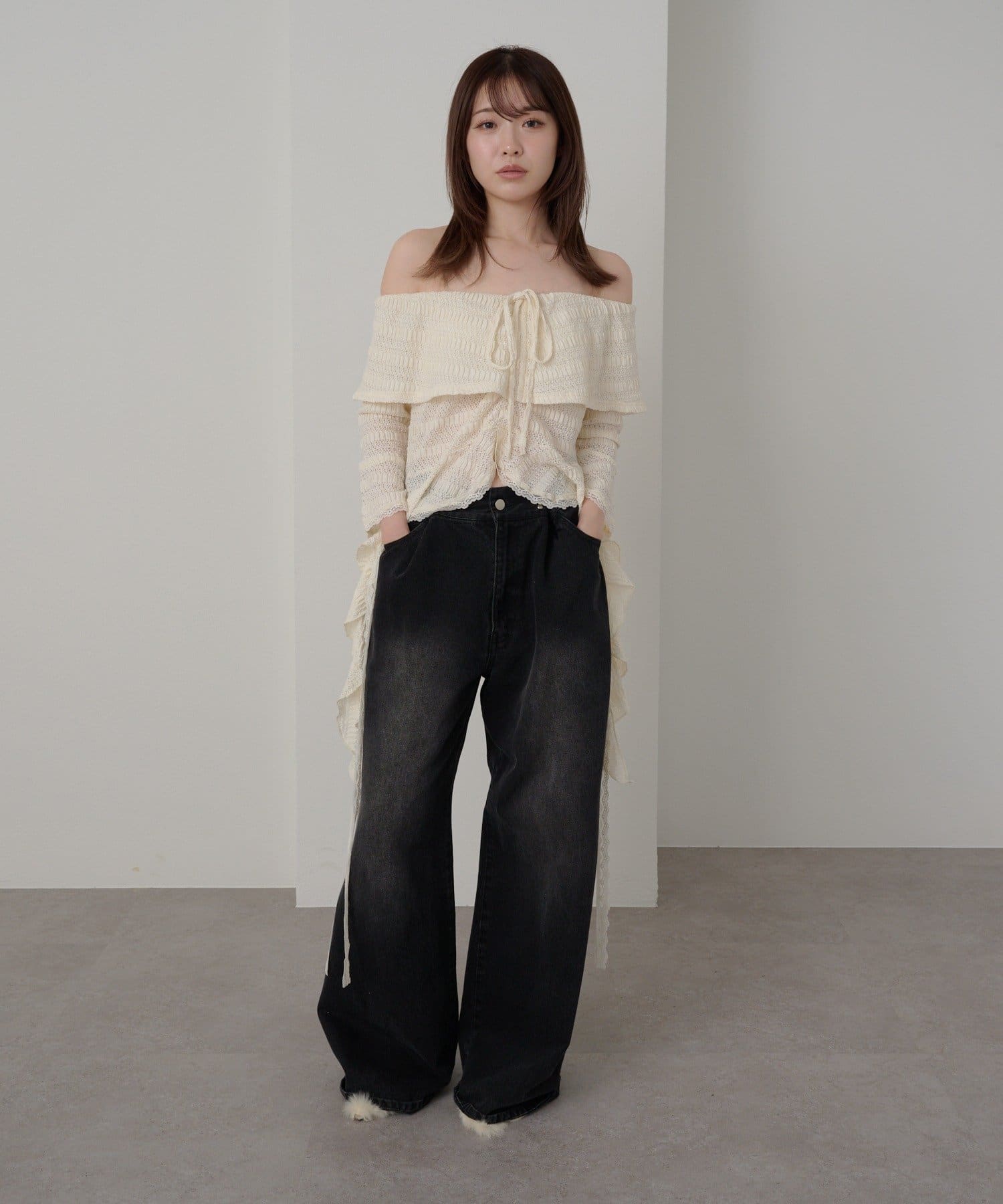 オフショルにせずプルオーバーとしても着用していただけるので、肌見せに抵抗のある方にもおすすめ!