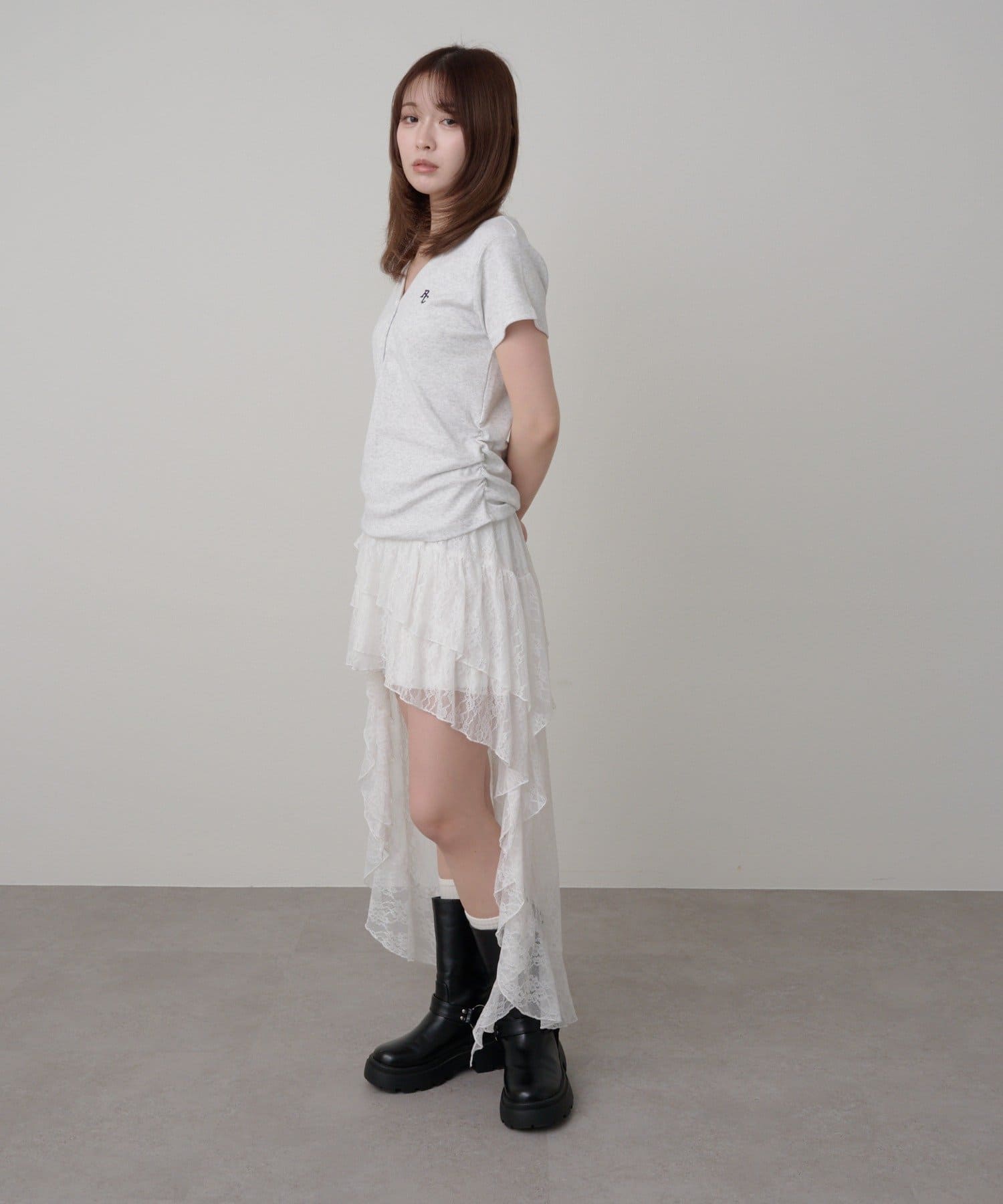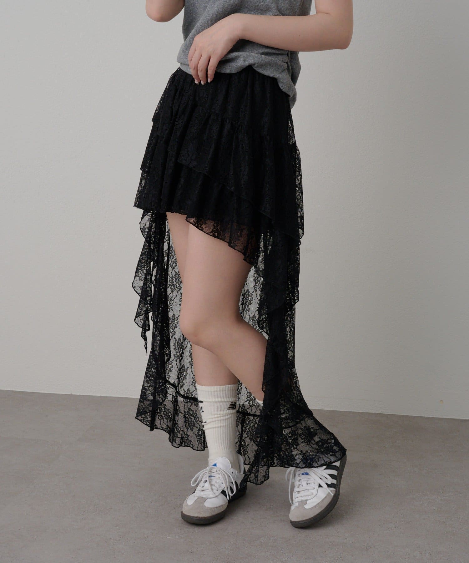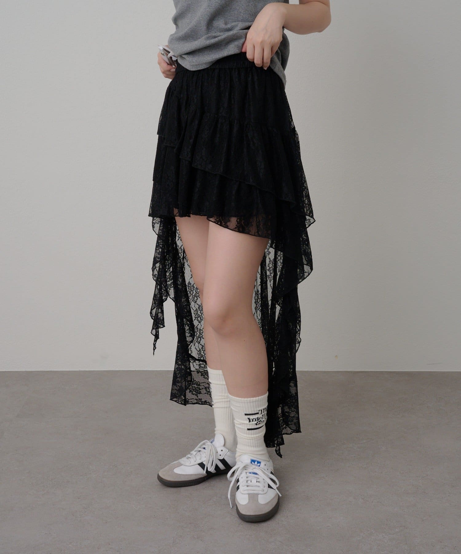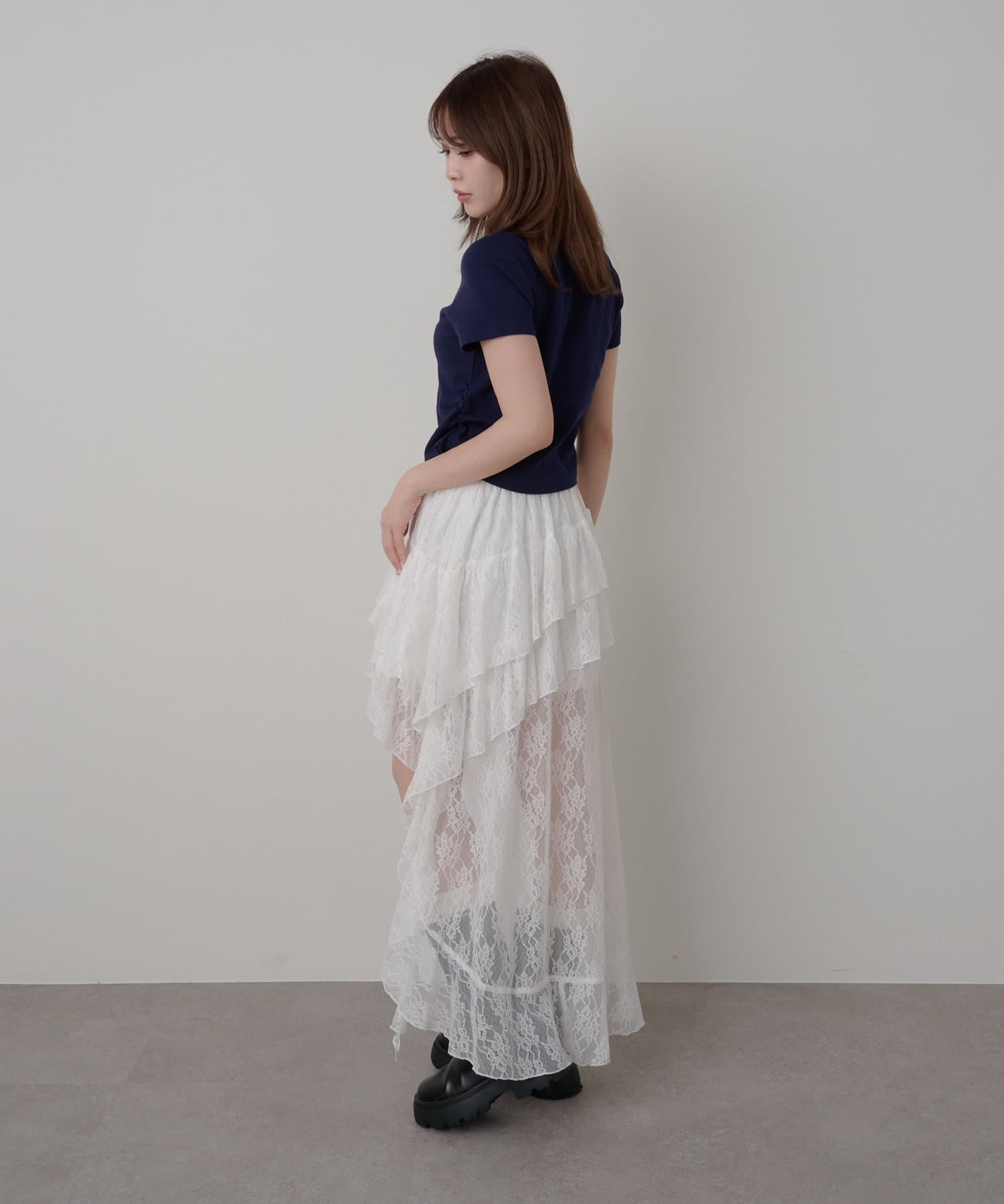 イレヘムのアシンメトリーなシルエットが目を惹くレーススカート