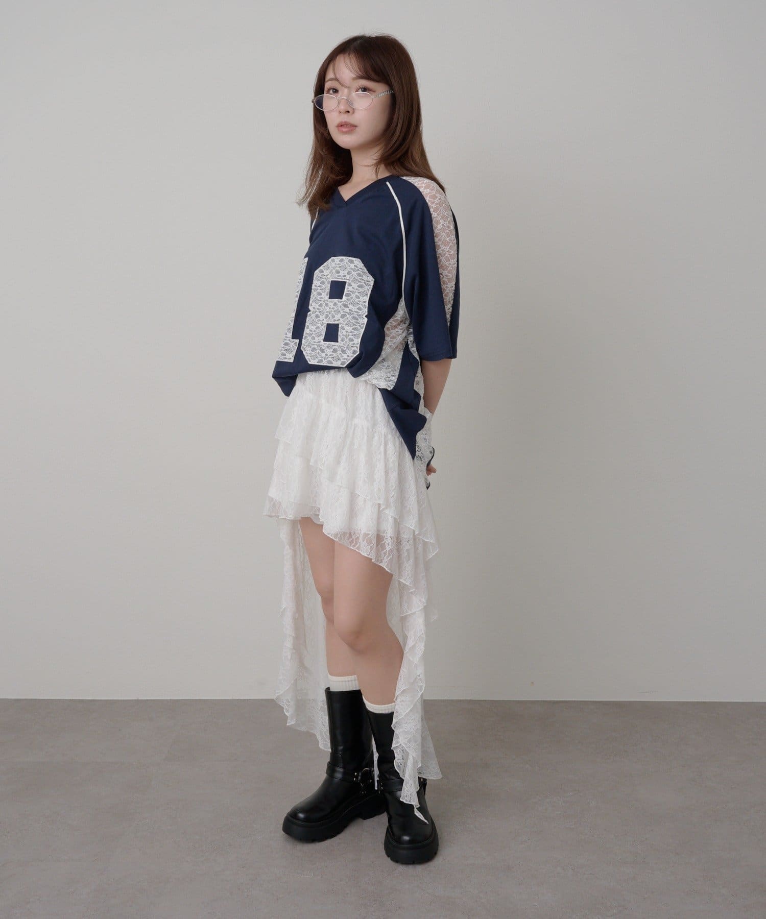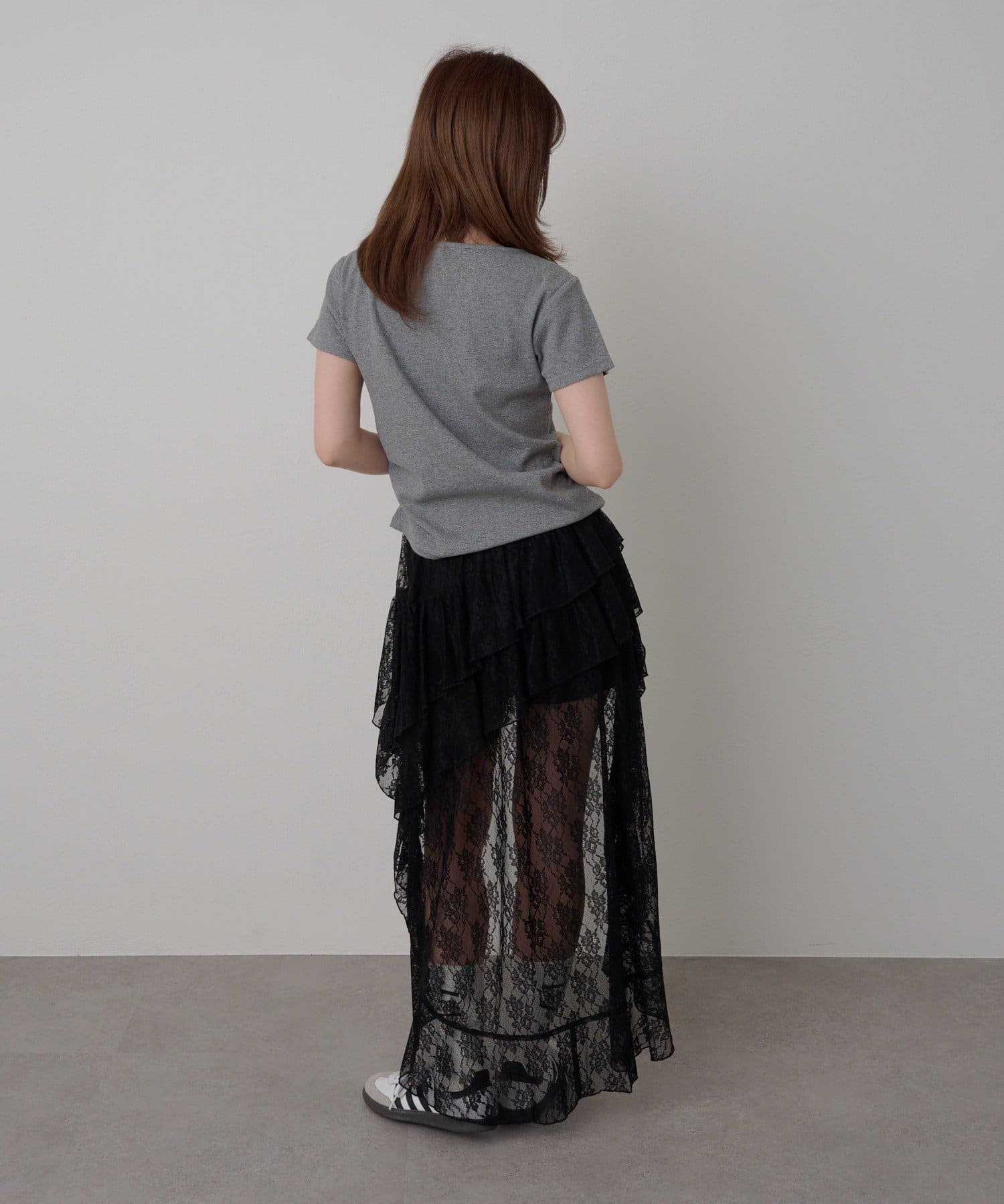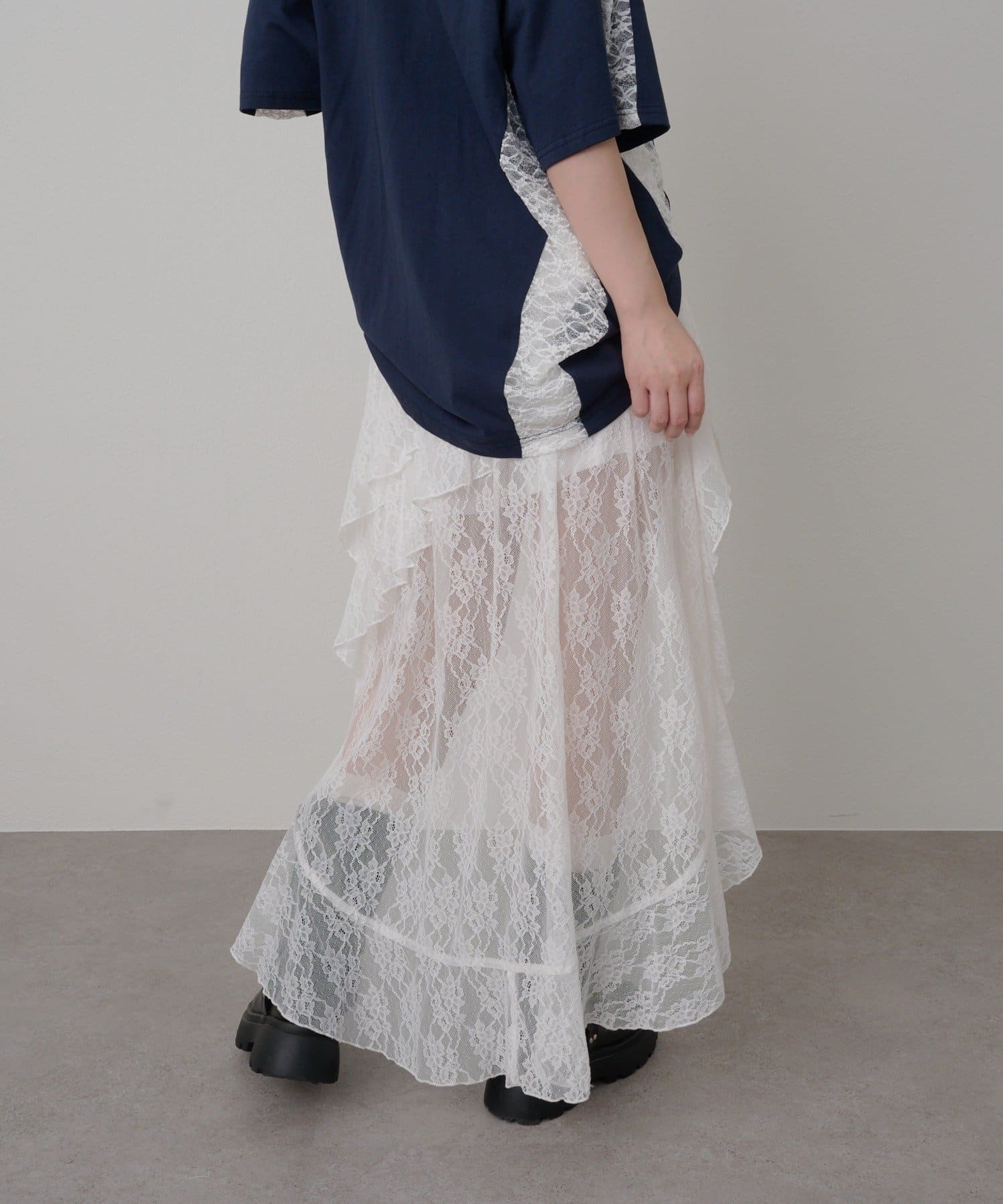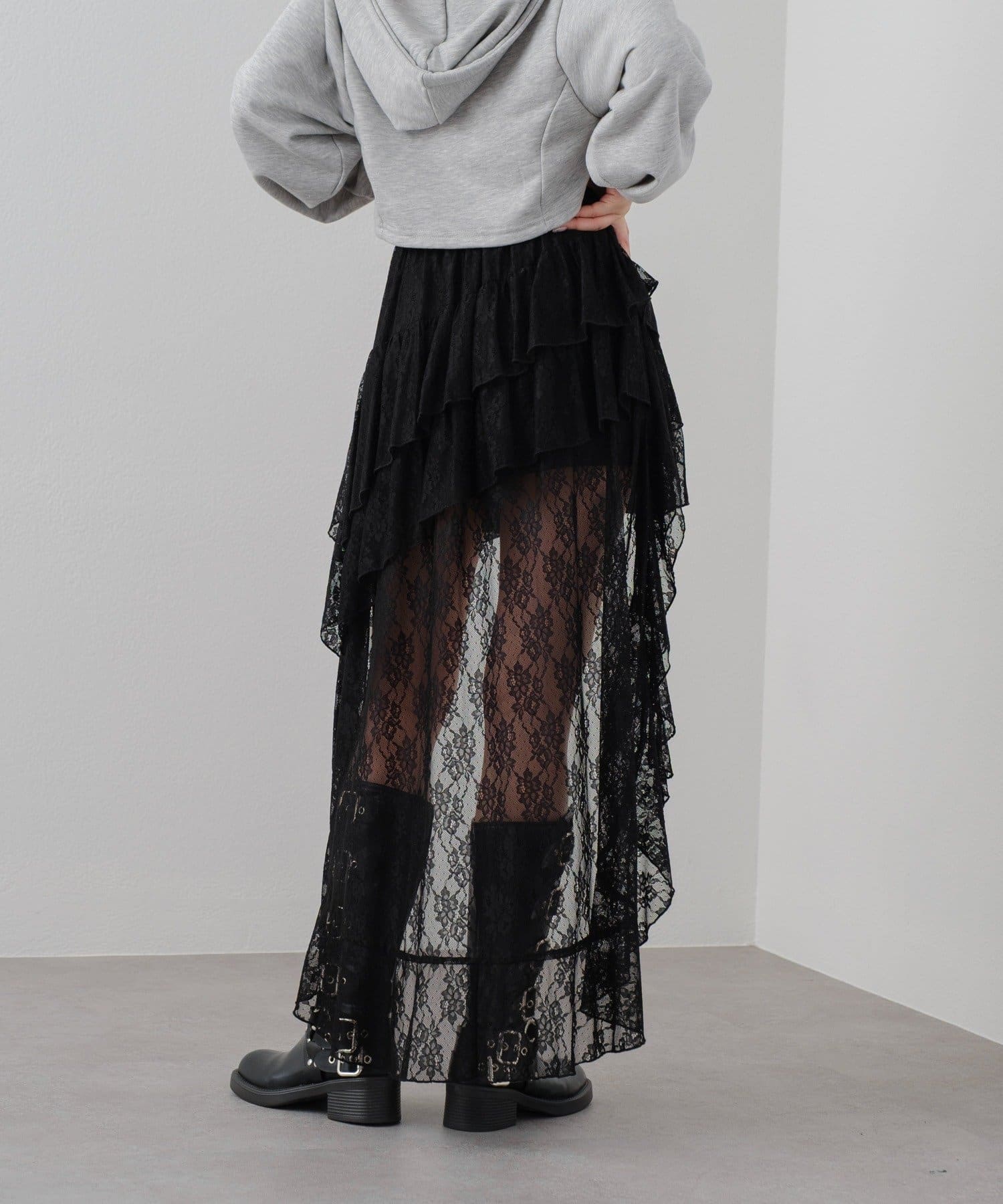 イレヘムのアシンメトリーなシルエットが目を惹くレーススカート