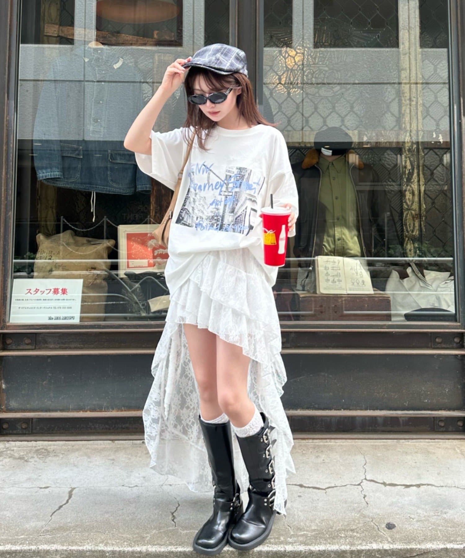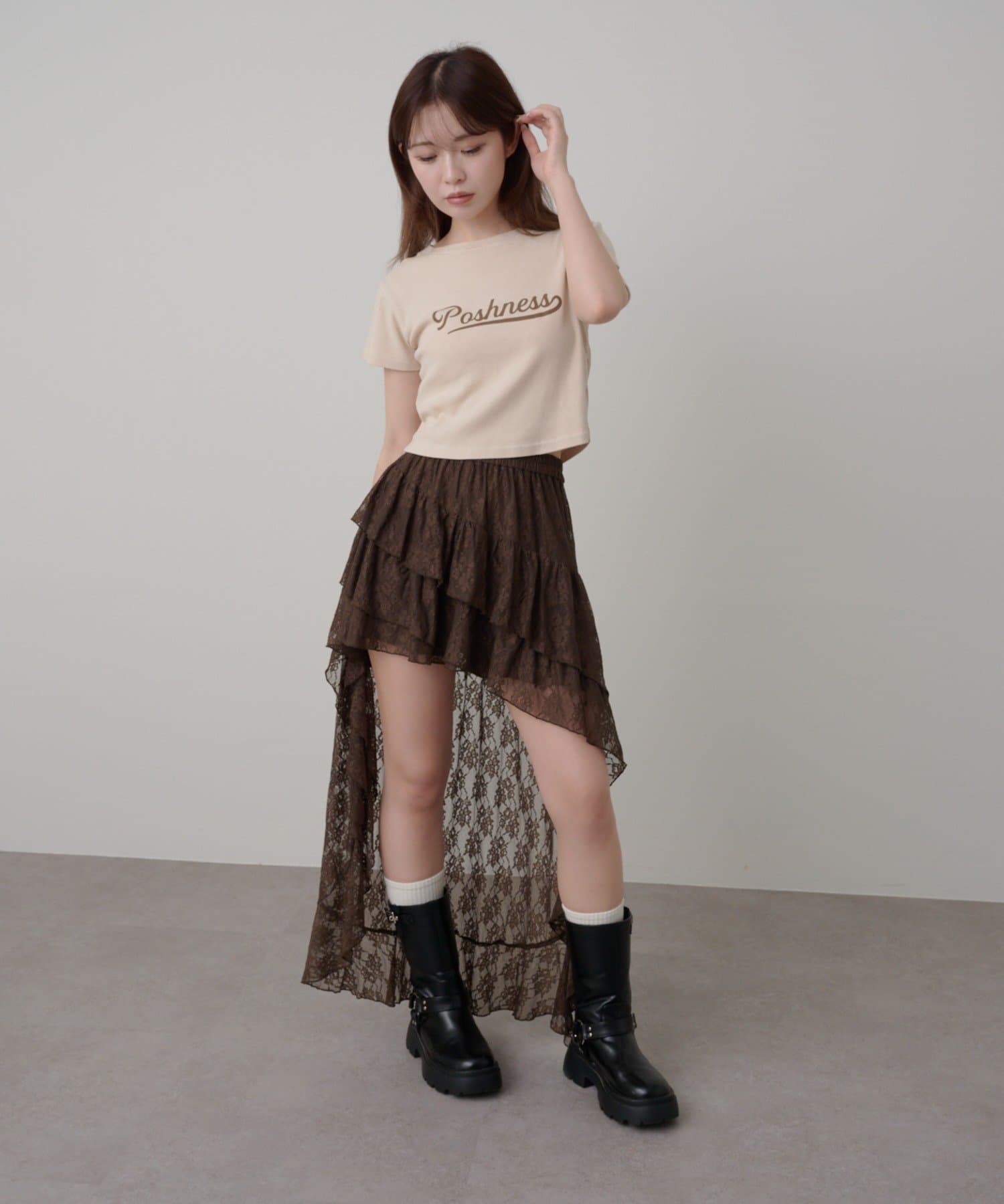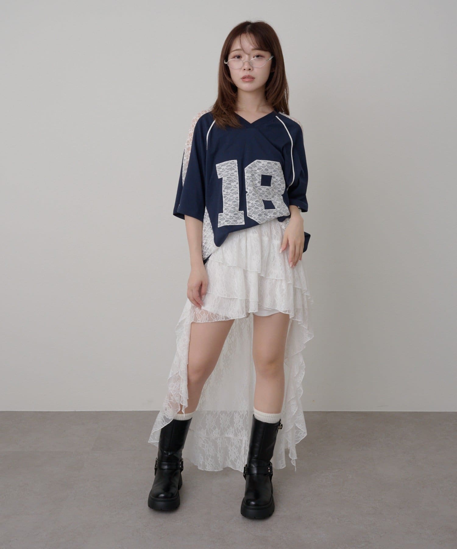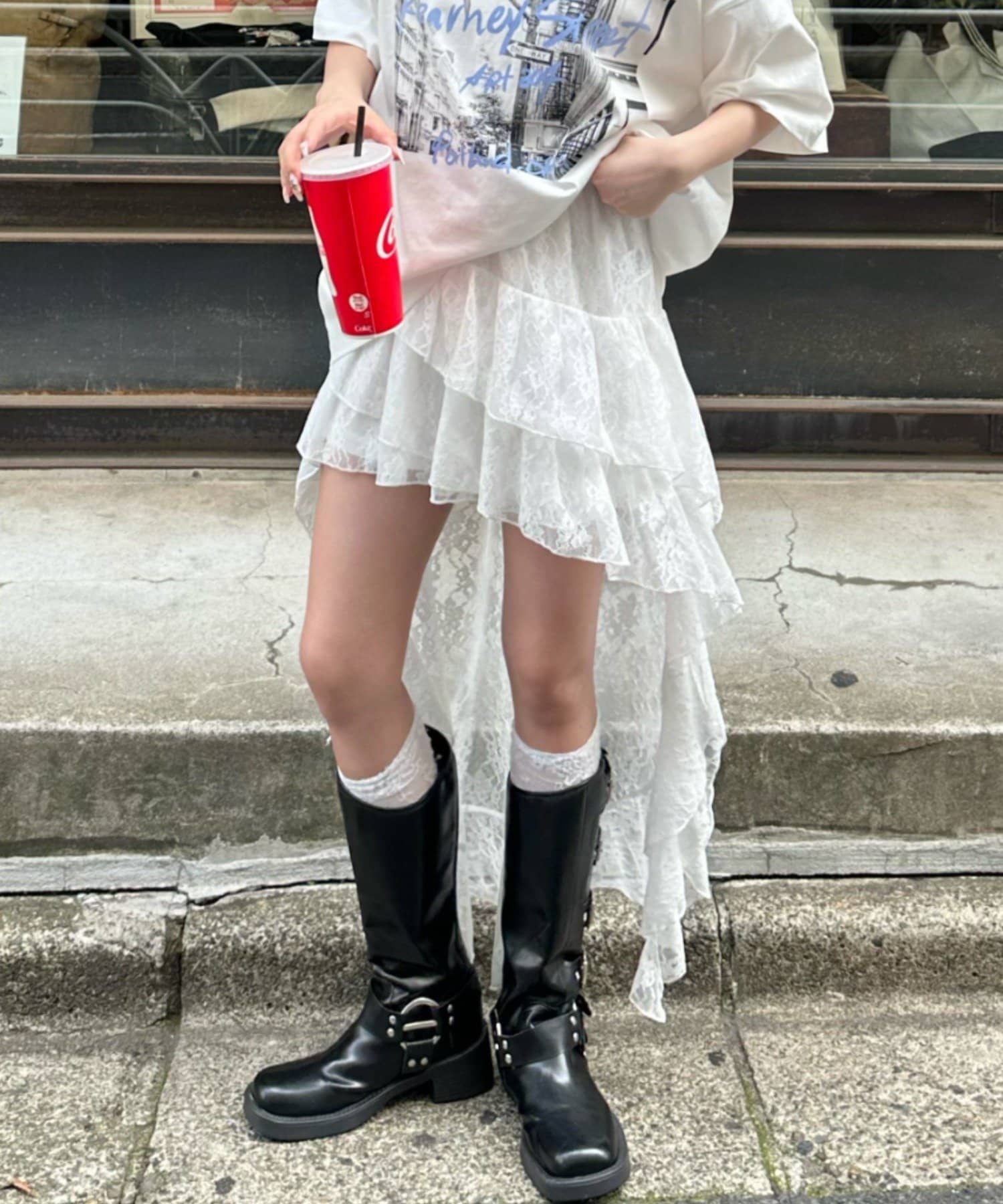 イレヘムのアシンメトリーなシルエットが目を惹くレーススカート