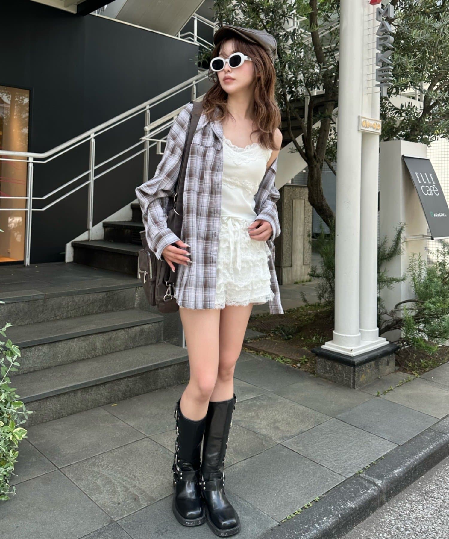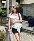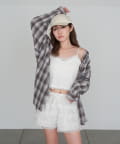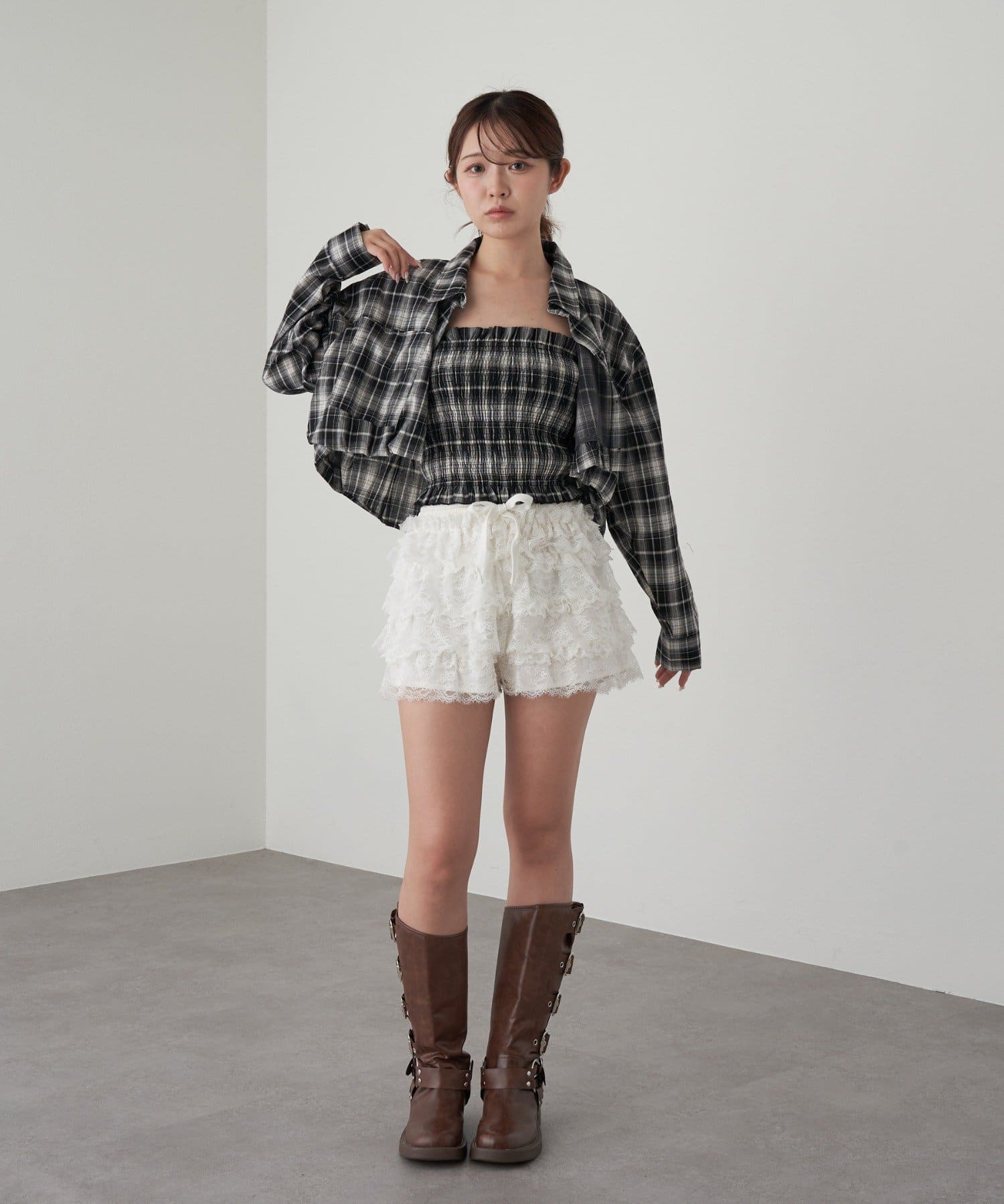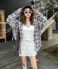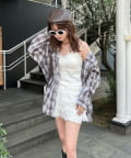 ・チェックシャツなどと合わせると甘辛MIXスタイルに。