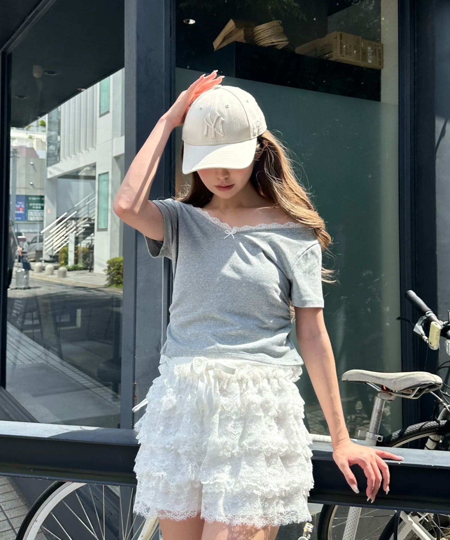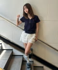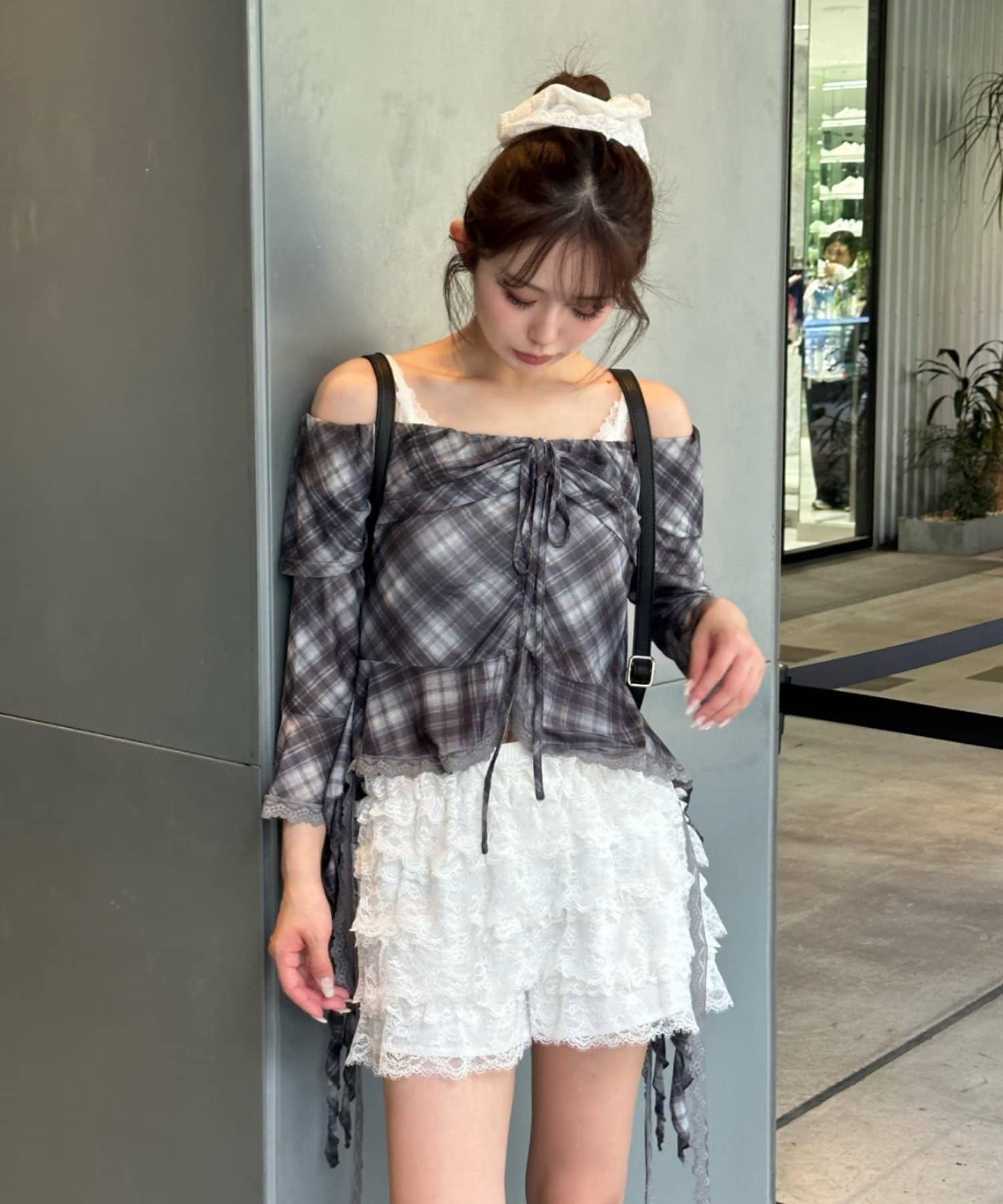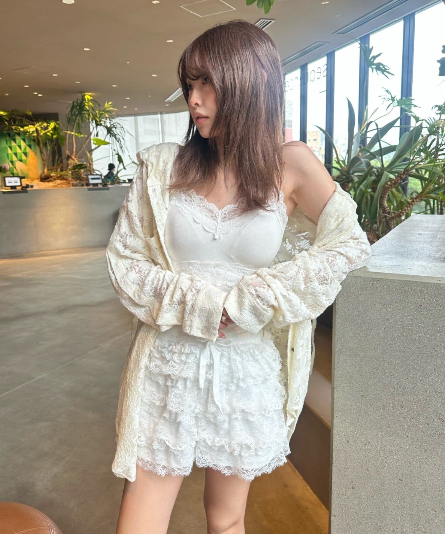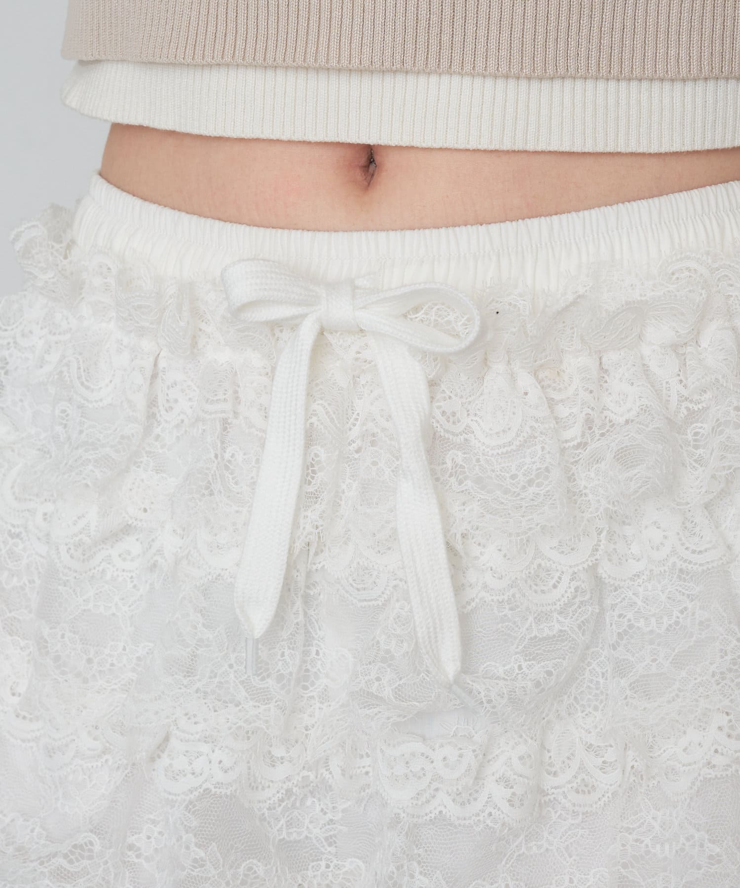 ボリュームのあるレースがコーディネートのポイントに。