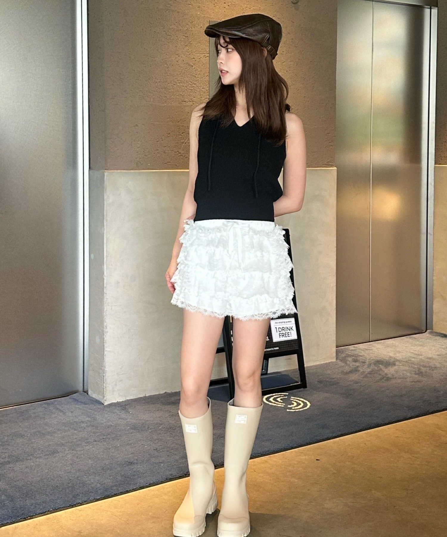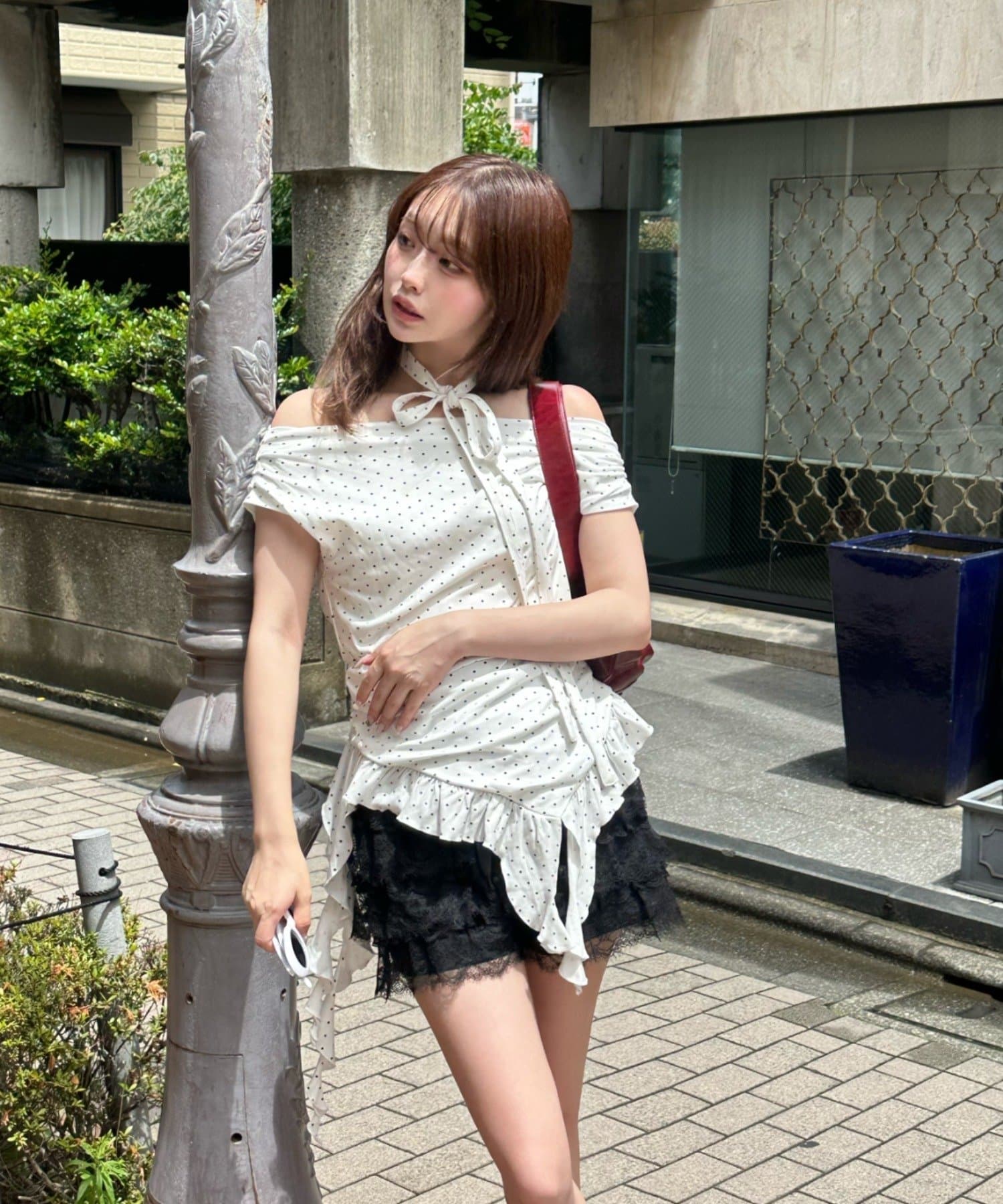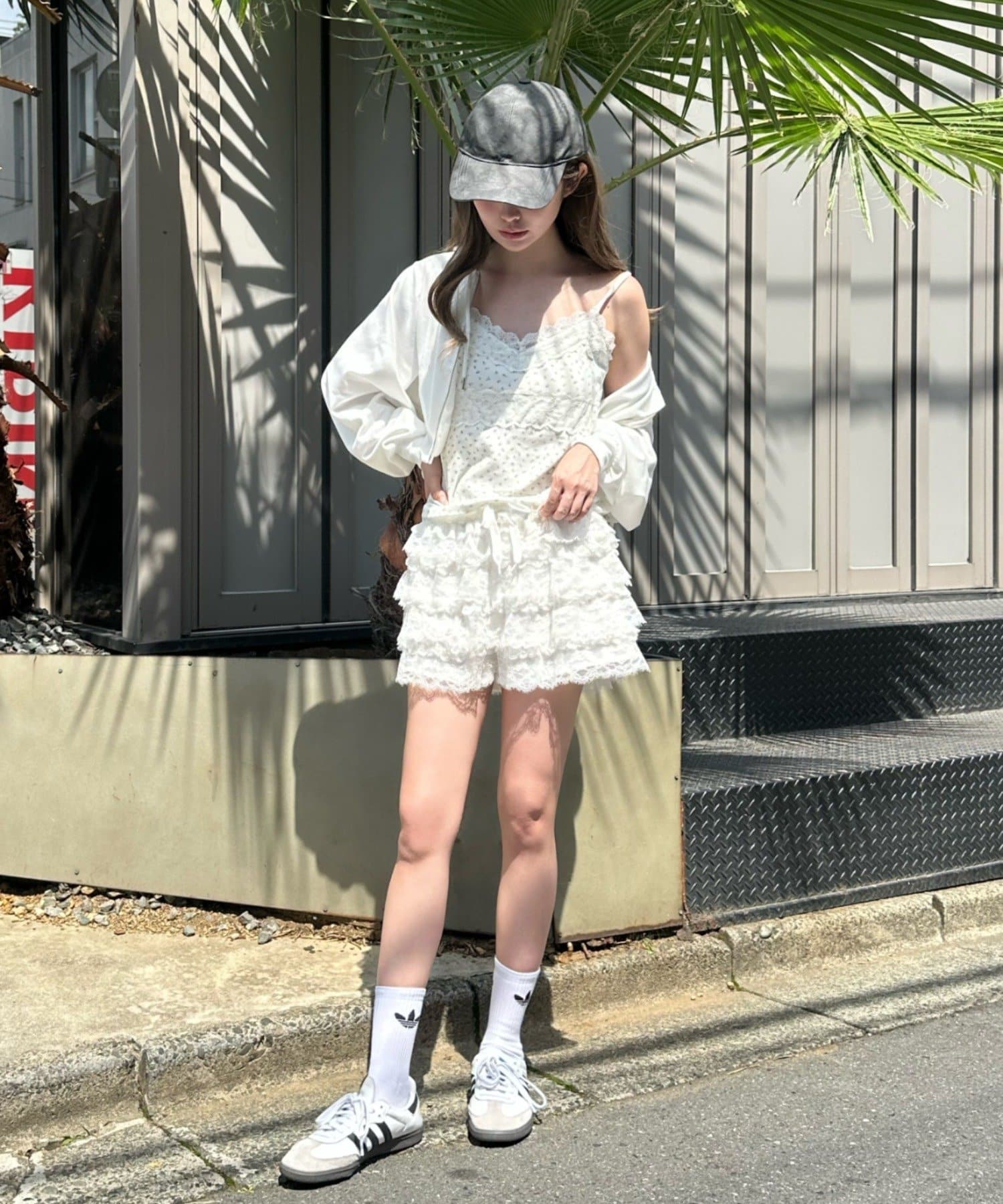 ボリュームのあるレースがコーディネートのポイントに。