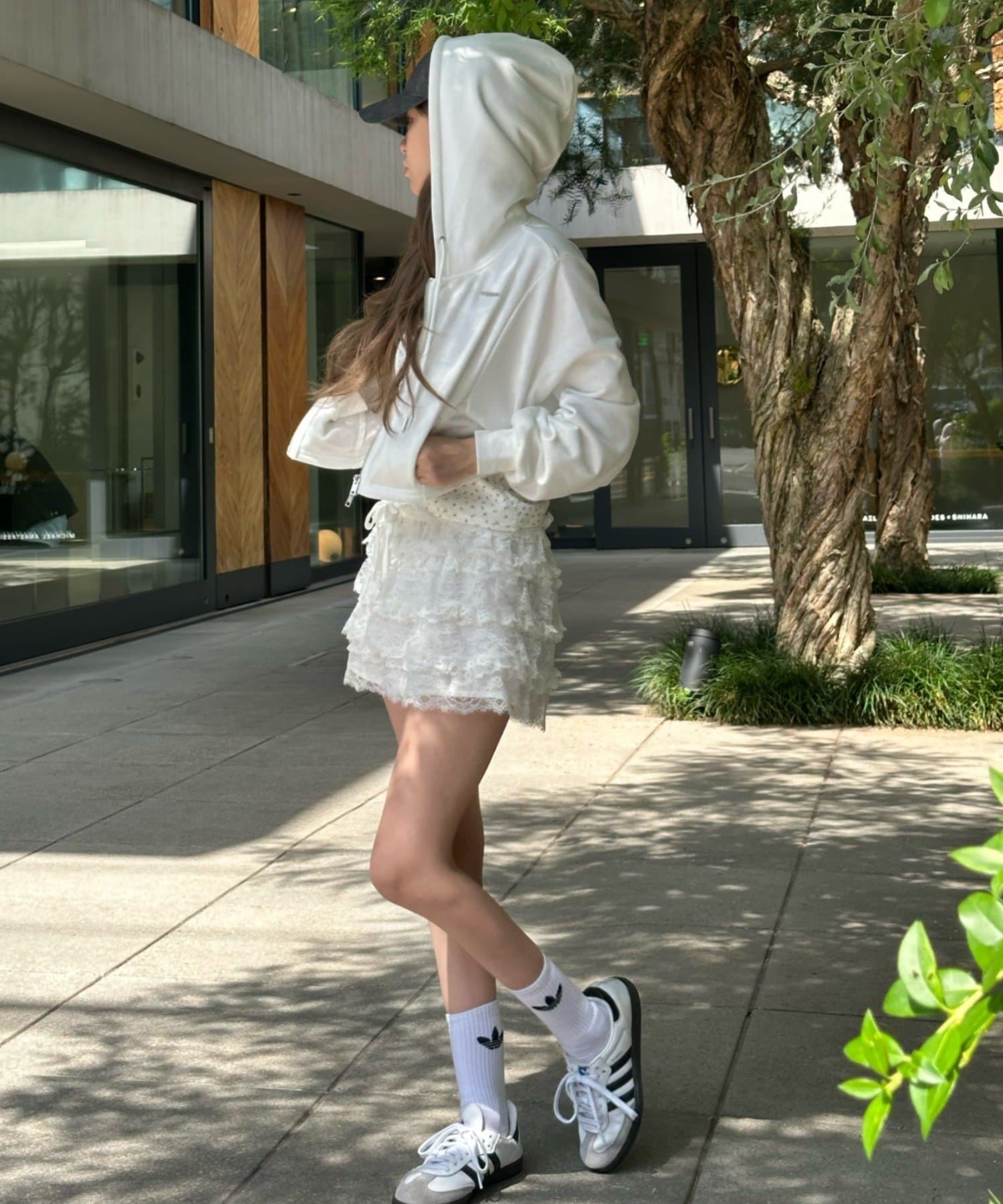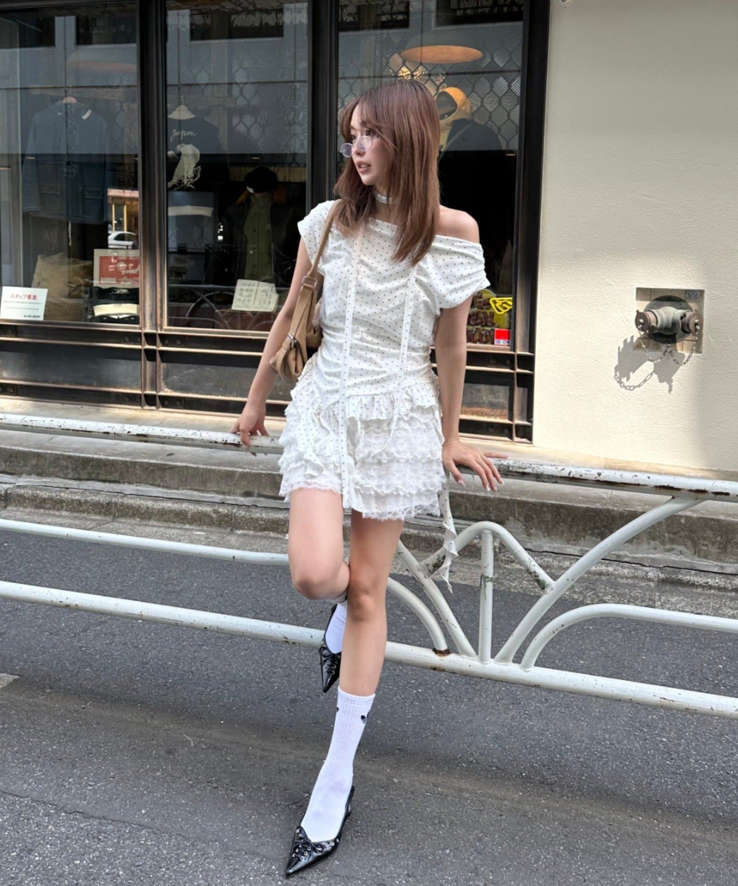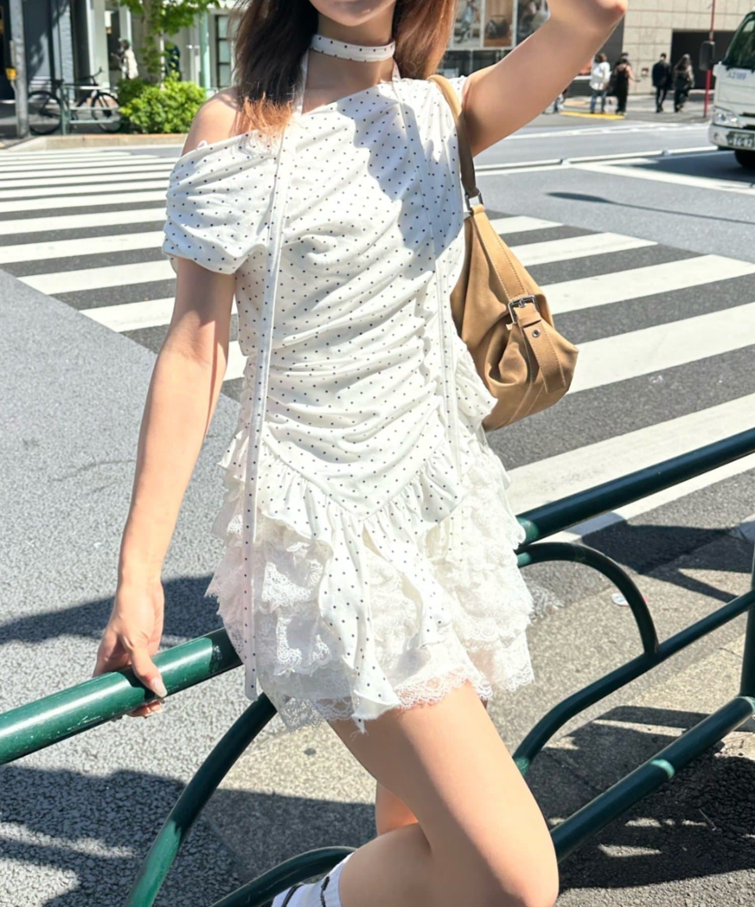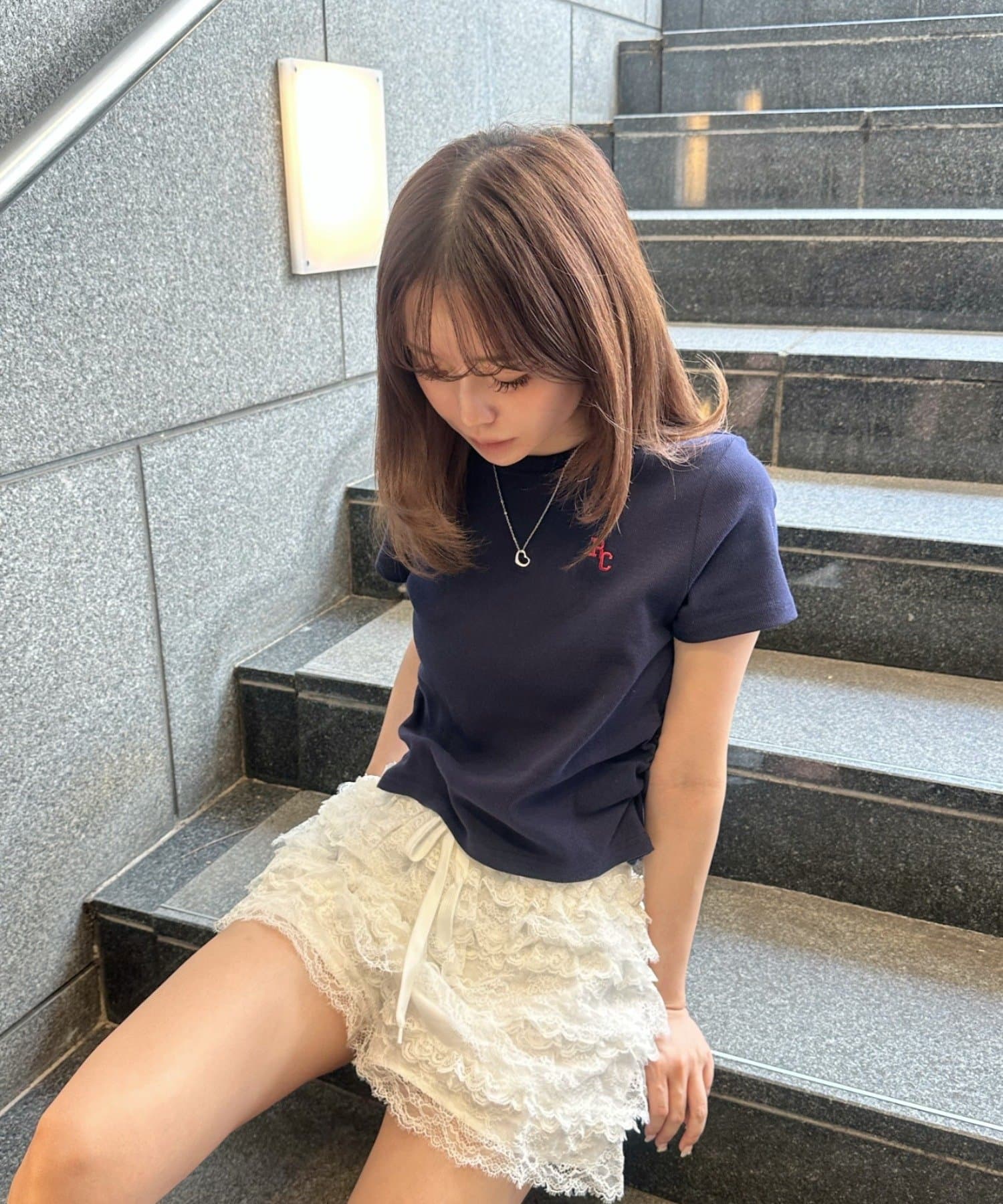 ボリュームのあるレースがコーディネートのポイントに。