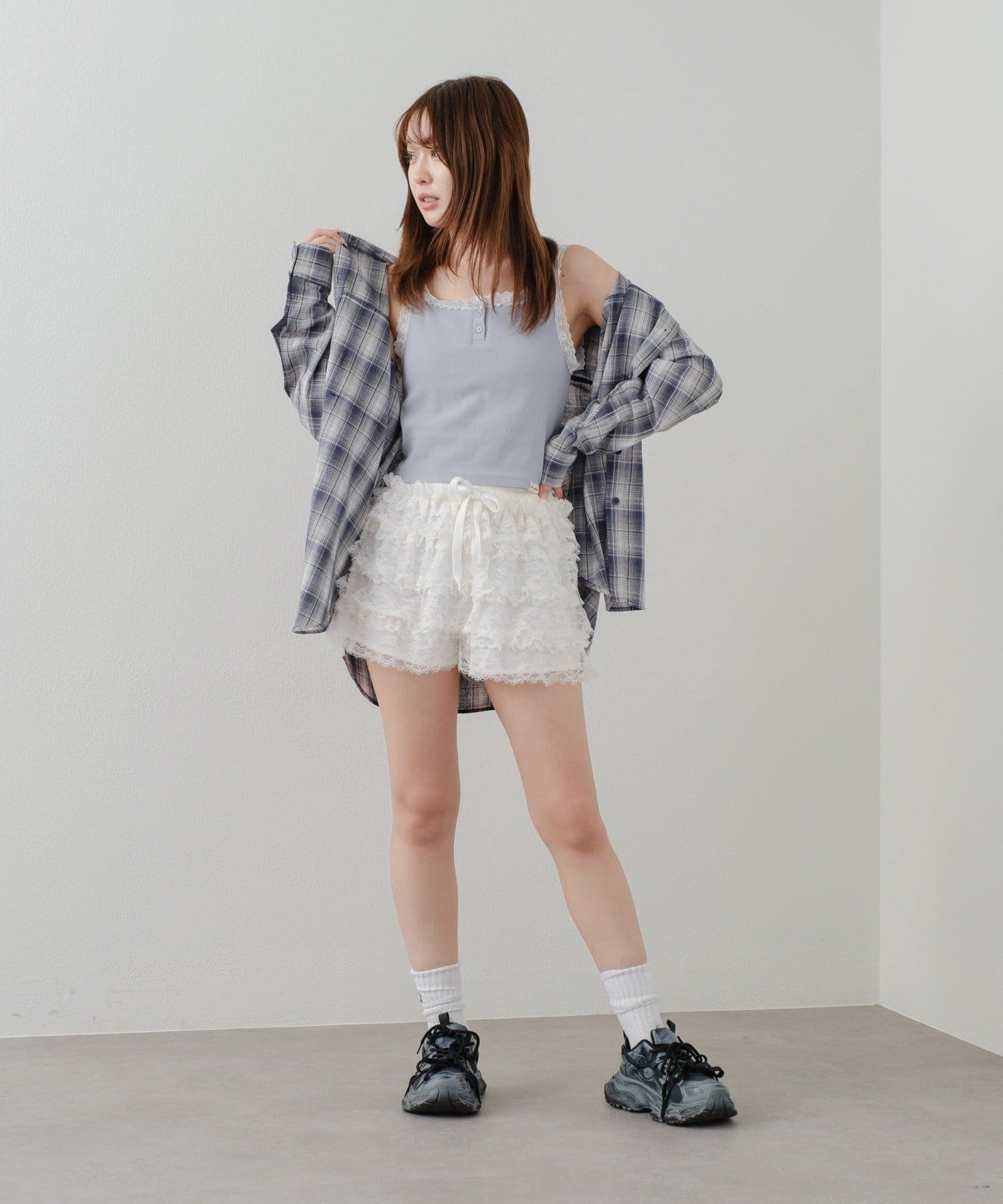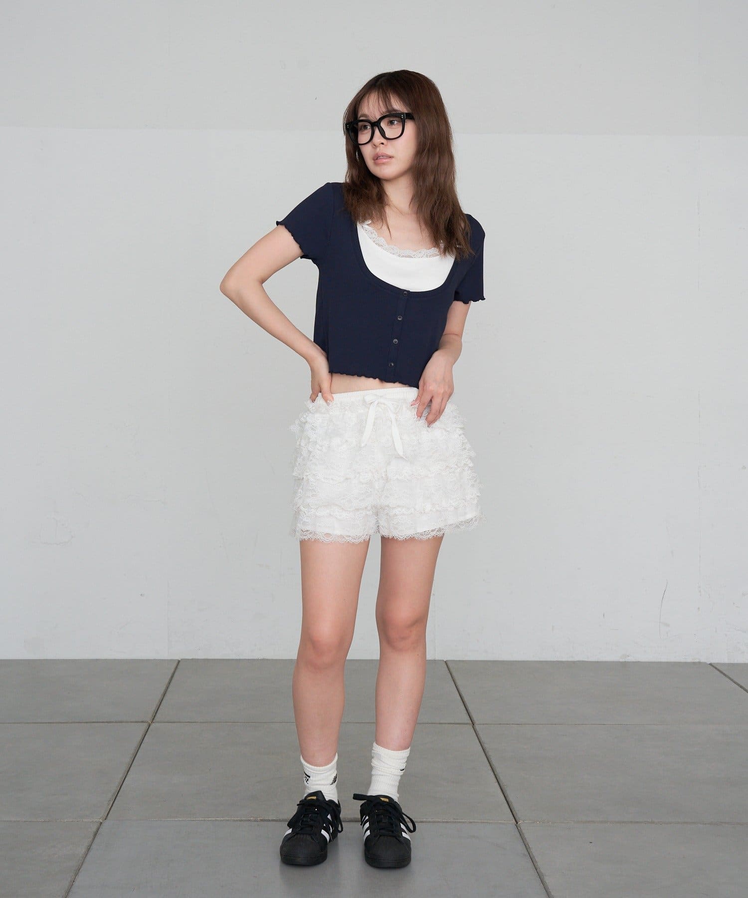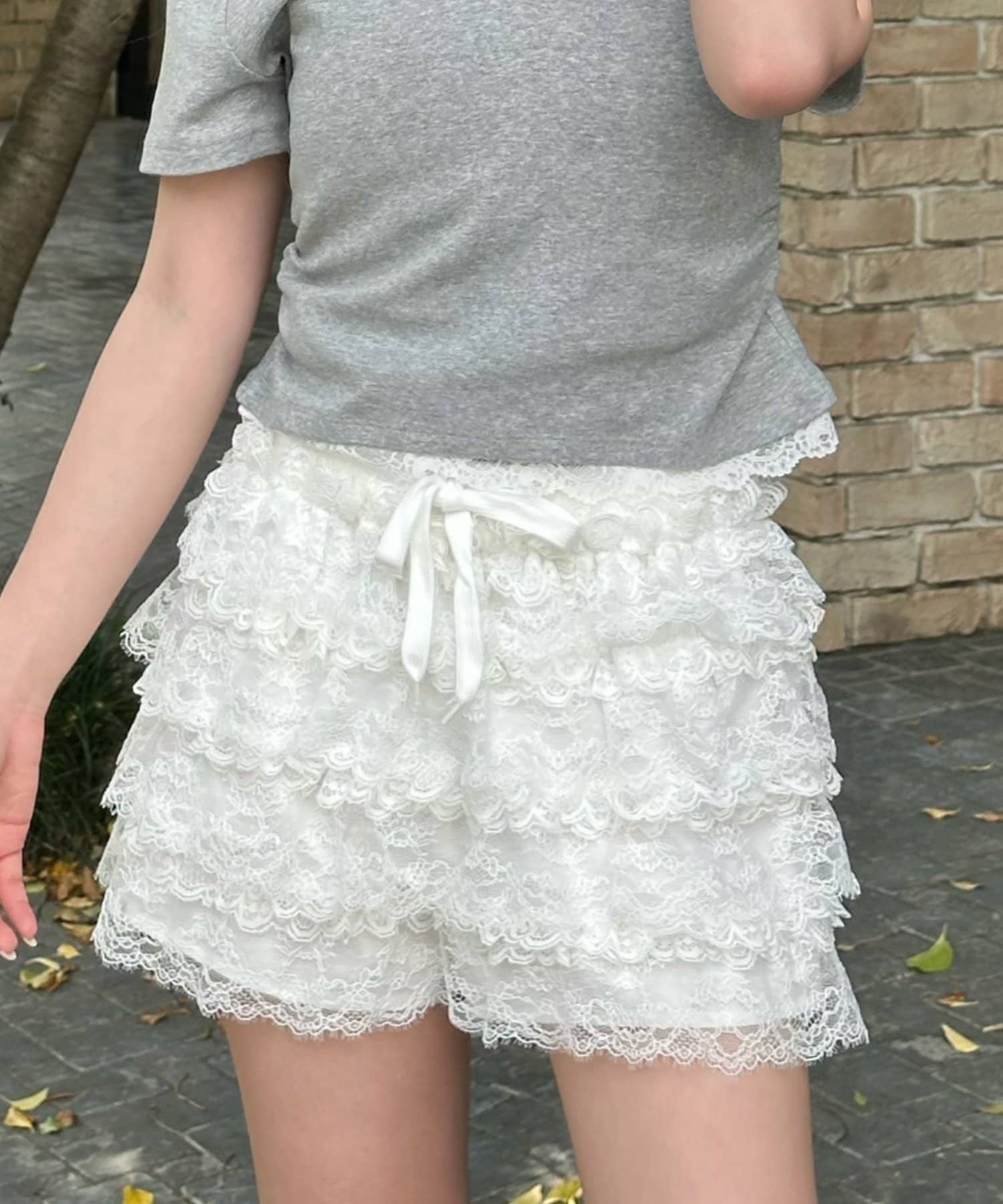 ボリュームフリルレースショートパンツ