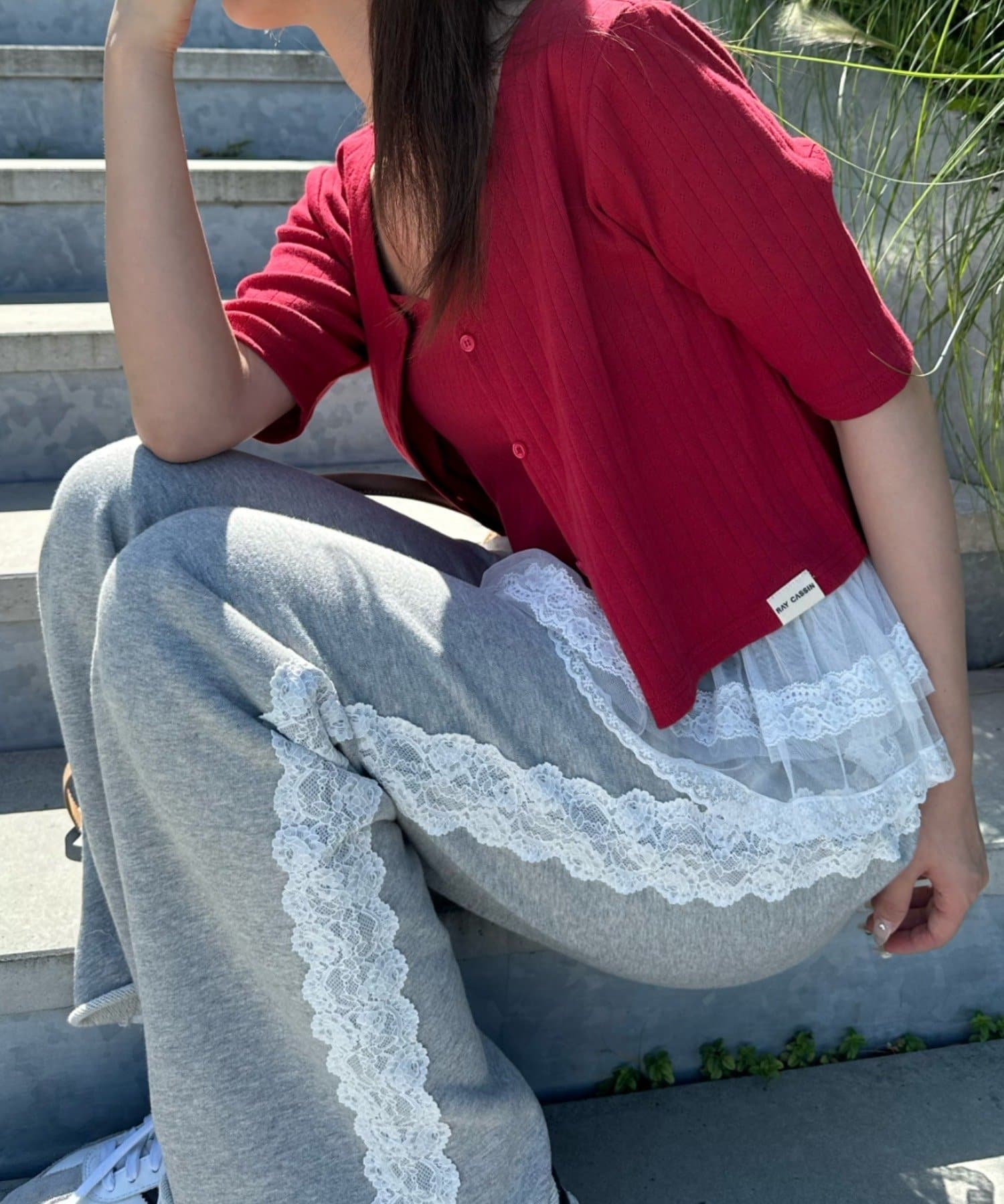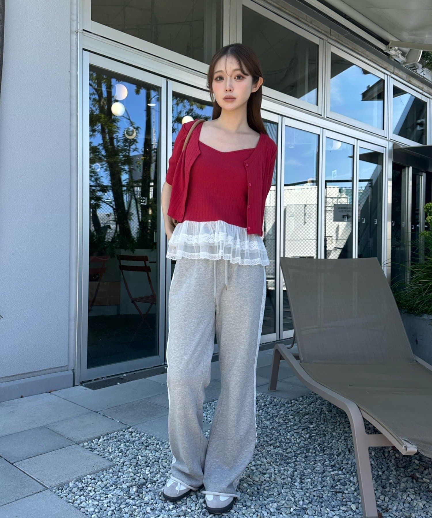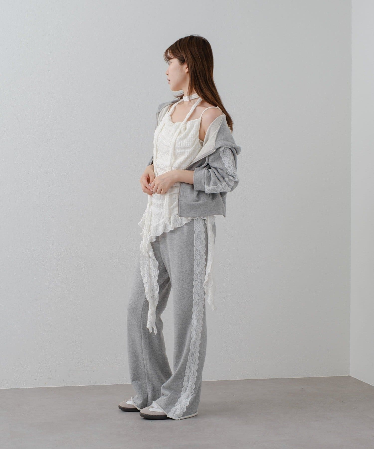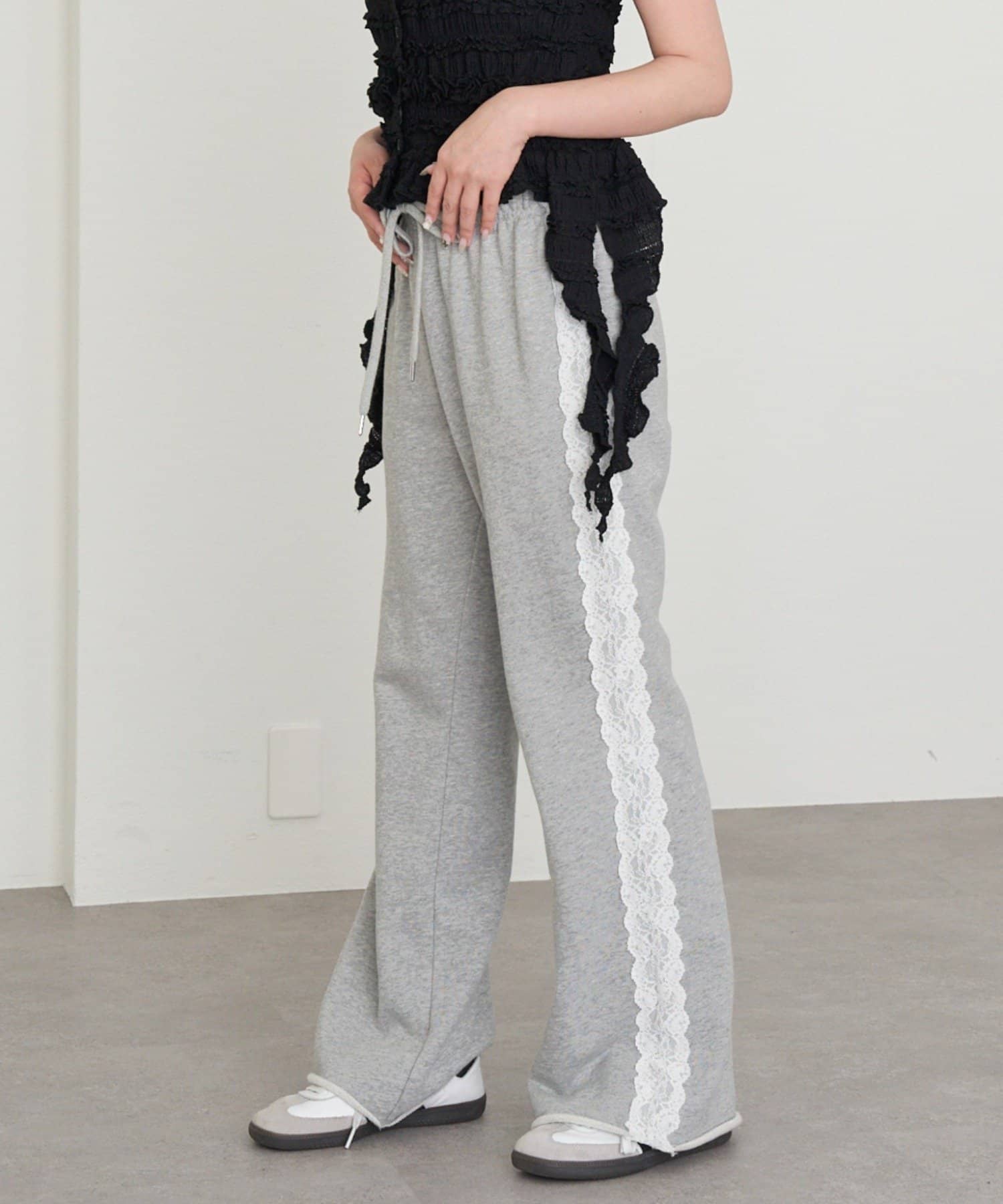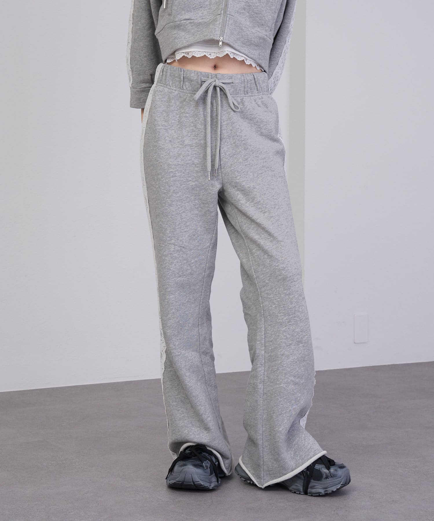 【RAY CASSIN】ピグメントレースフレアスウェットパンツ