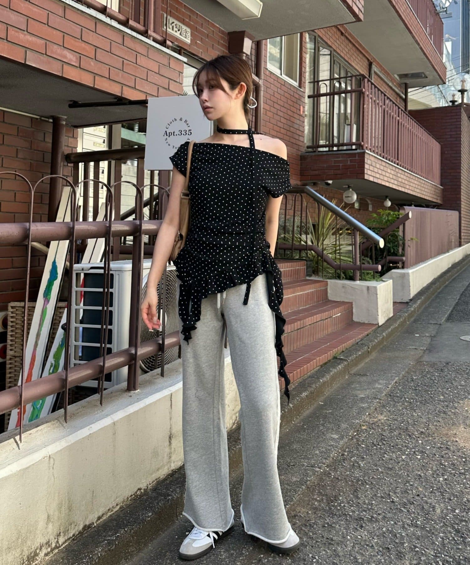 ・ラフな切りっぱなしデザインが今っぽいスウェットパンツ。