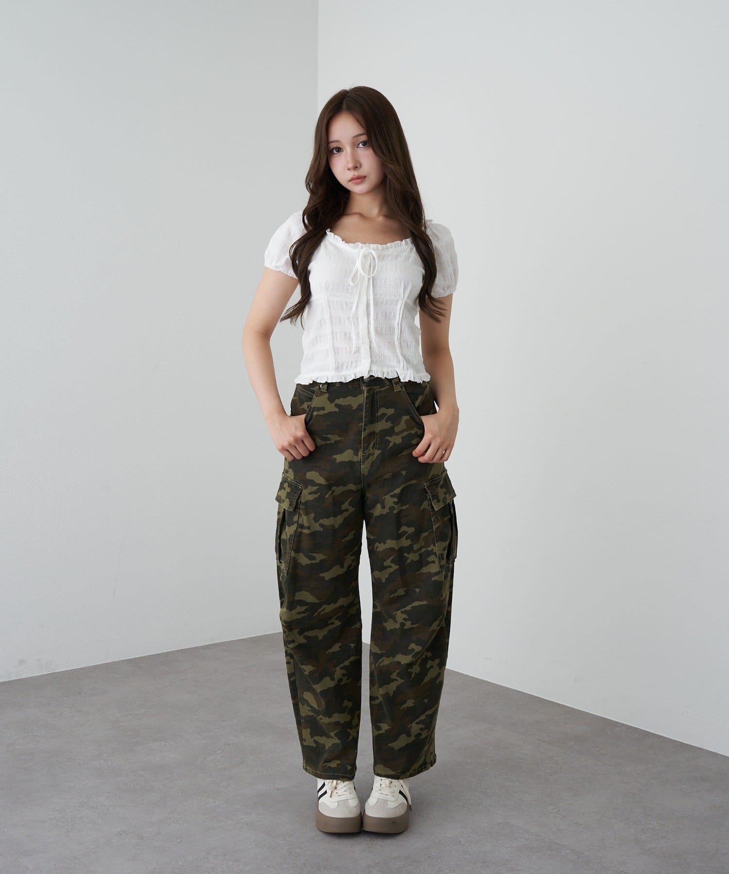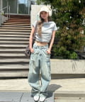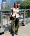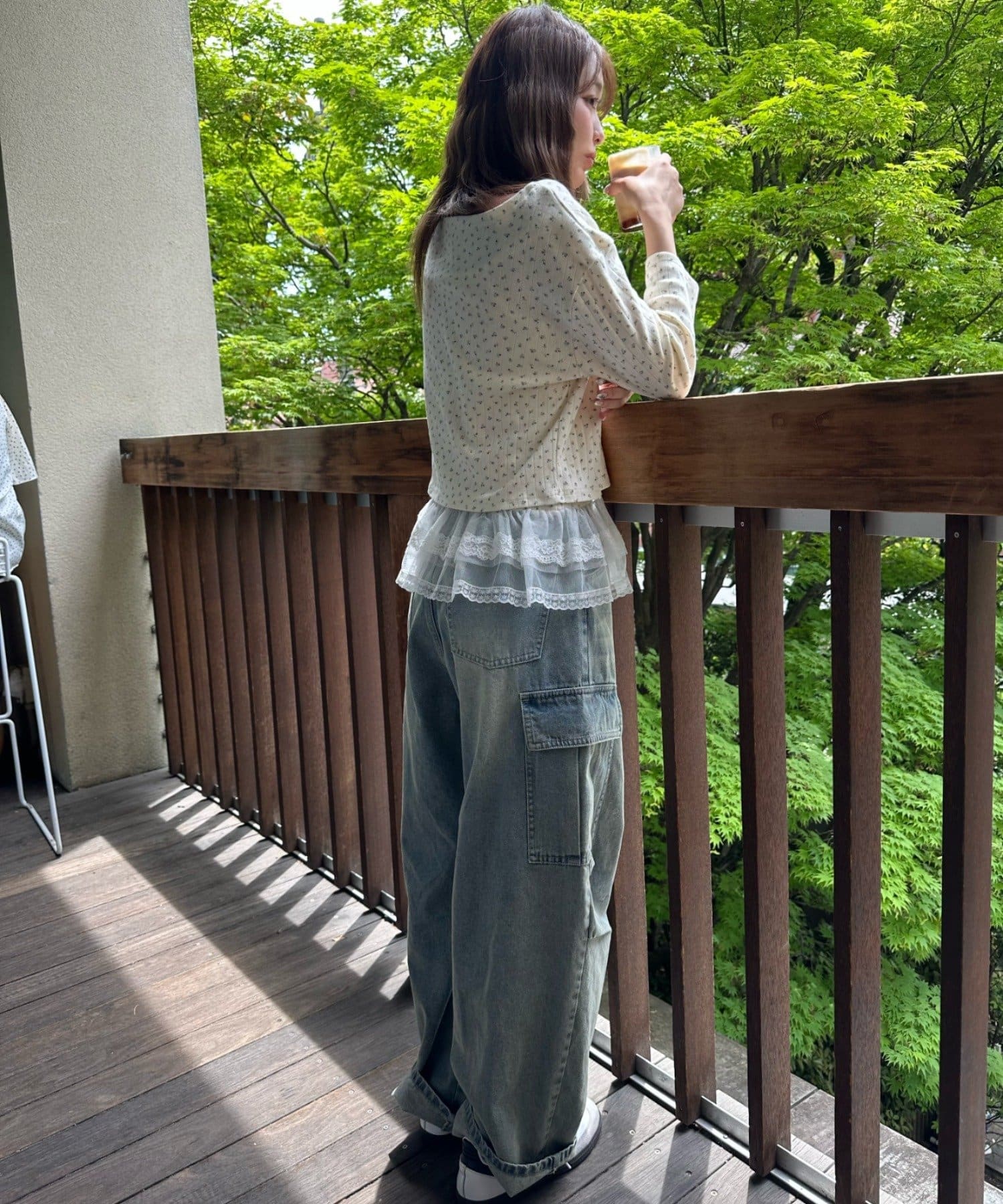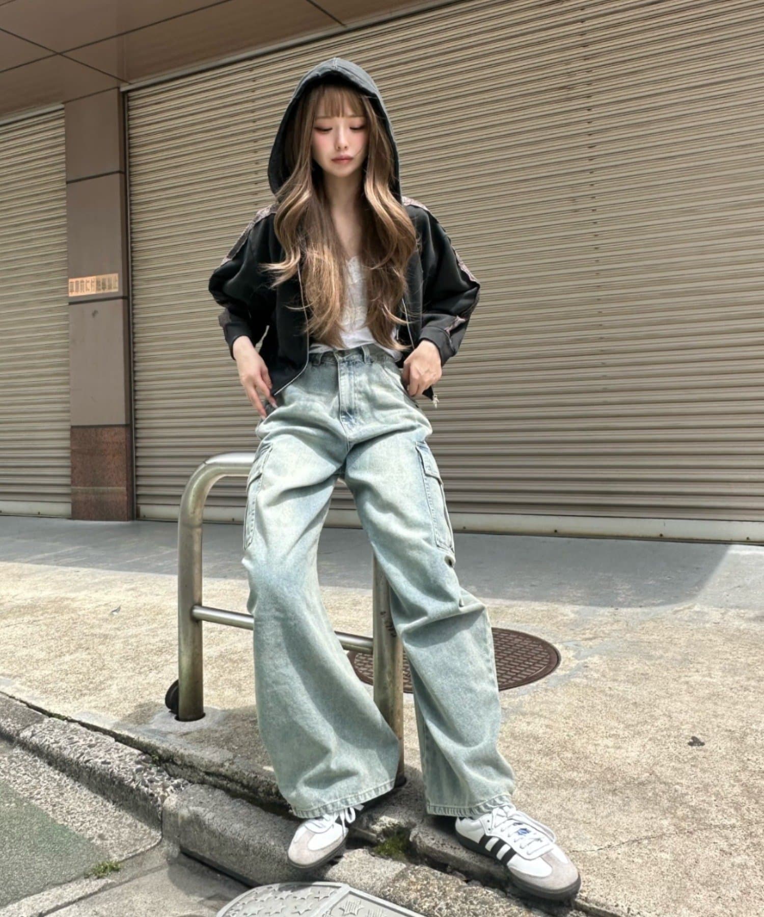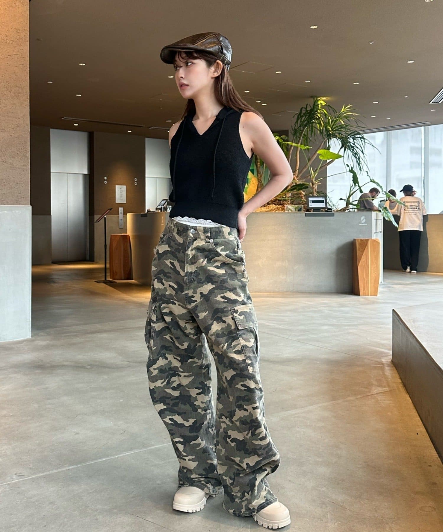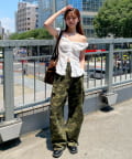・コンパクトなトップスを合わせることですっきりとした印象に。