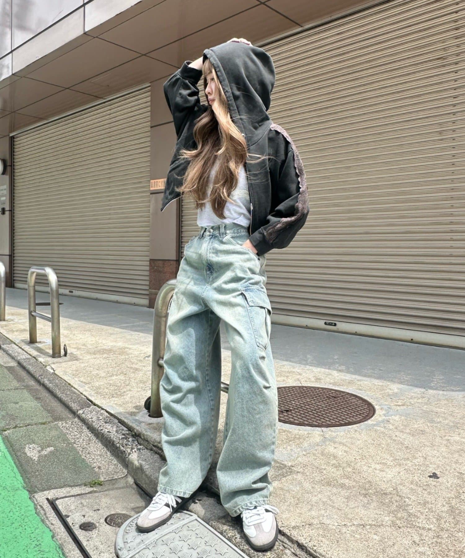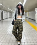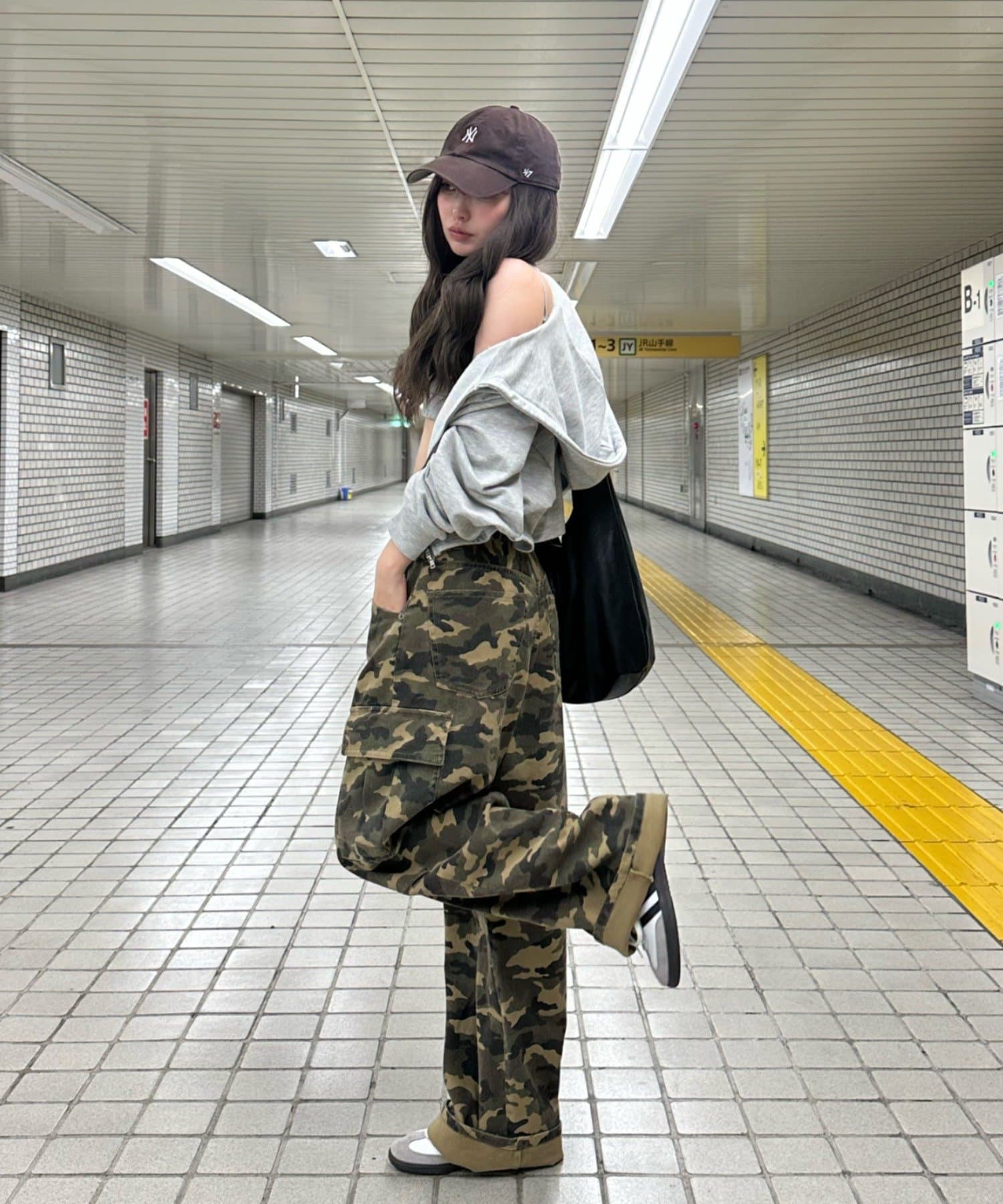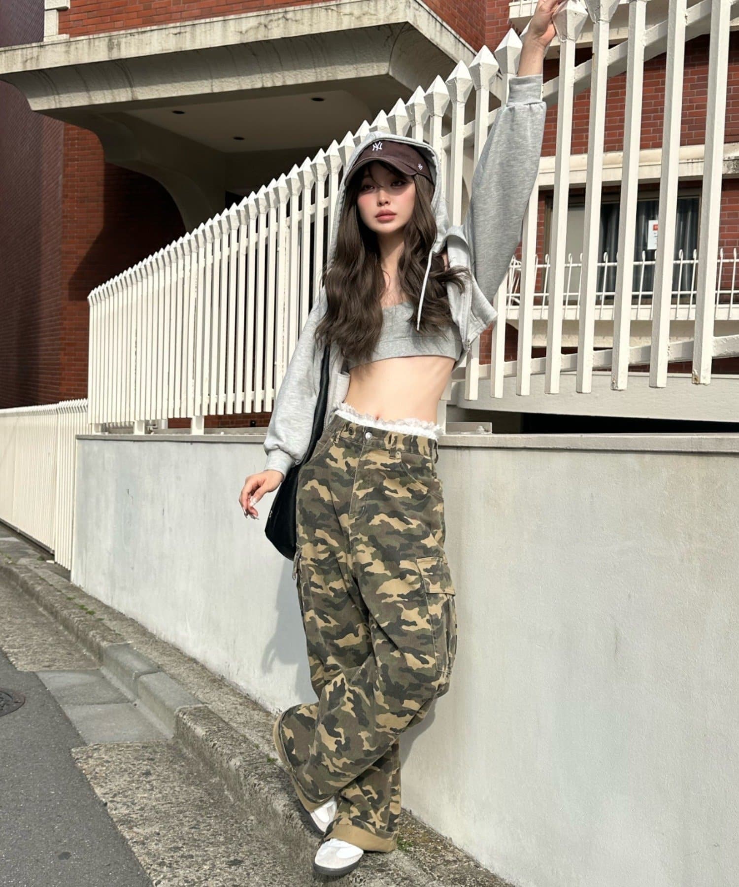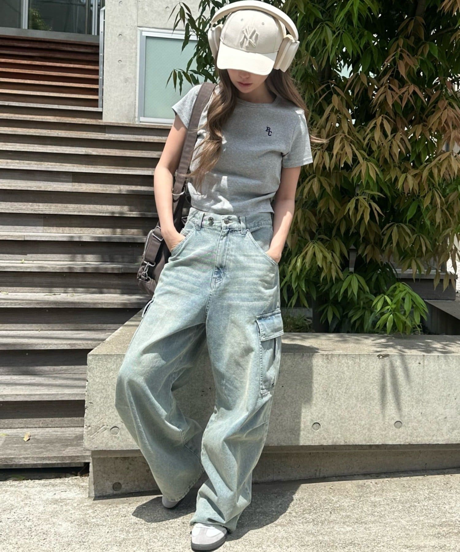 ・コンパクトなトップスを合わせることですっきりとした印象に。