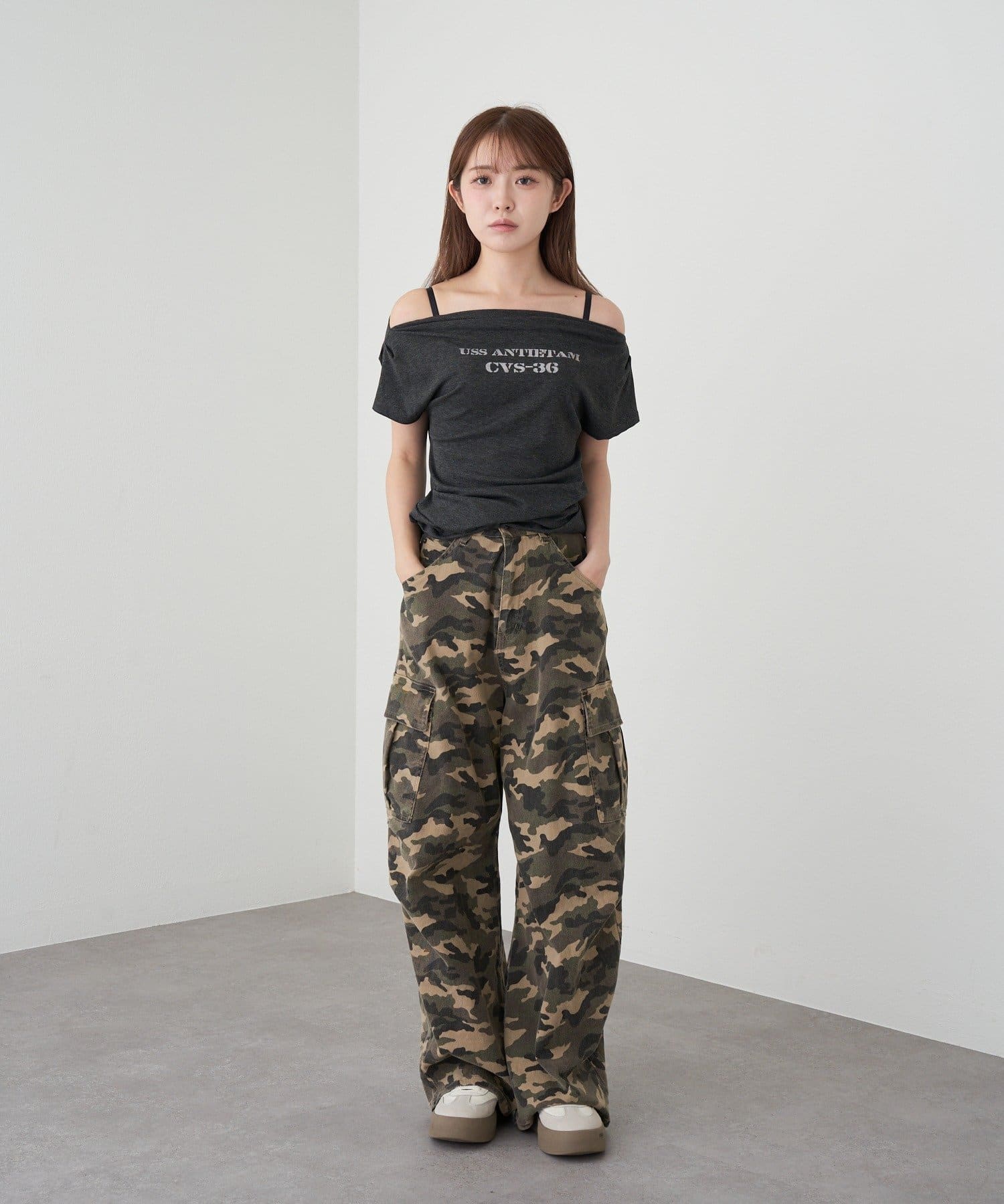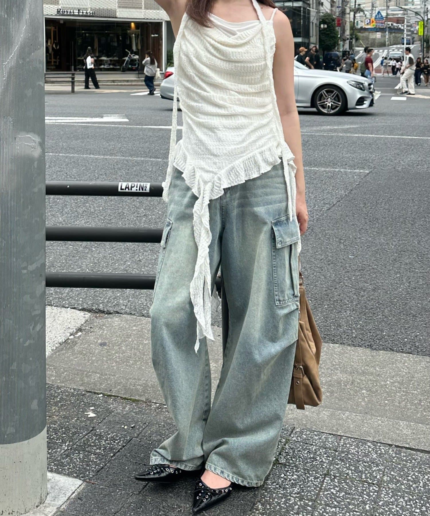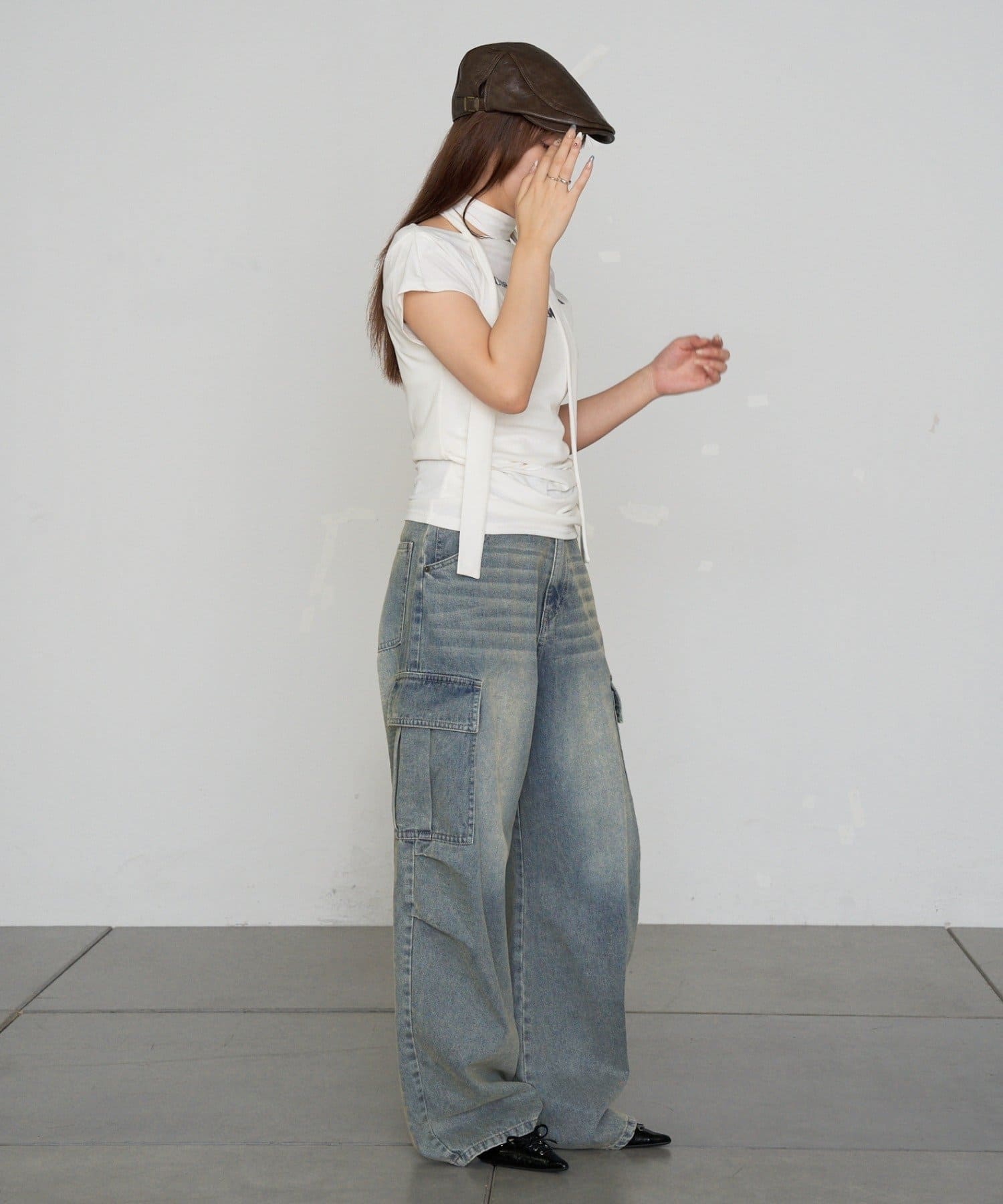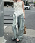・ゆったりとしたサイズ感で、脚のラインを拾いにくくラフに着用していただける一枚です。