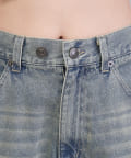 ・この製品は、ジーンズと同様のインディゴ染めの製品です。その独特の染め方と色合いに特徴があります。