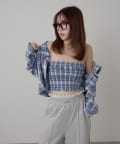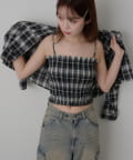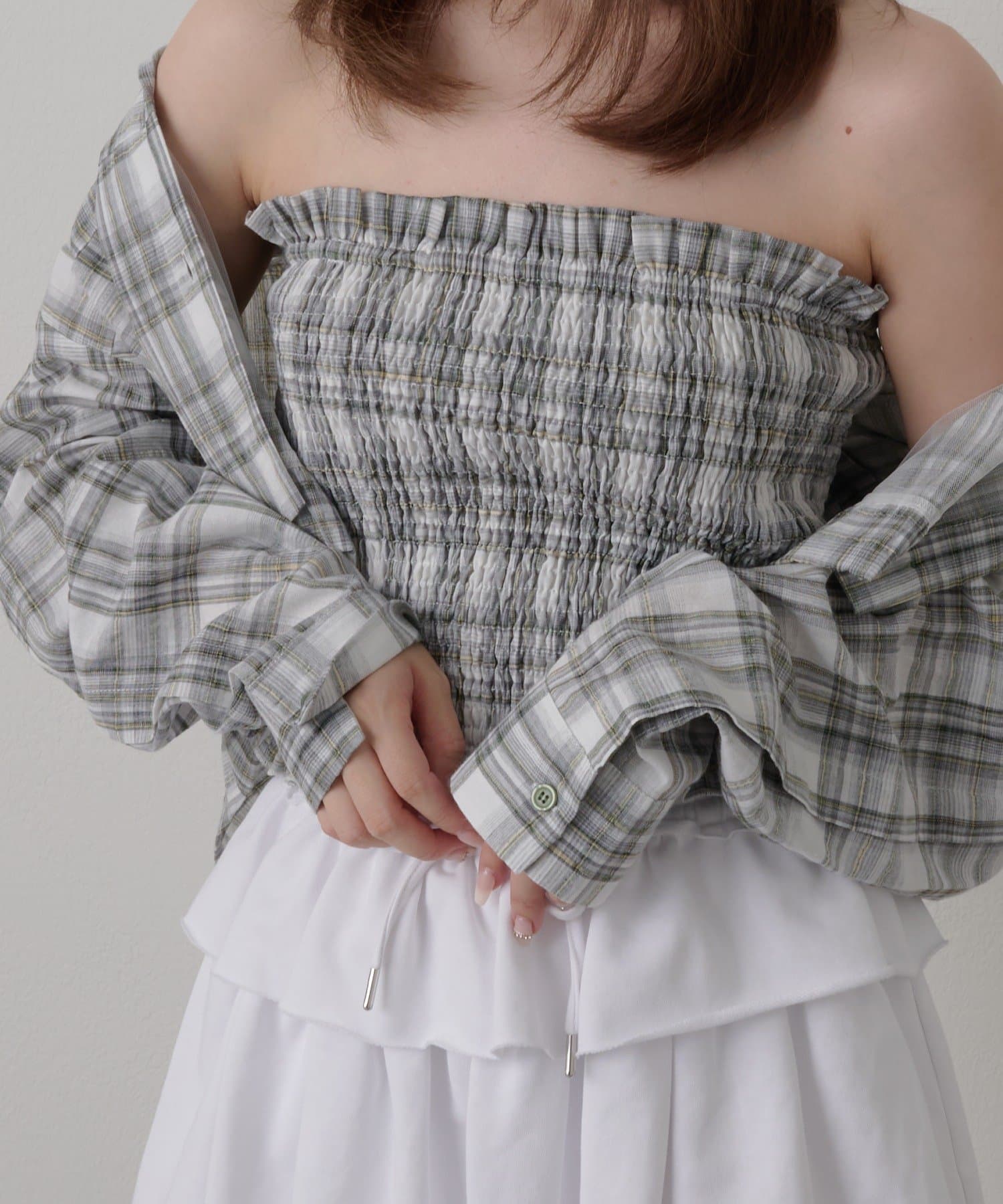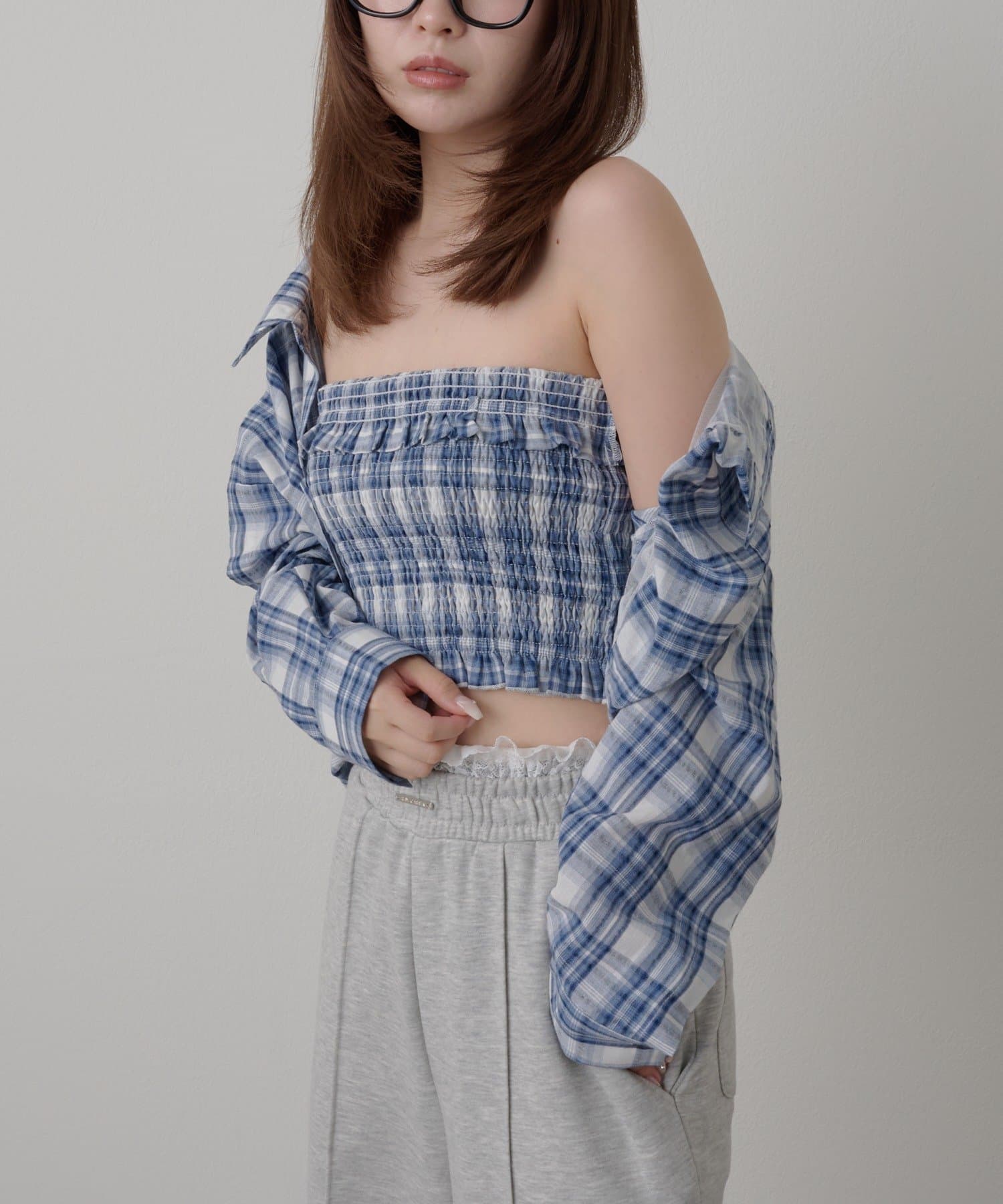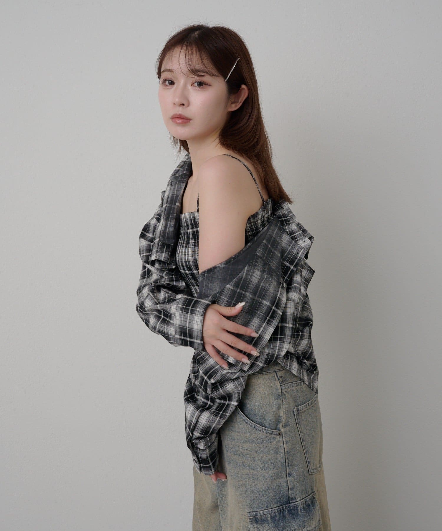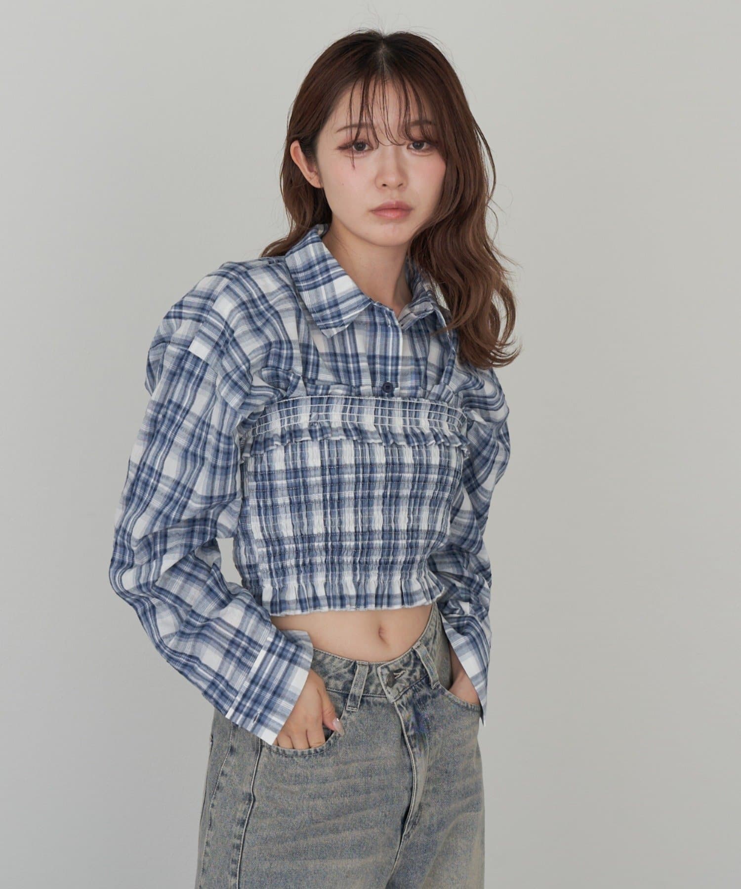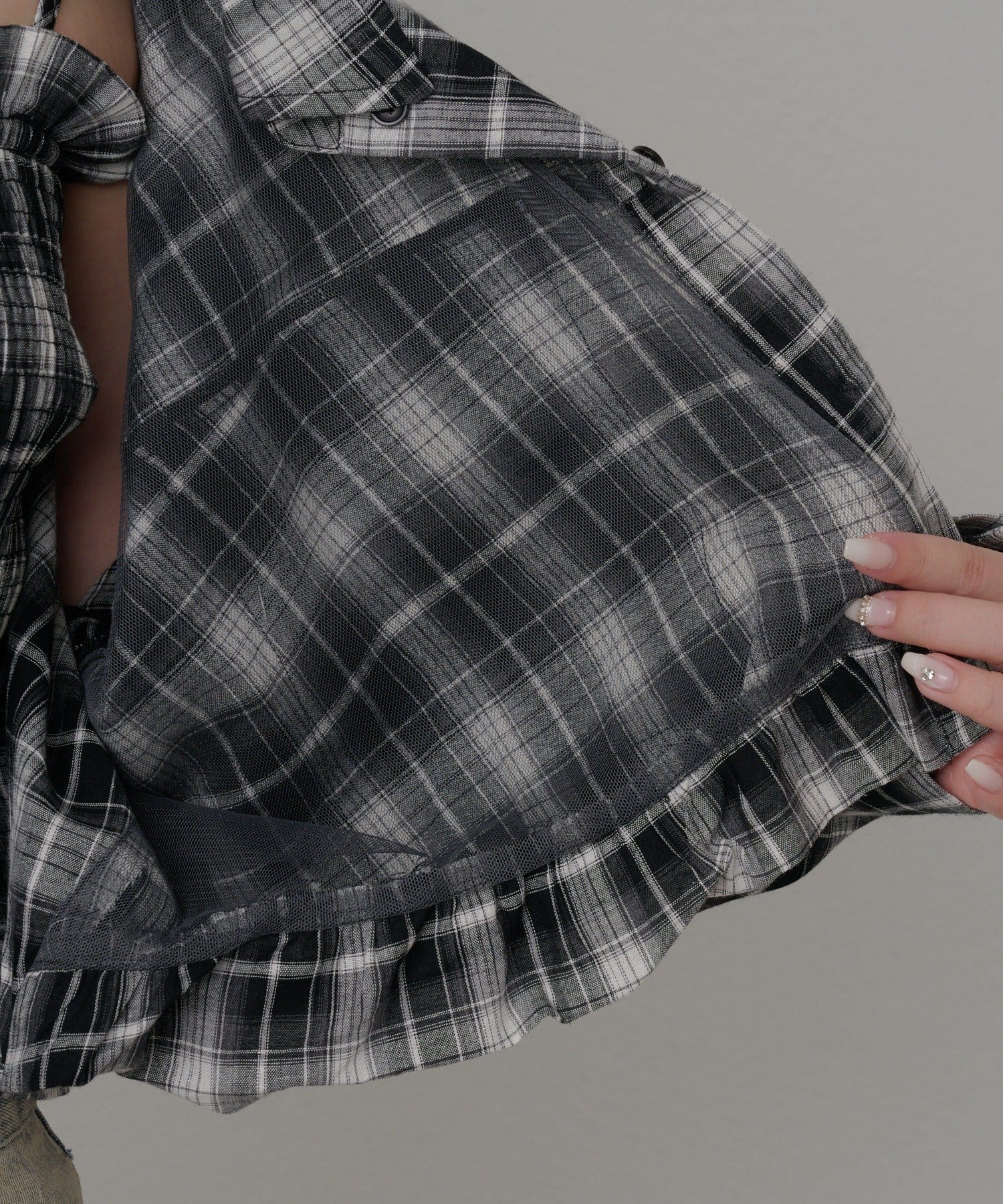 ・伸縮性があり肌にフィットするビスチェがセットのチェックシャツ。