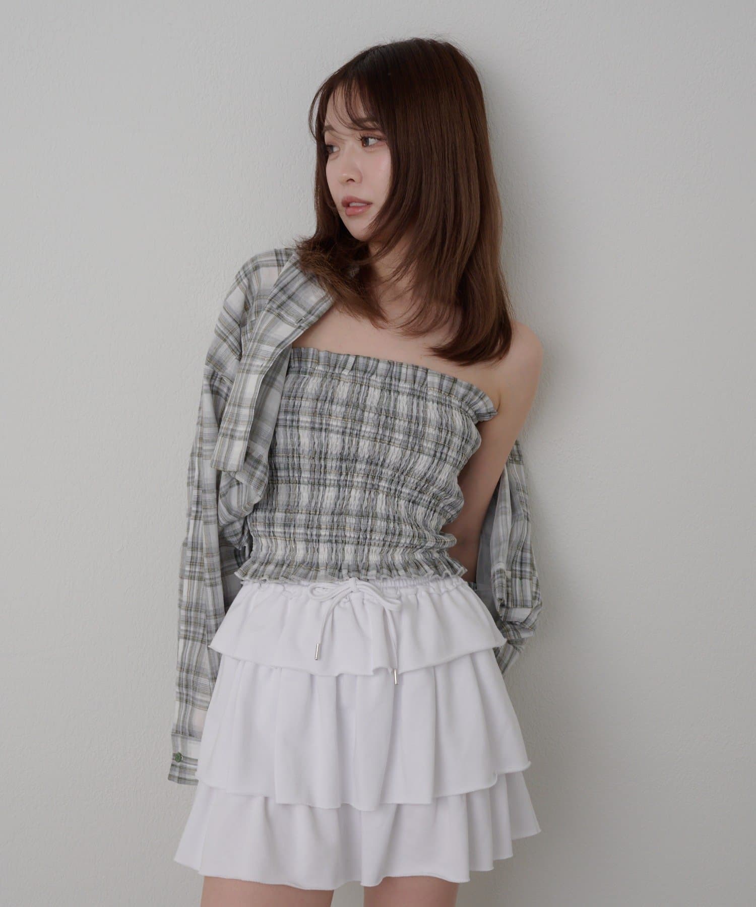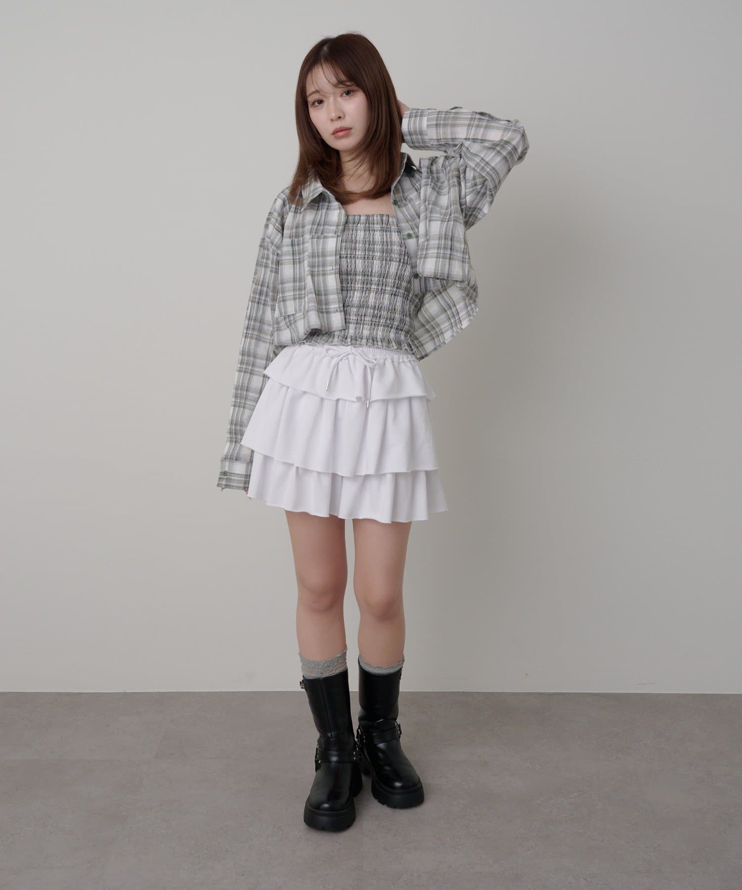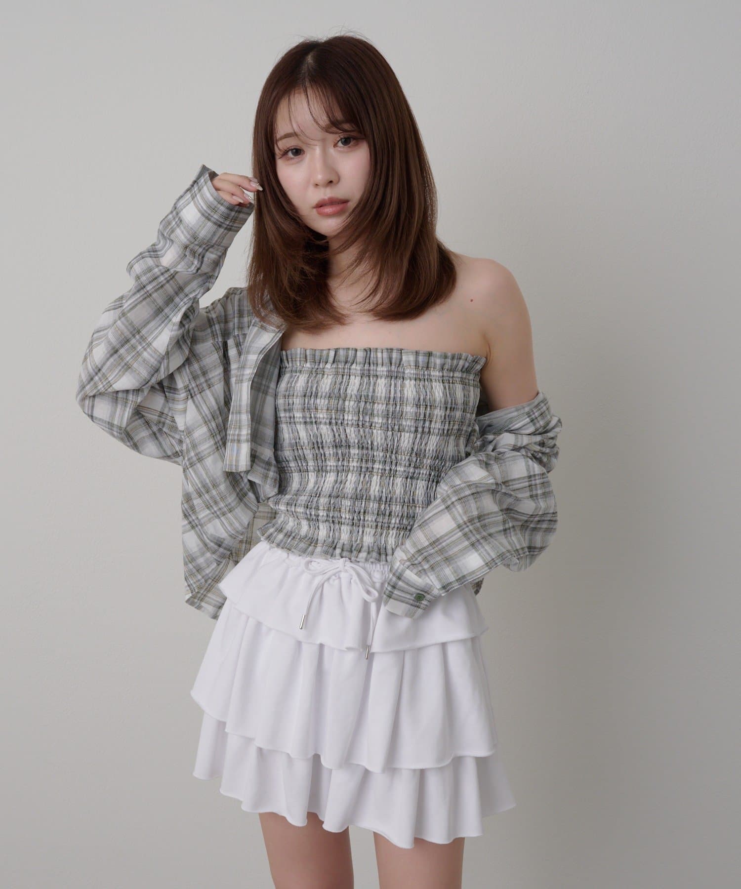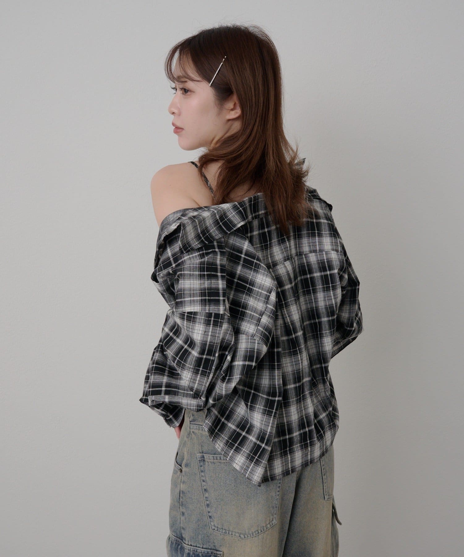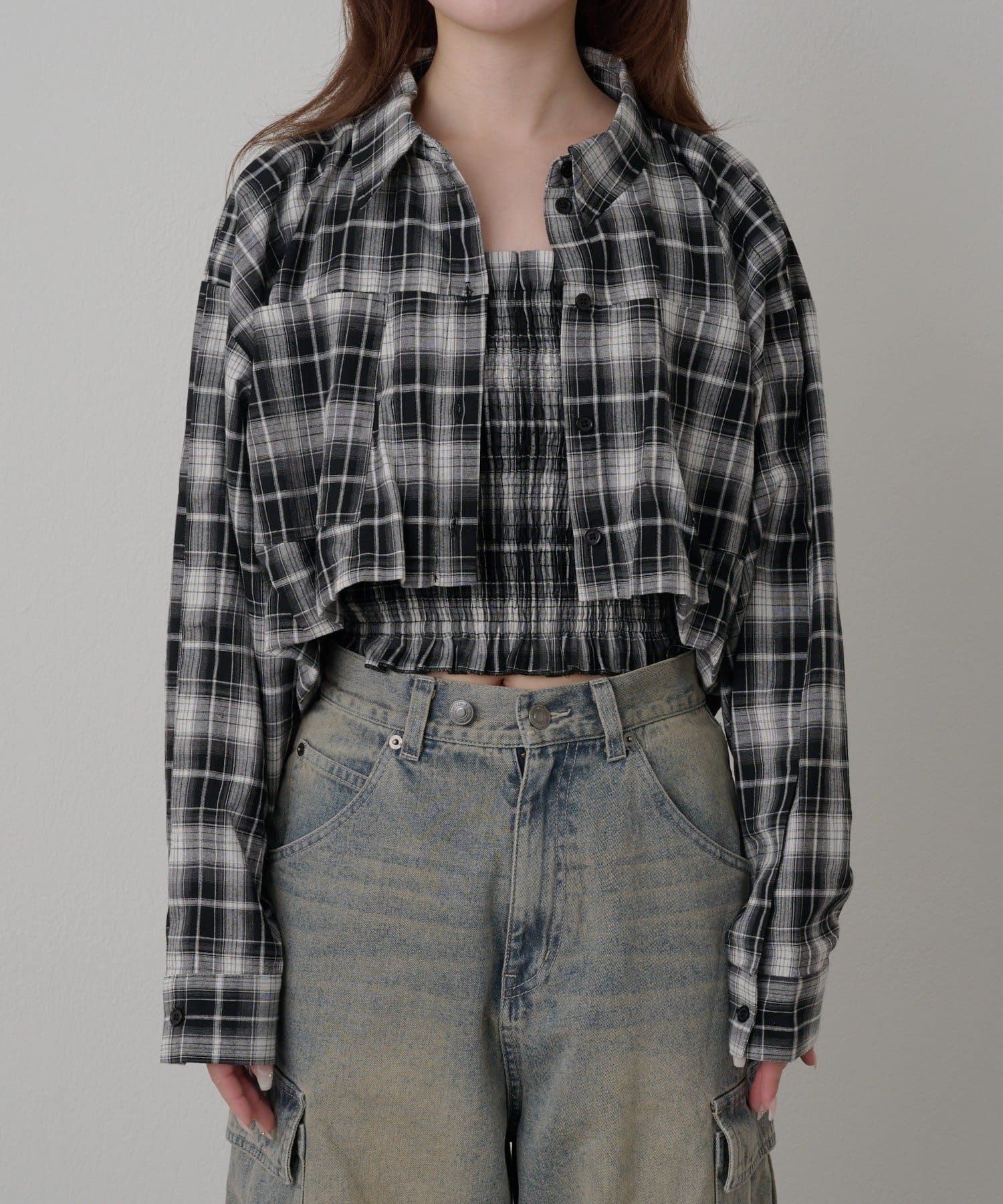 ・伸縮性があり肌にフィットするビスチェがセットのチェックシャツ。