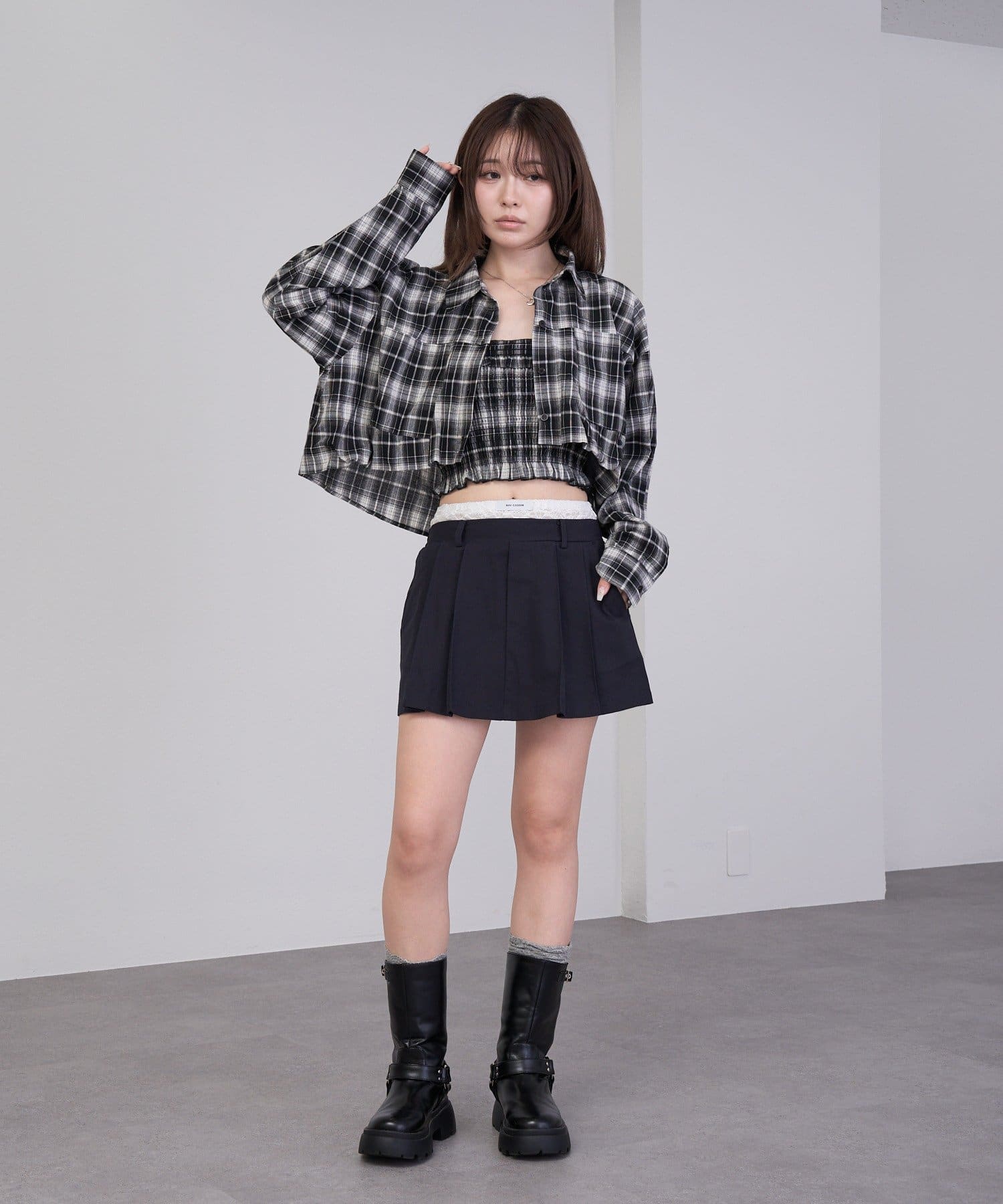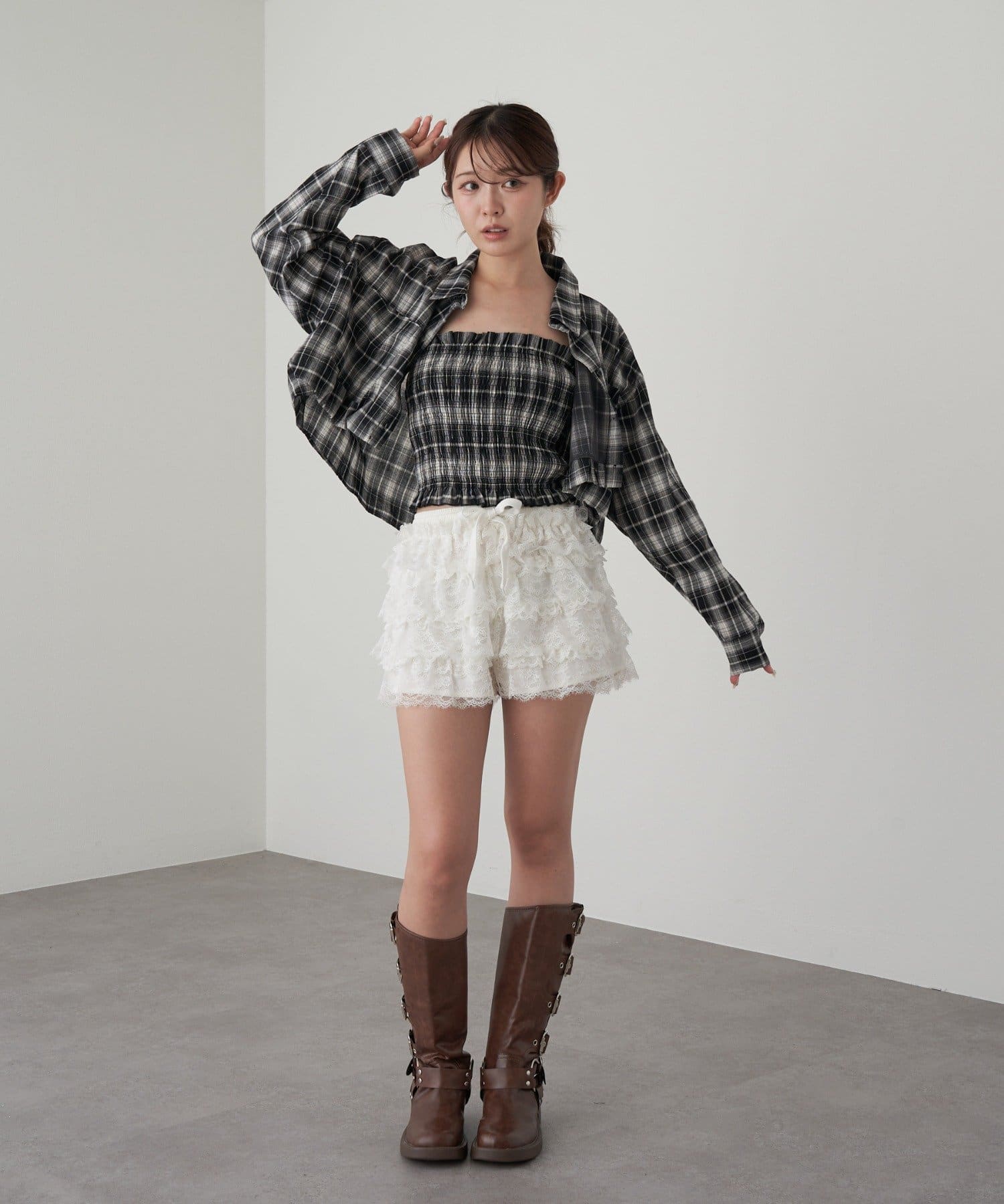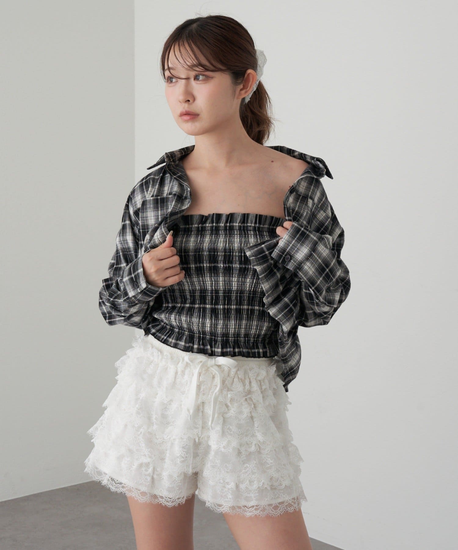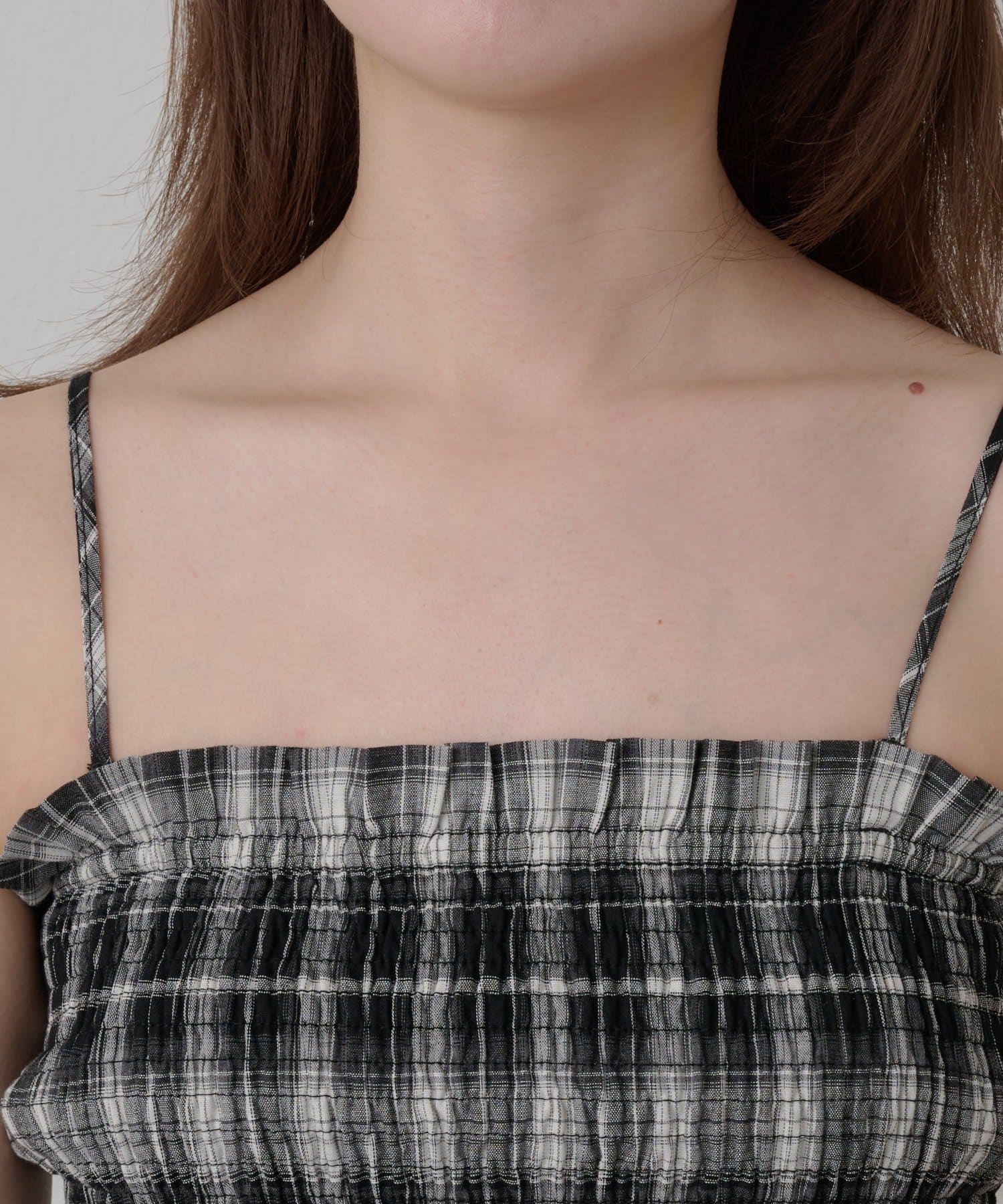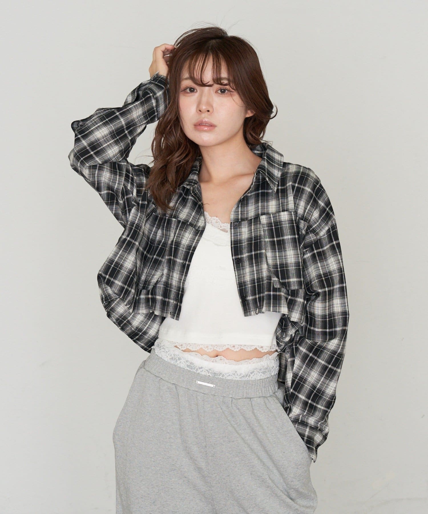 ・伸縮性があり肌にフィットするビスチェがセットのチェックシャツ。