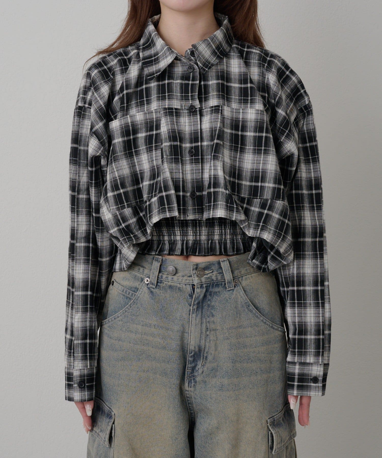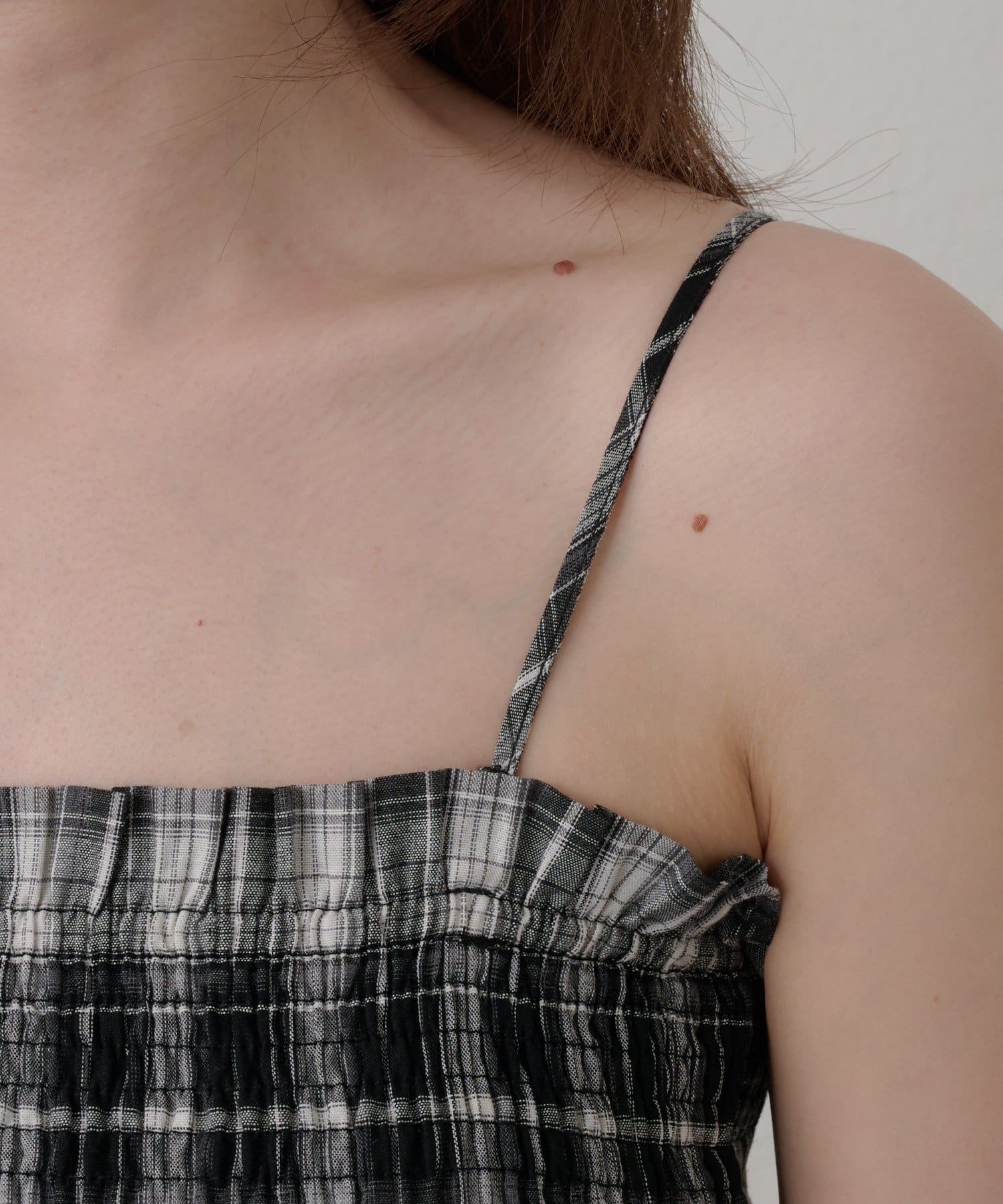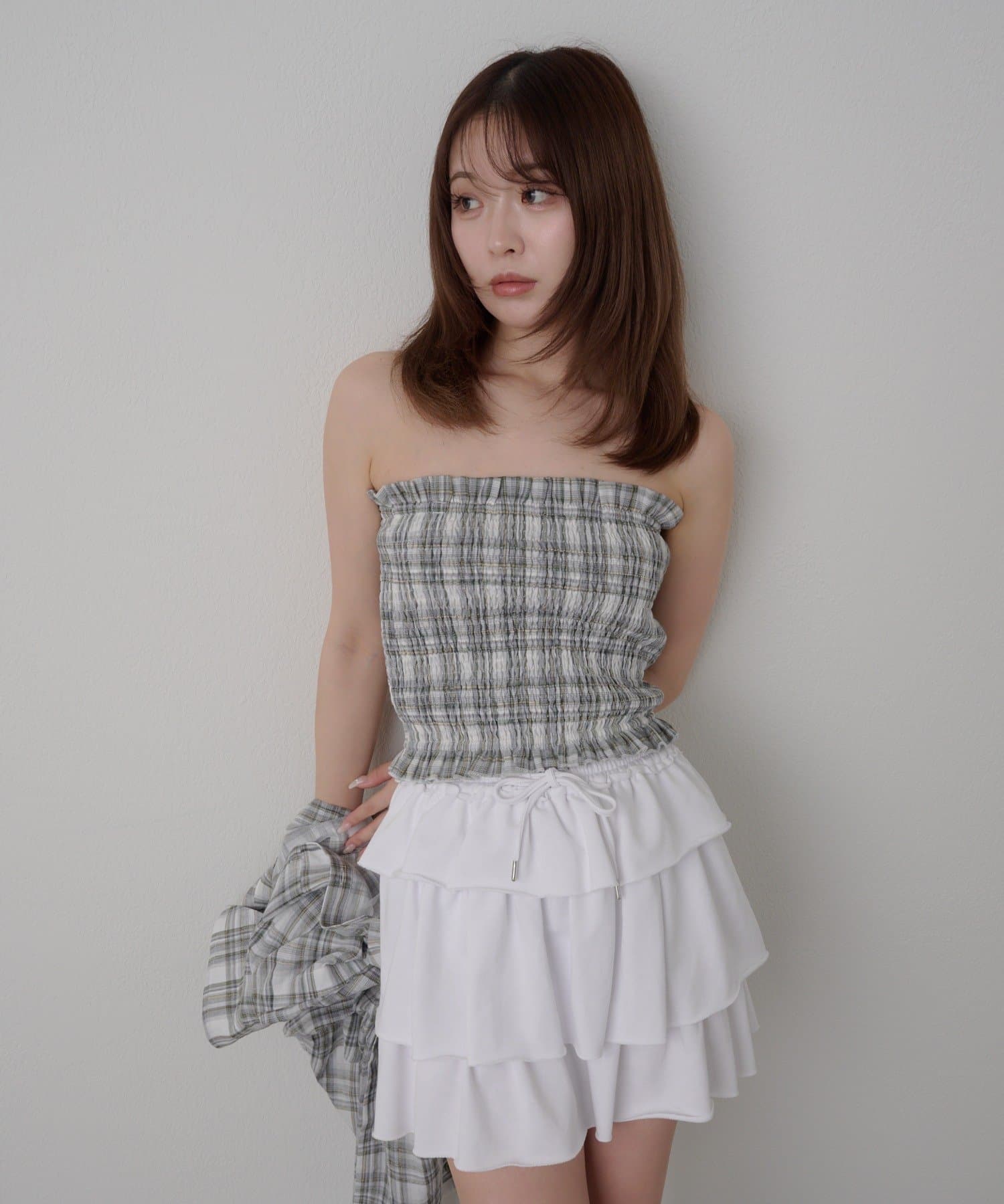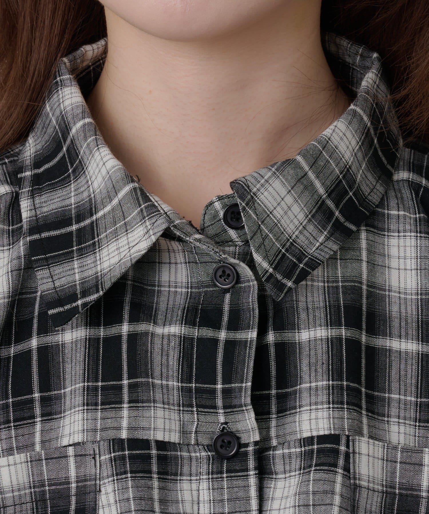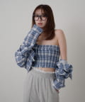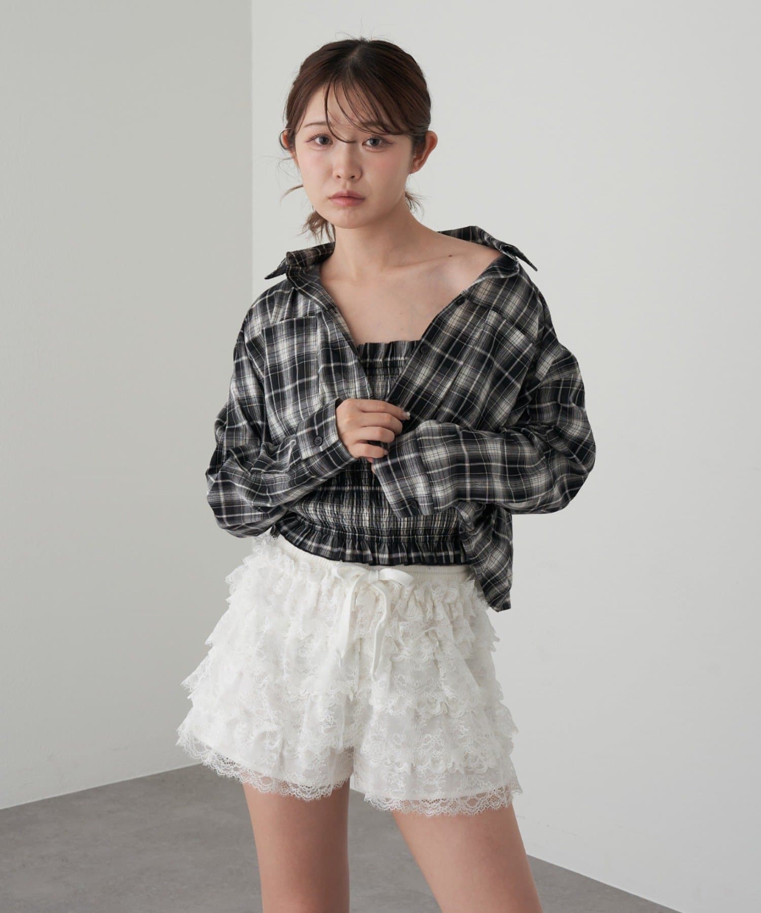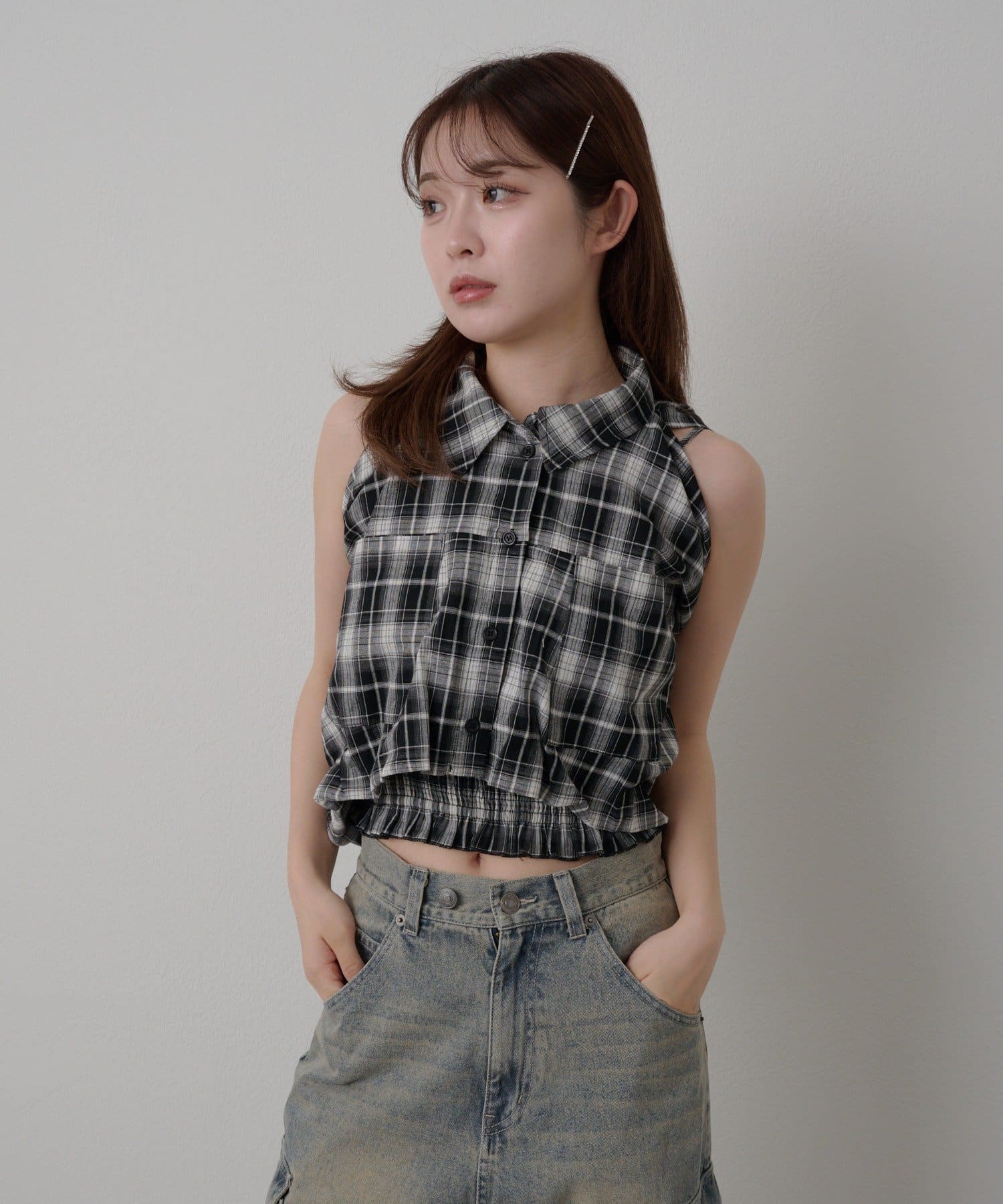 ・伸縮性があり肌にフィットするビスチェがセットのチェックシャツ。