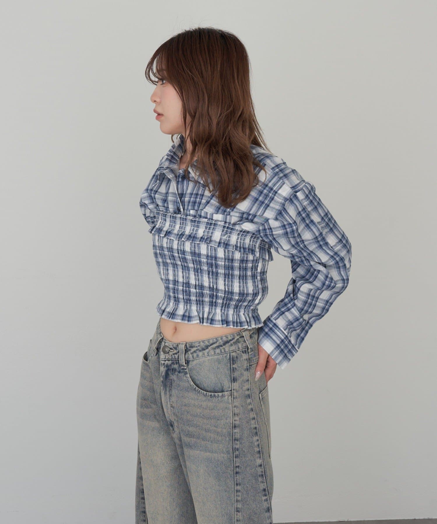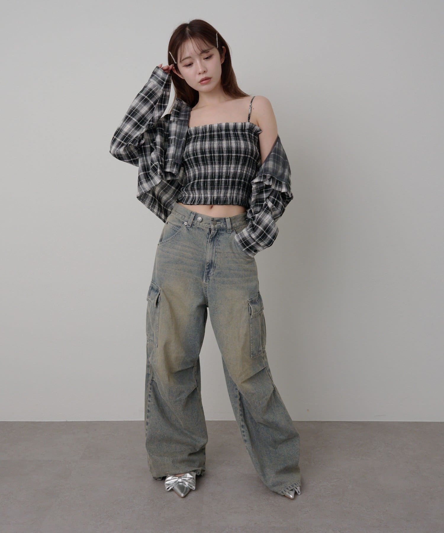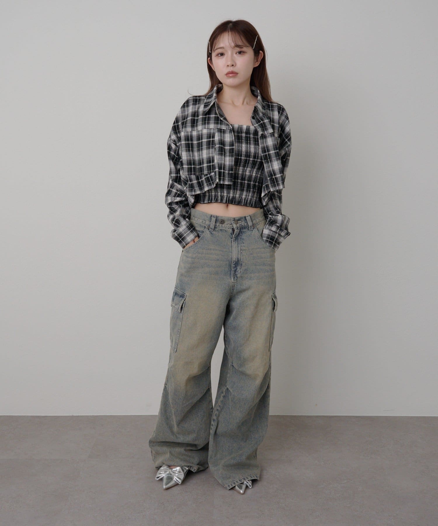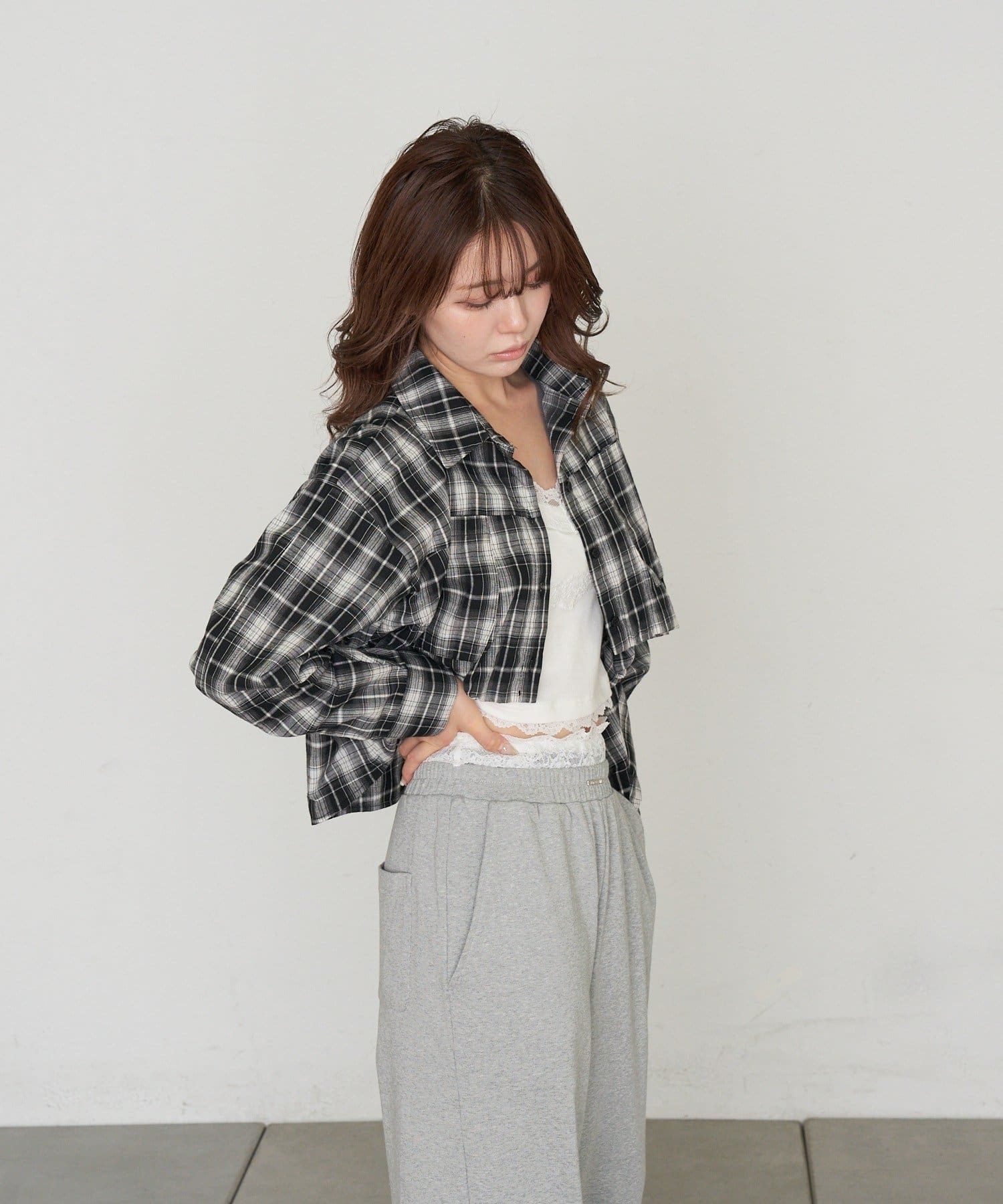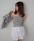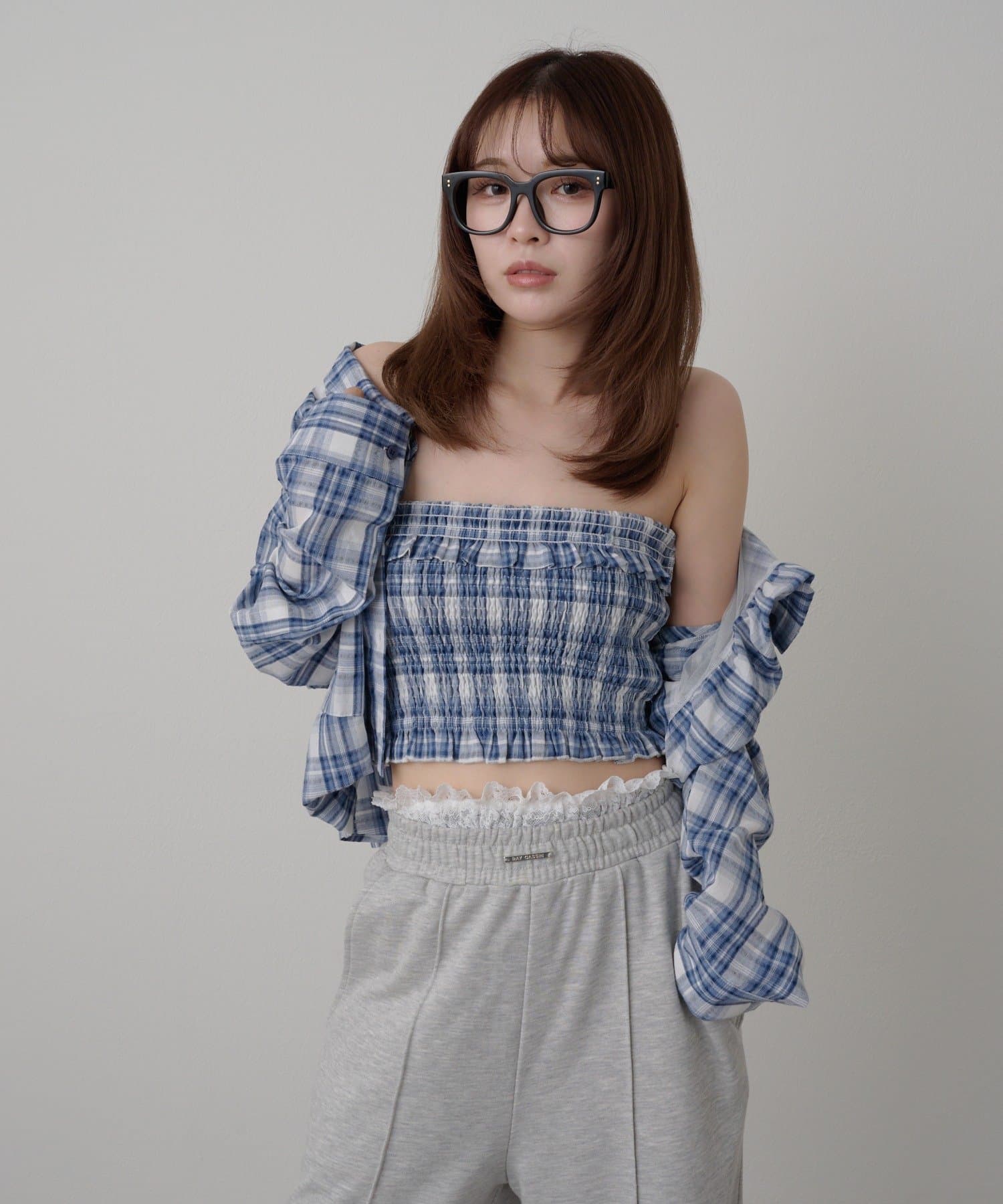 ・伸縮性があり肌にフィットするビスチェがセットのチェックシャツ。