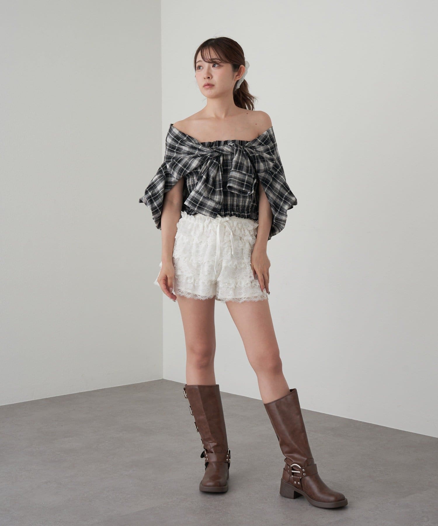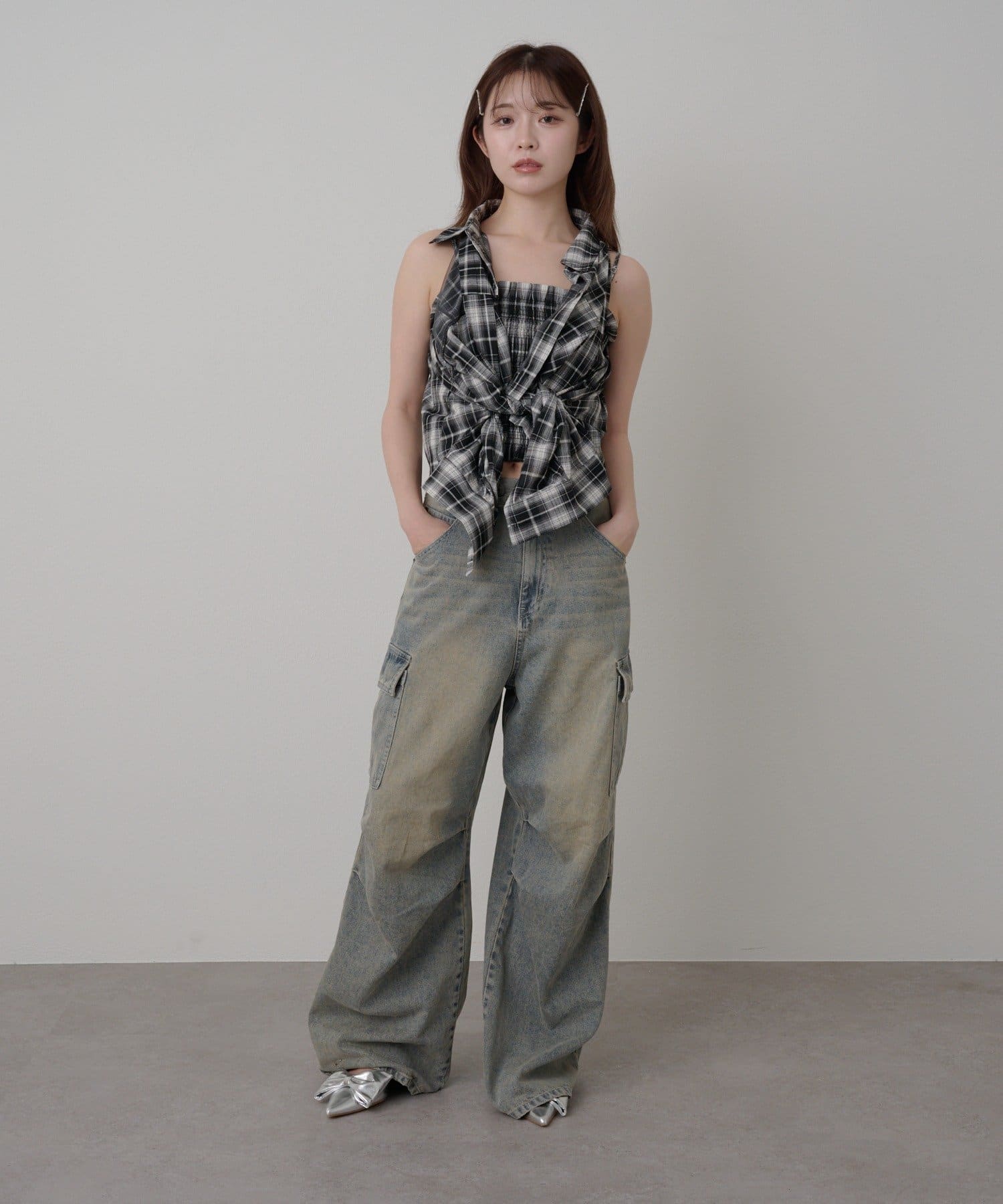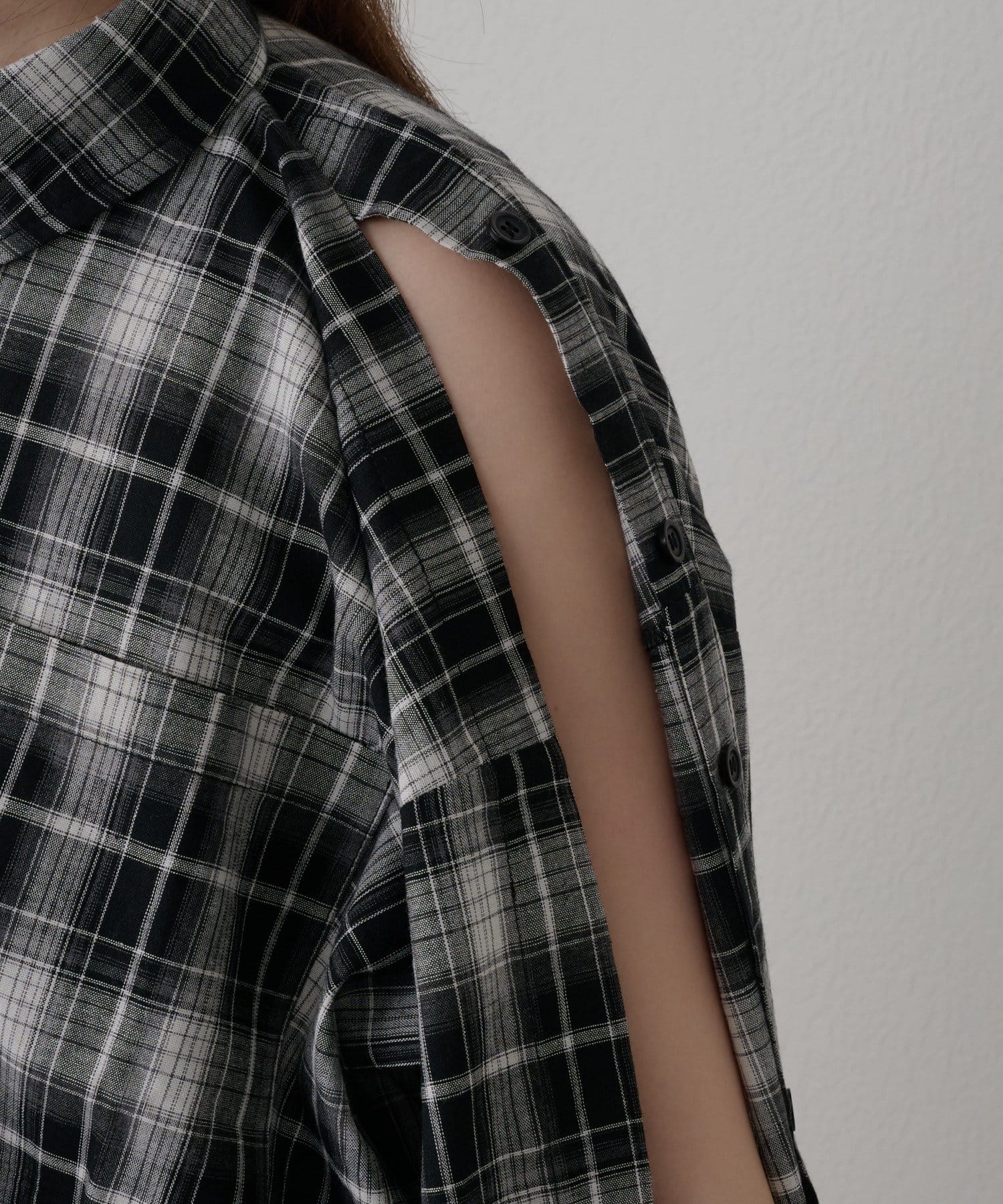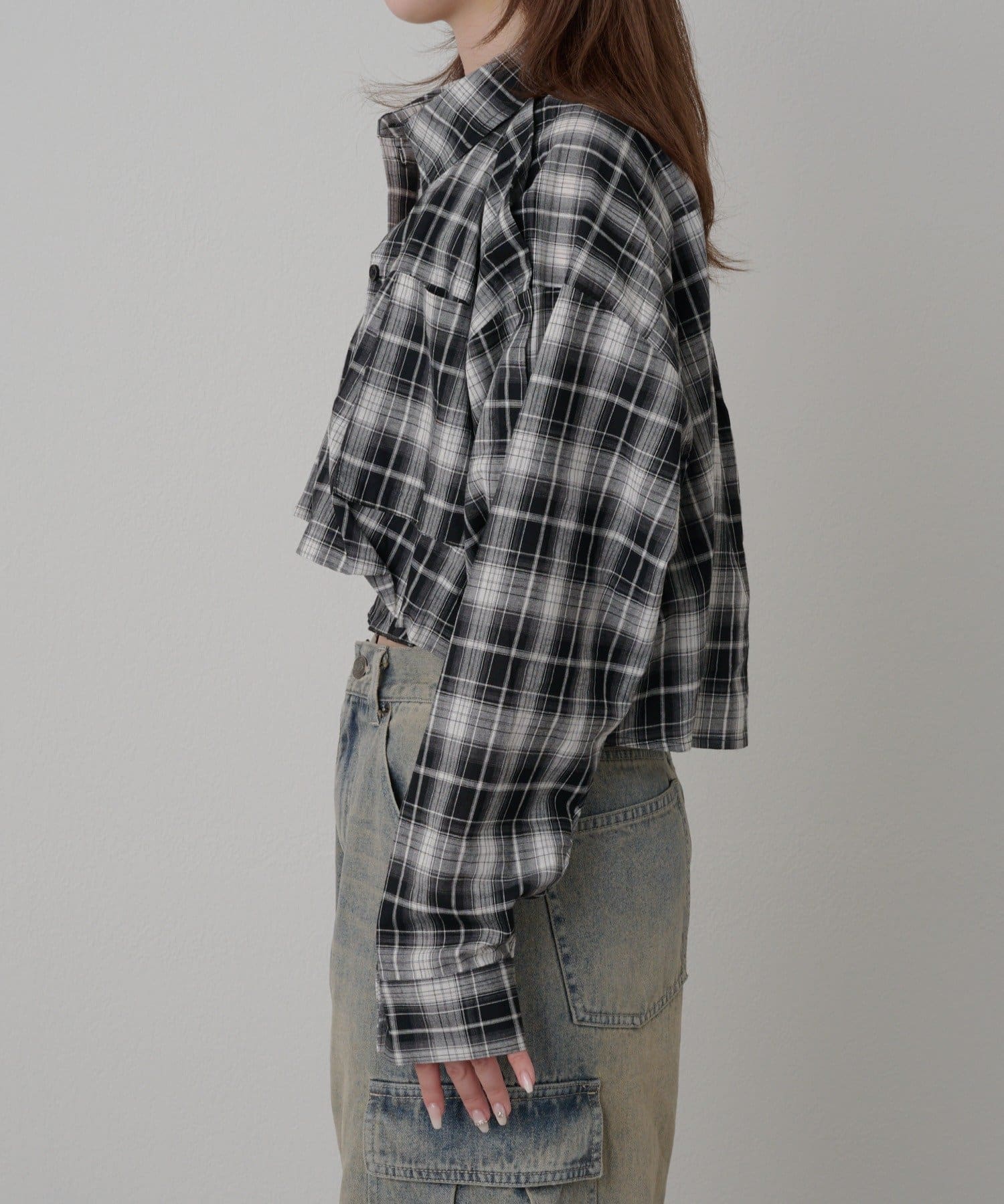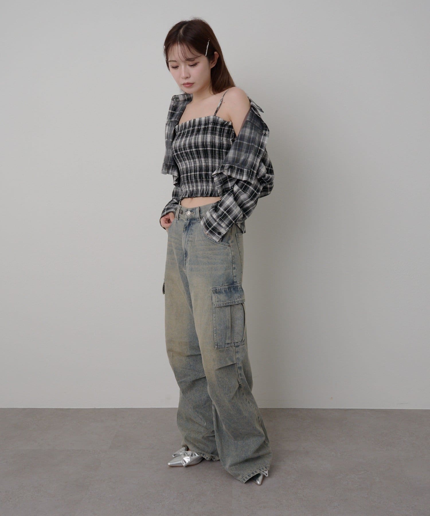 ・伸縮性があり肌にフィットするビスチェがセットのチェックシャツ。