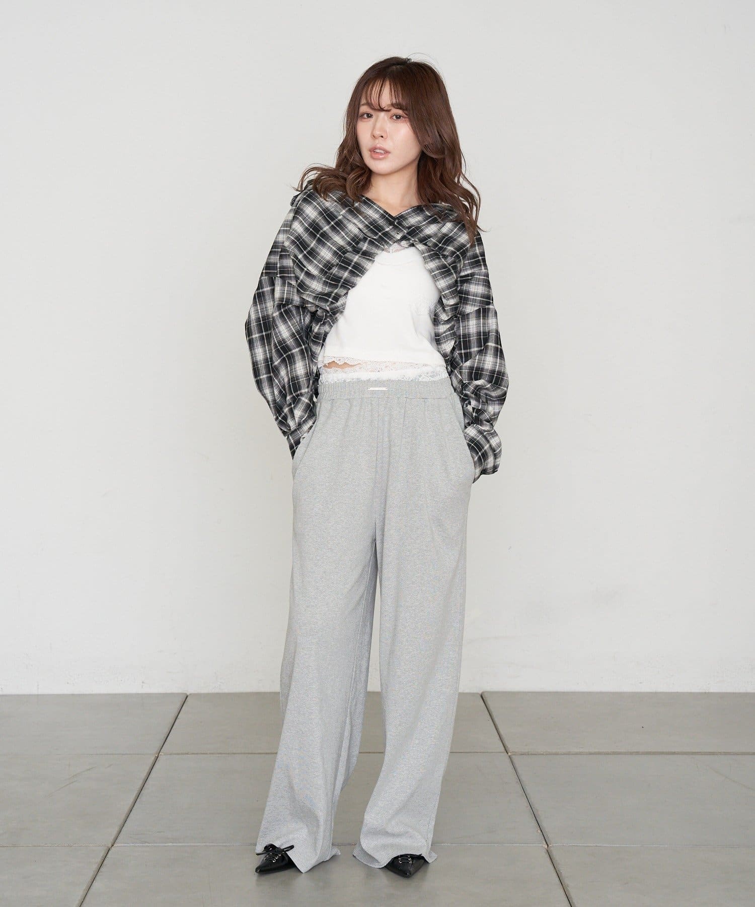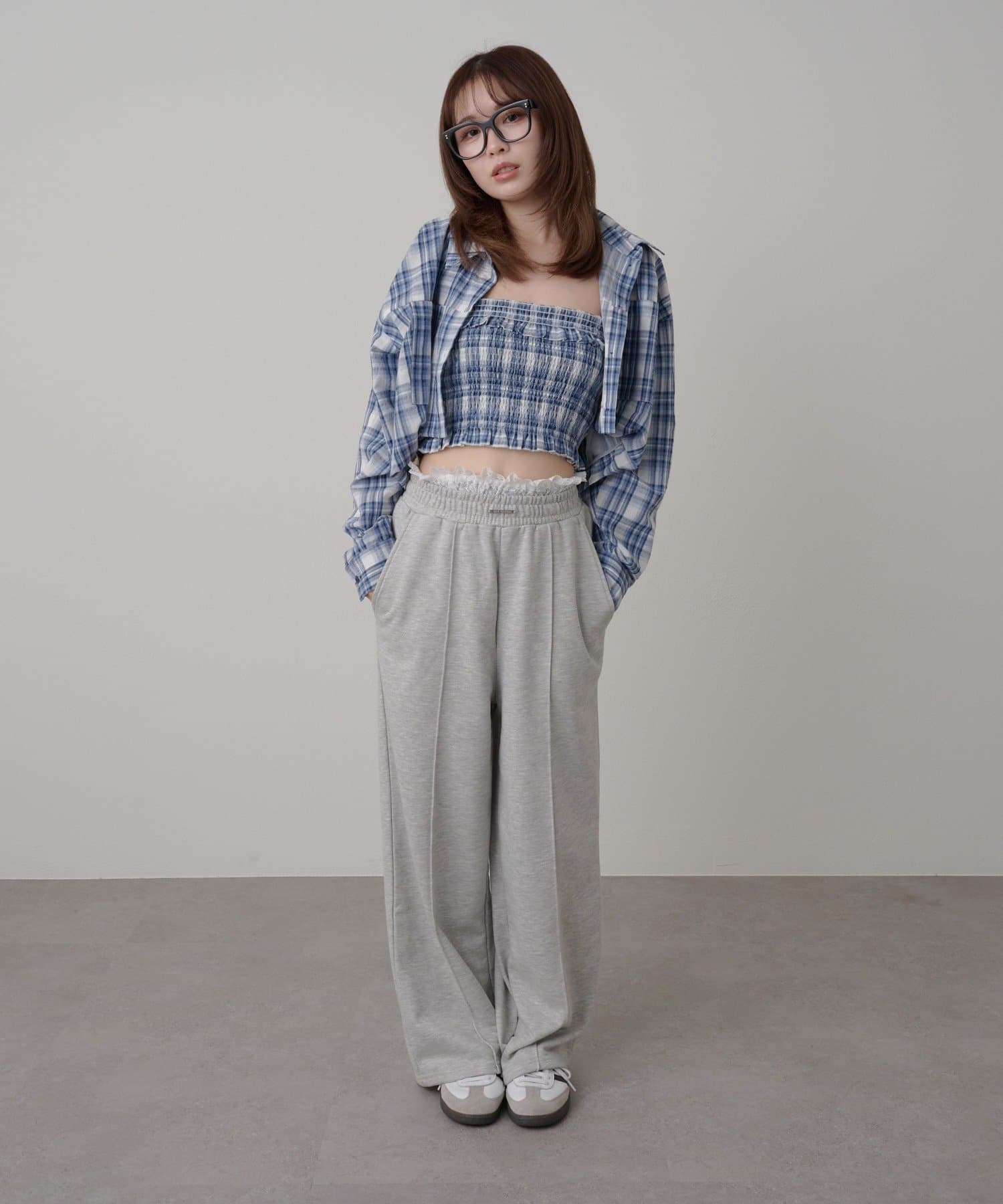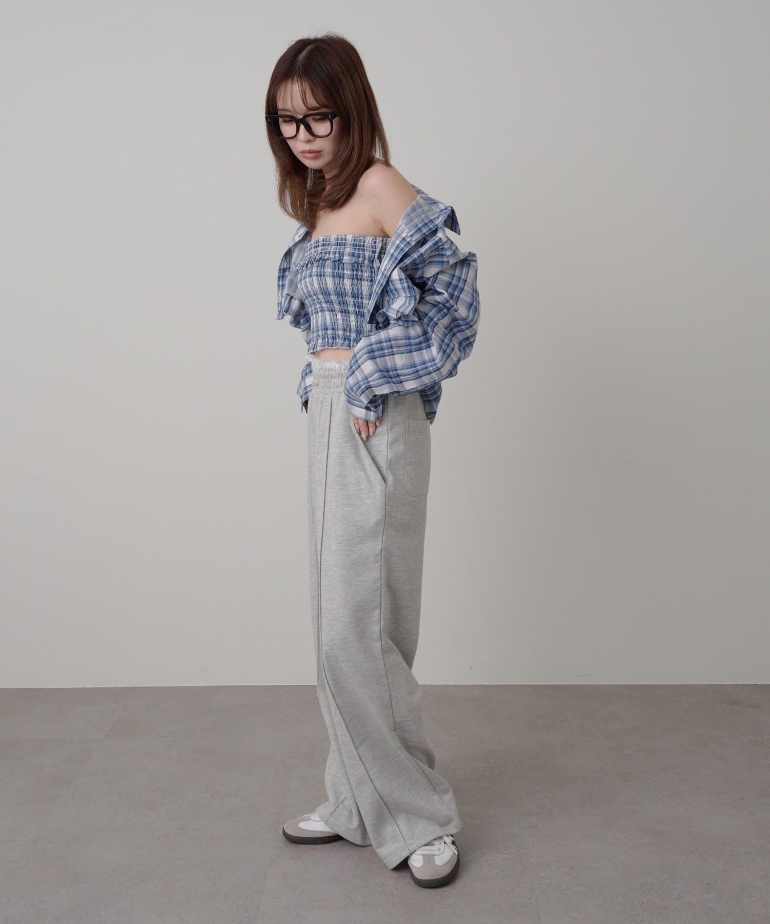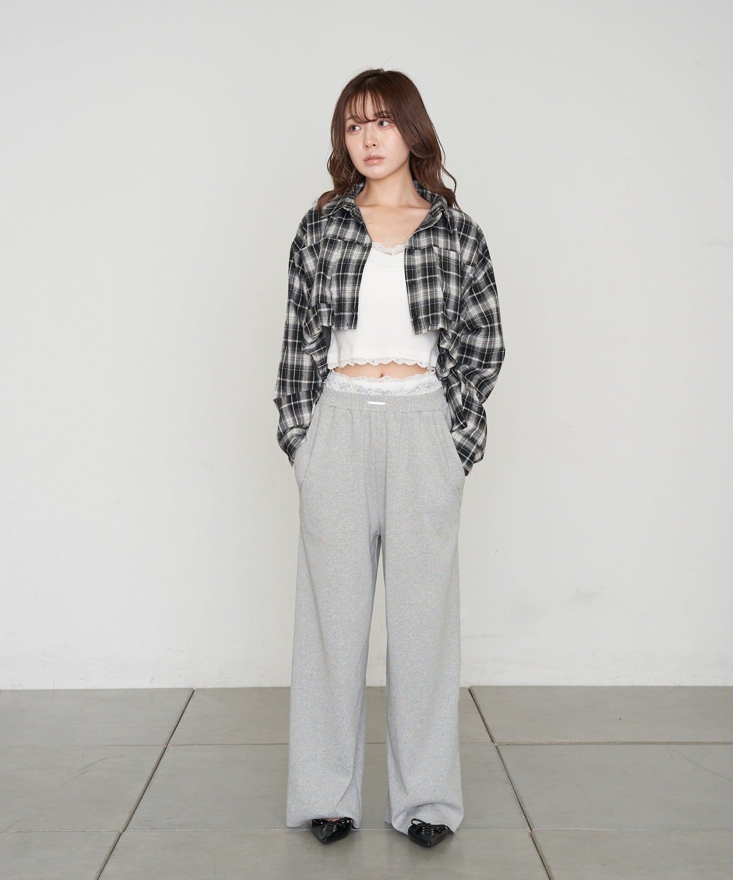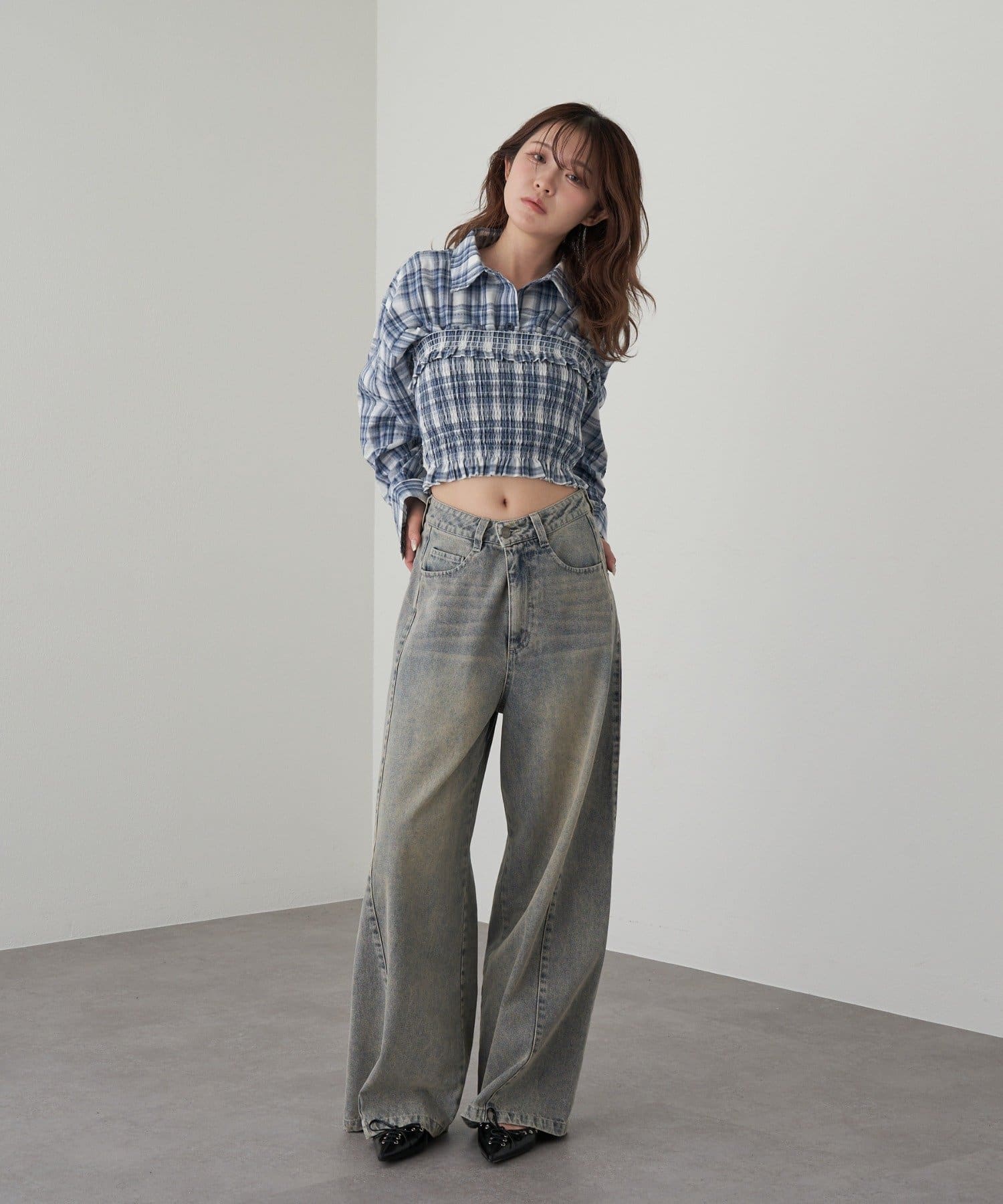 ・伸縮性があり肌にフィットするビスチェがセットのチェックシャツ。
