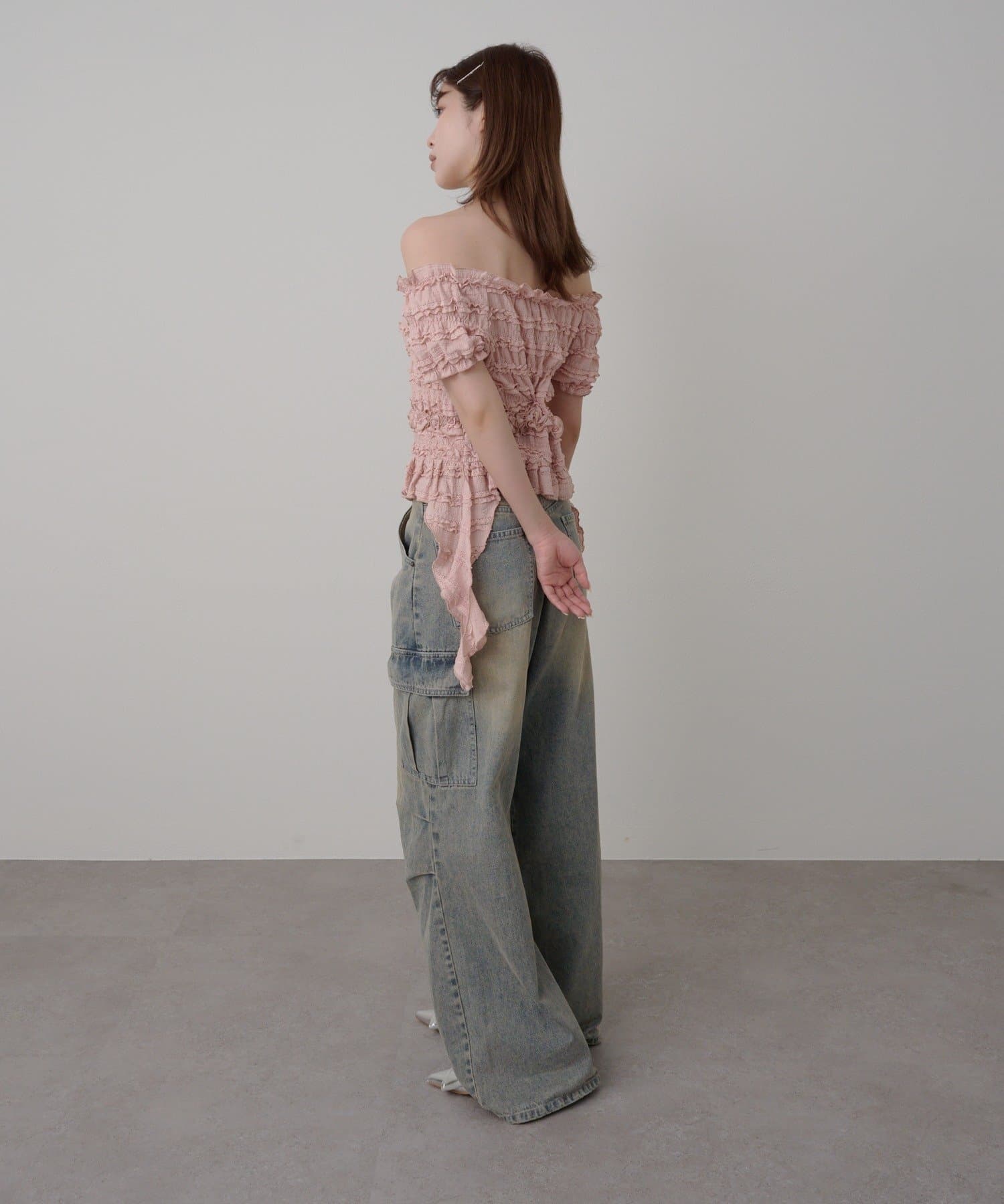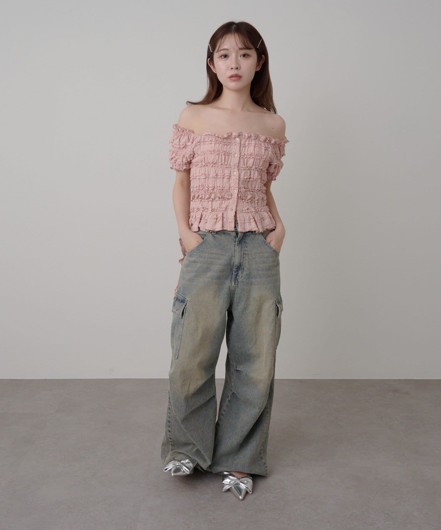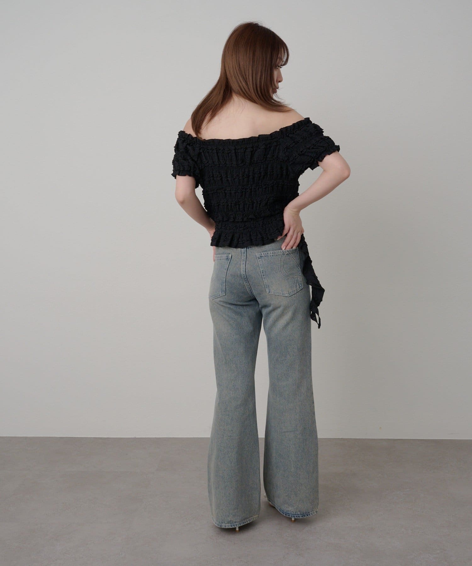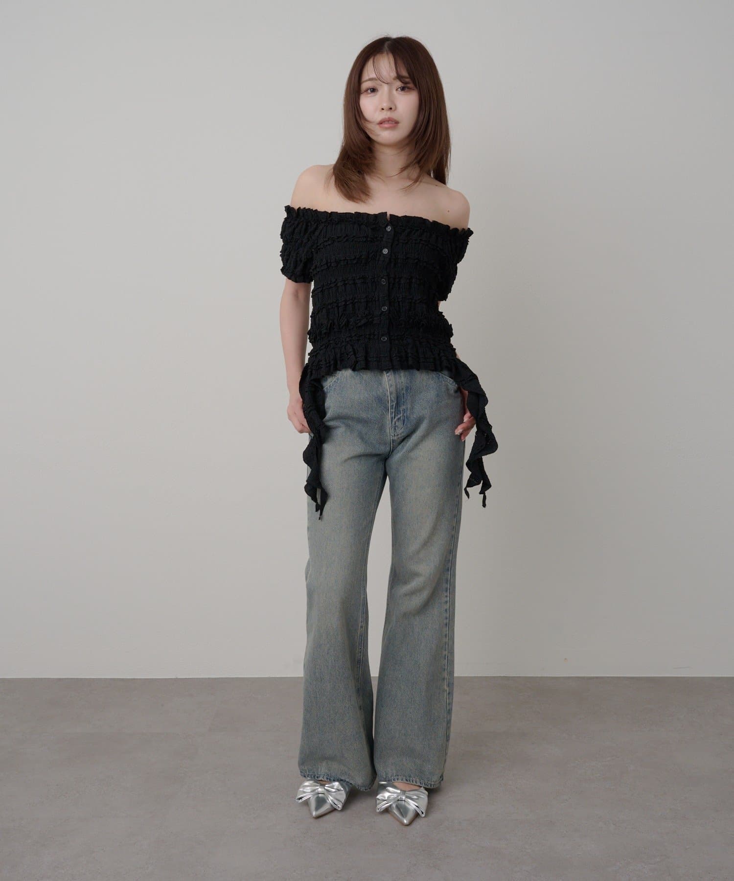 ・女性らしいオフショルスタイルとデニムの相性は抜群◎