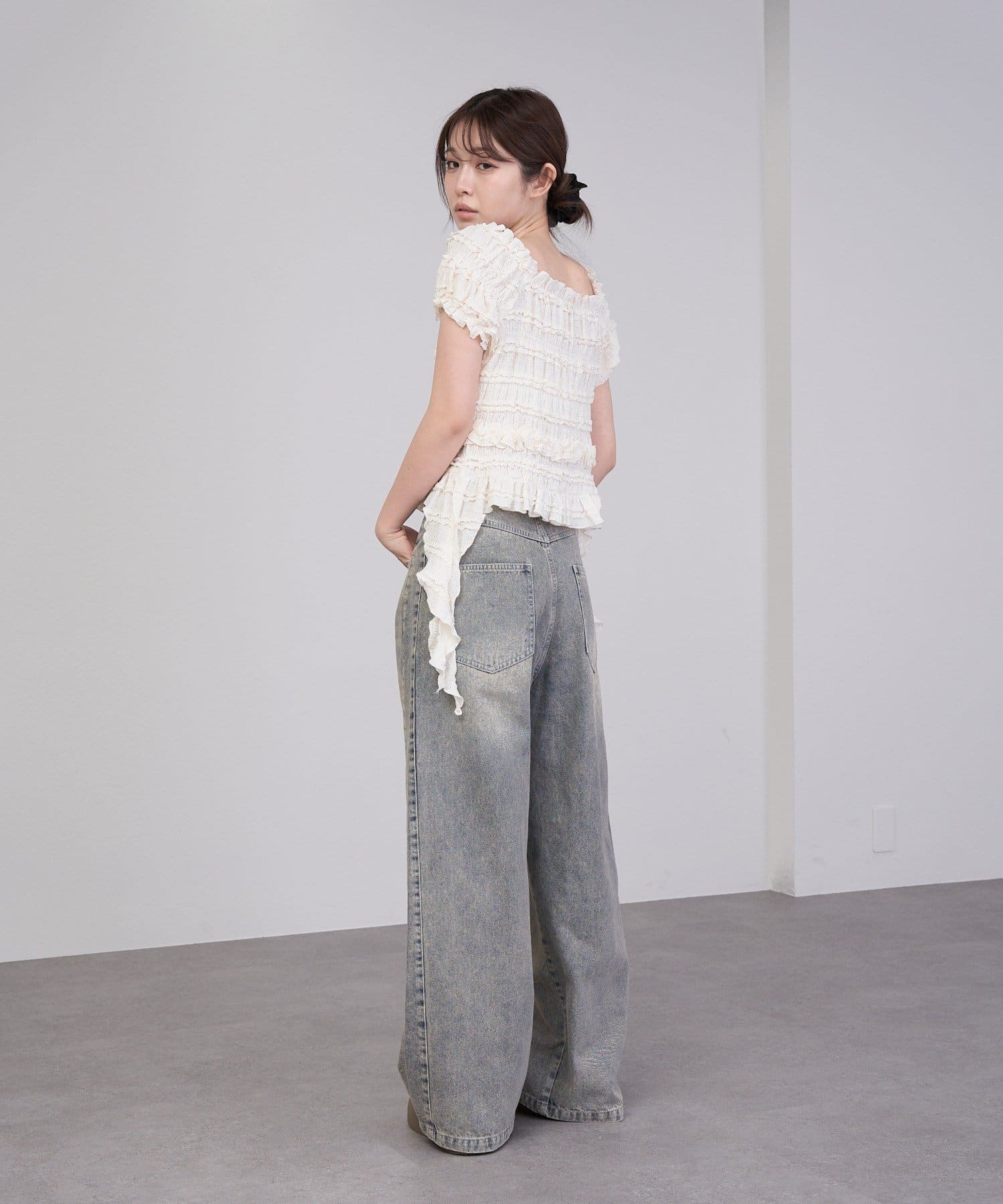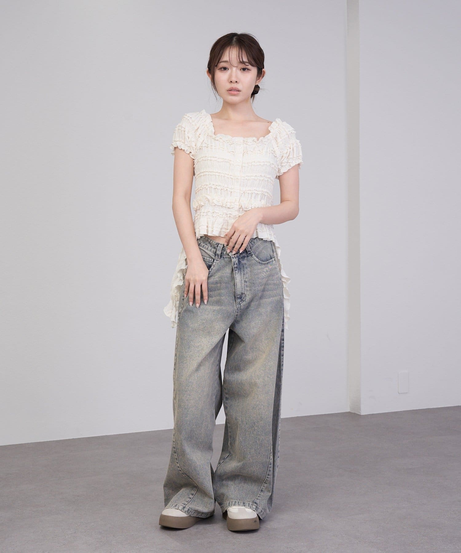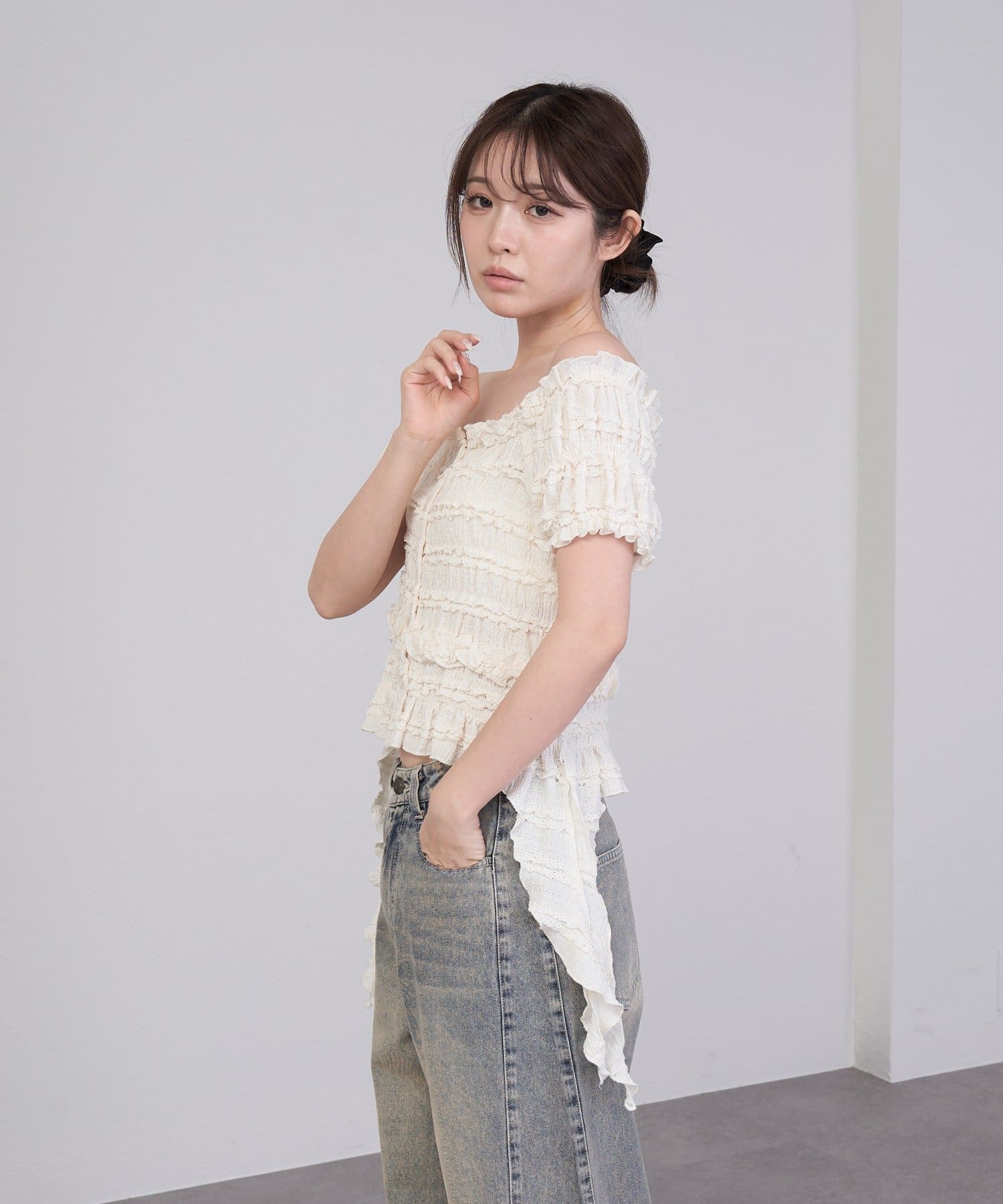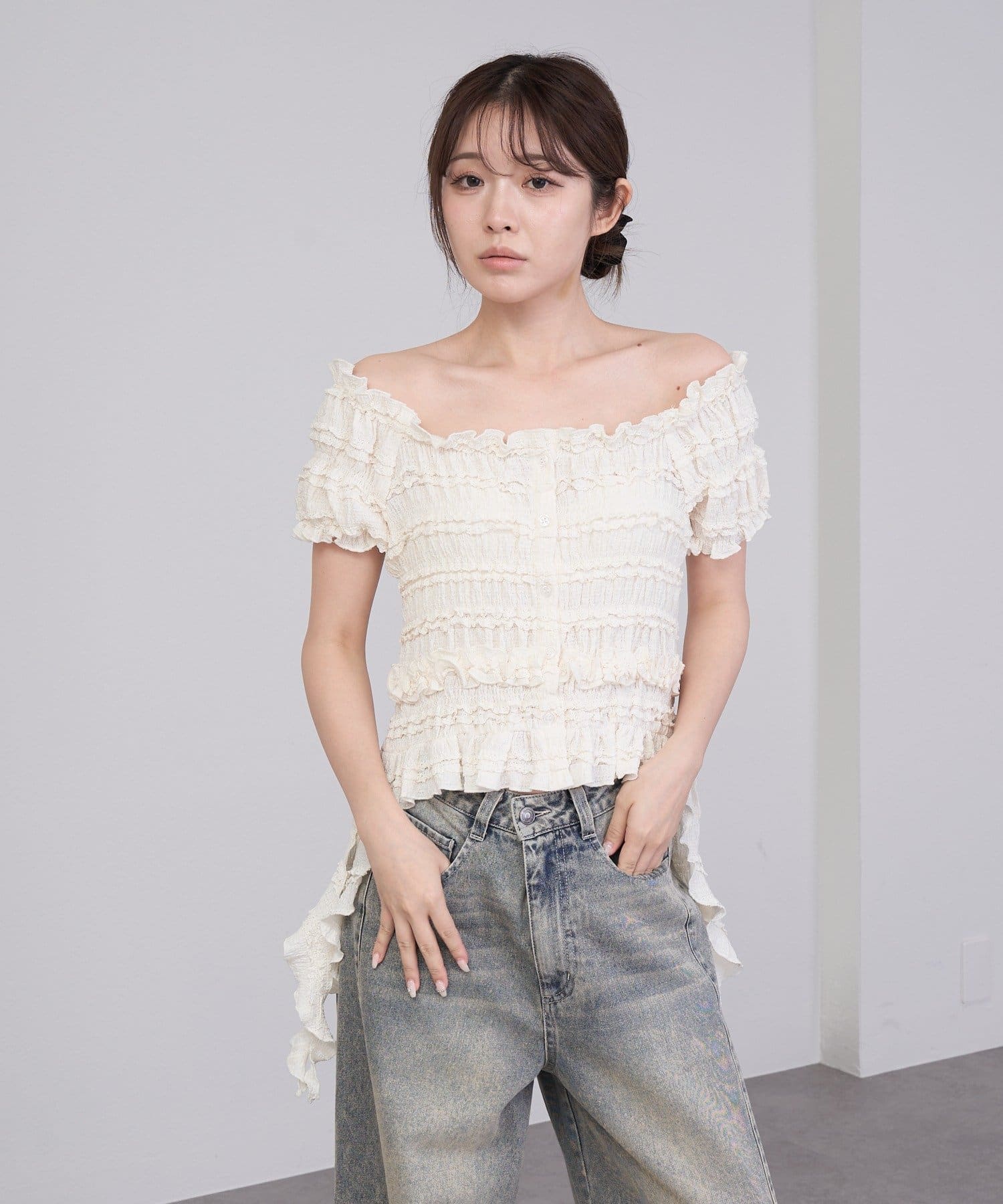 ・女性らしいオフショルスタイルとデニムの相性は抜群◎