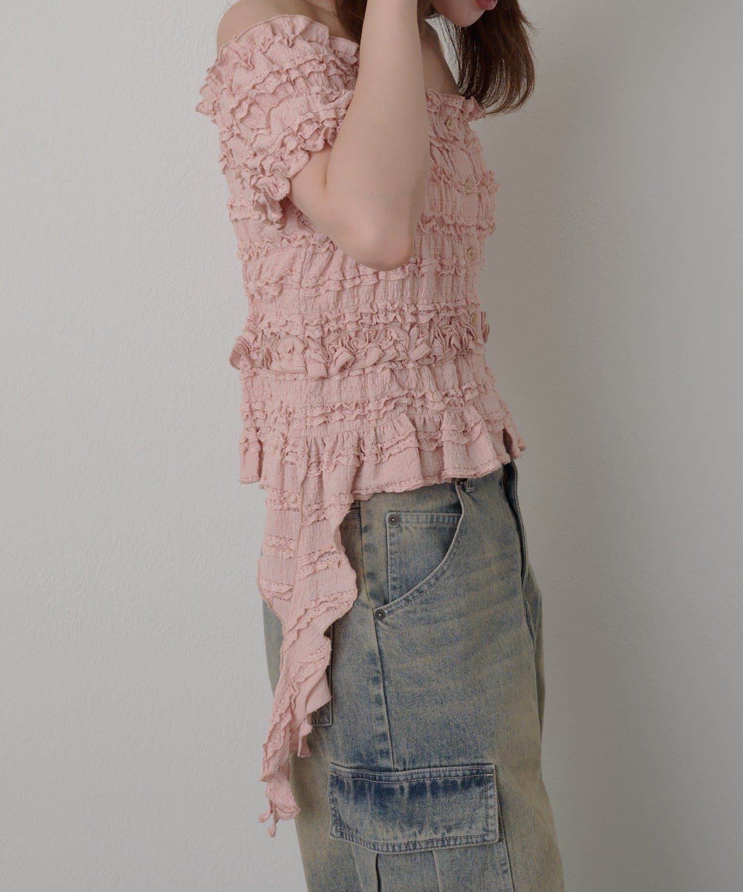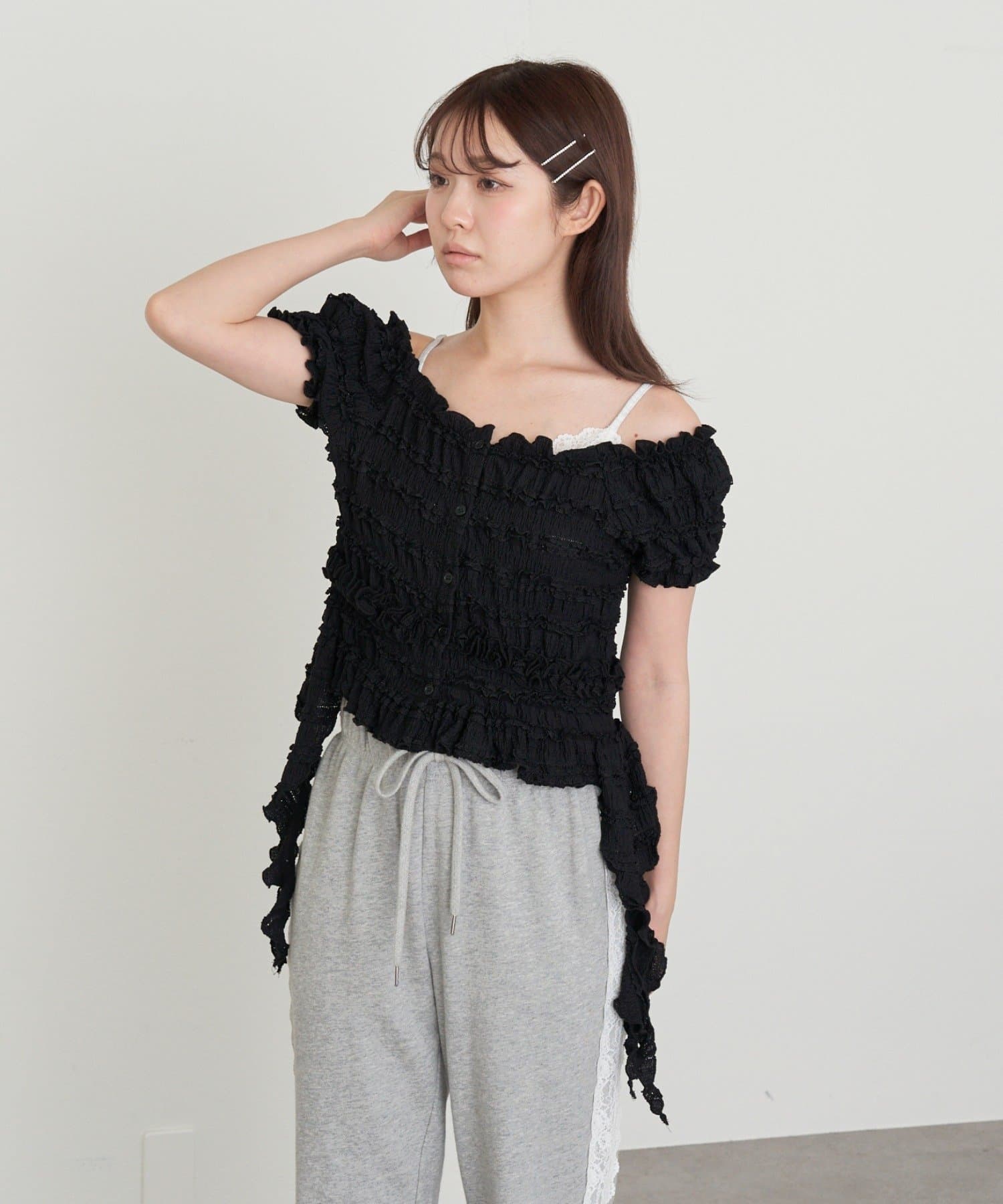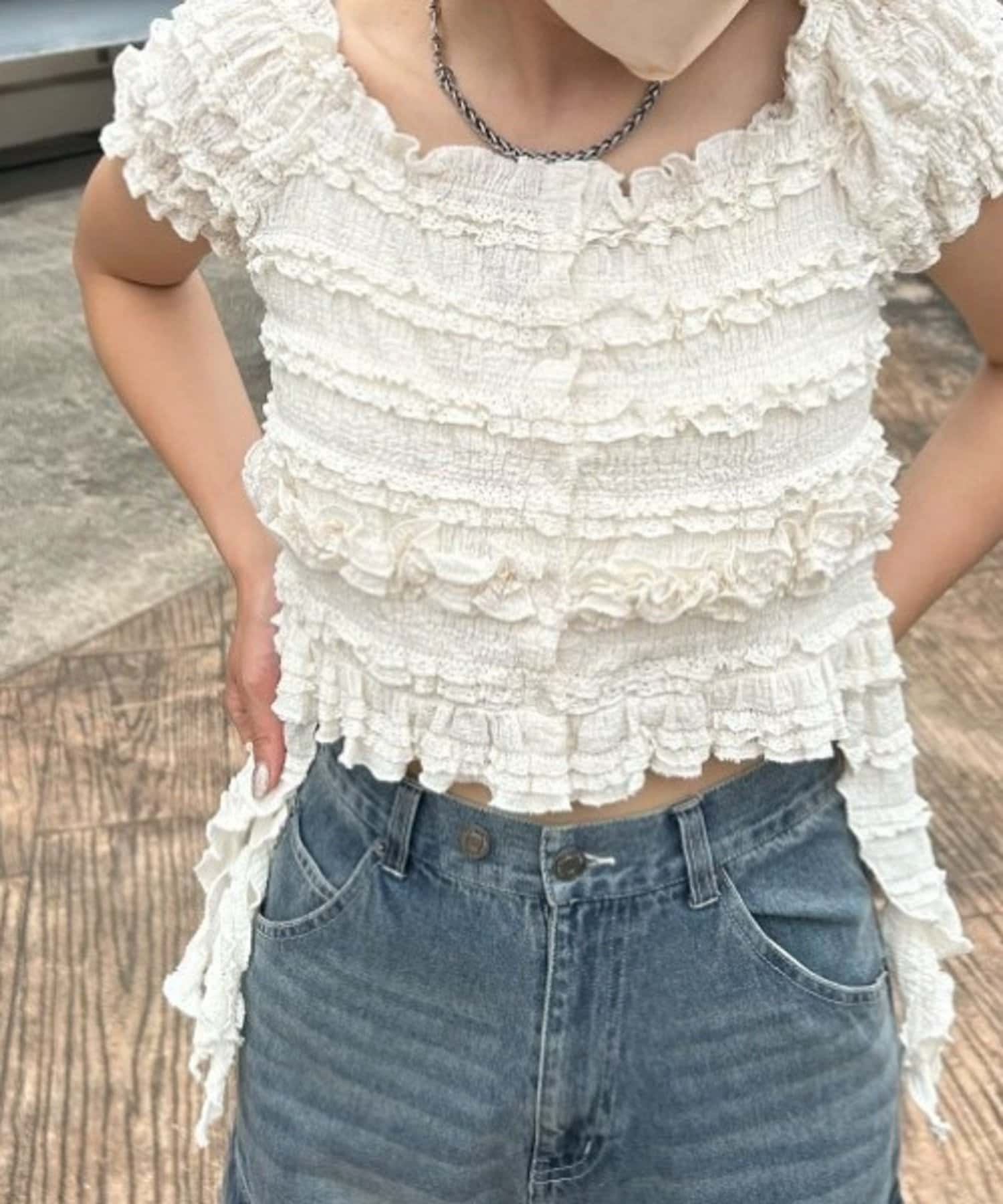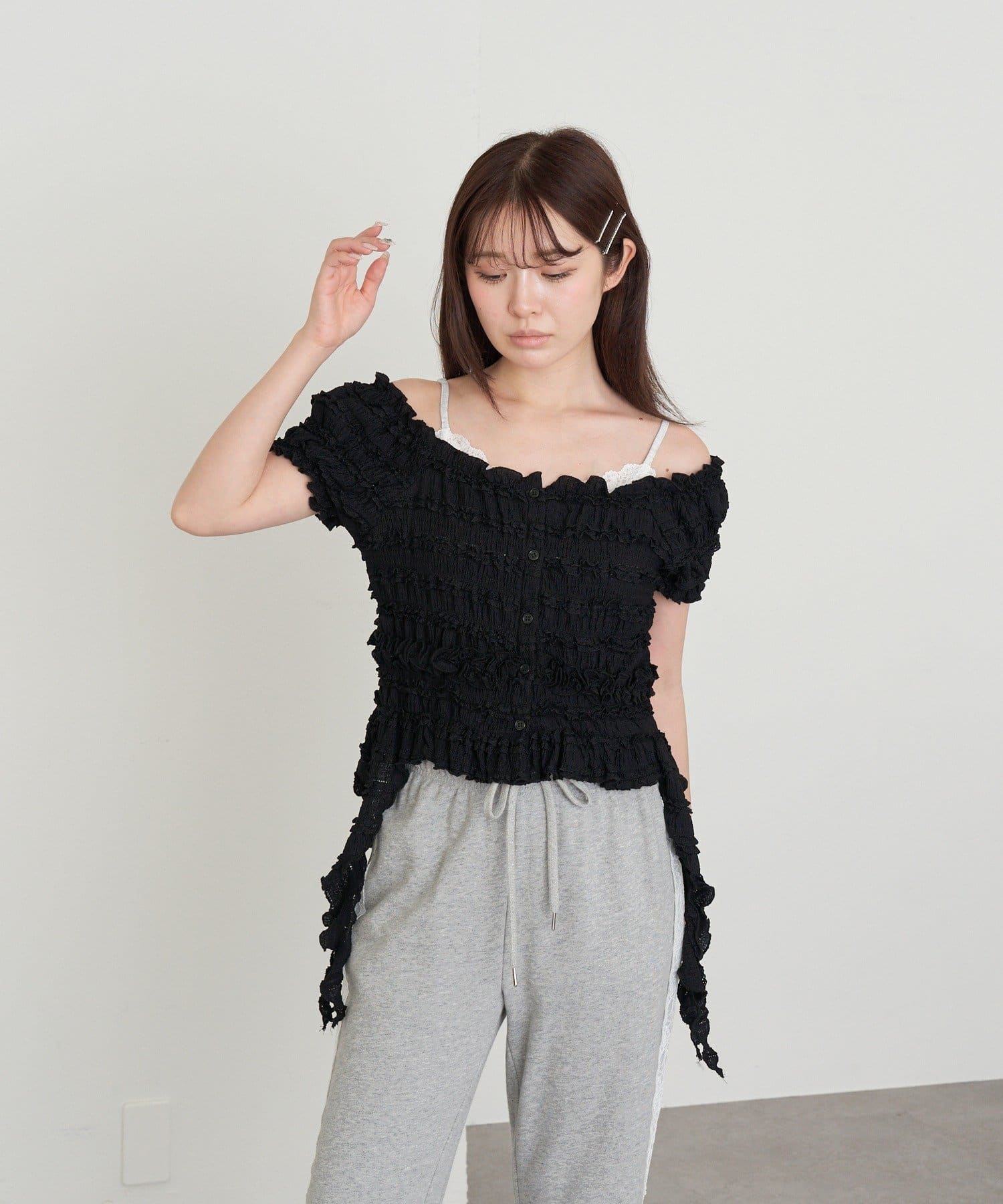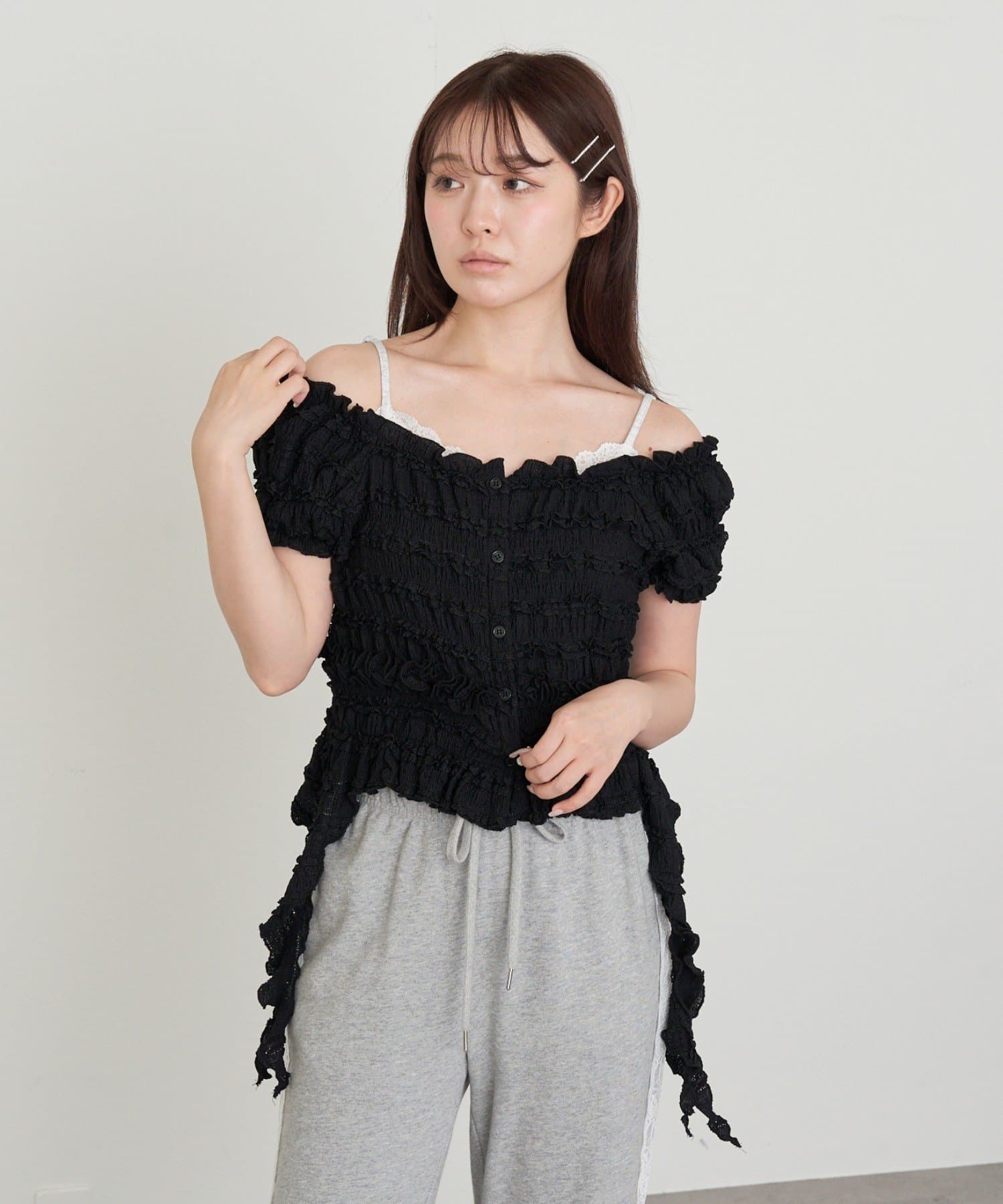 ・サイドのフリルが縦のシルエットを強調し、スタイルアップが叶います。
