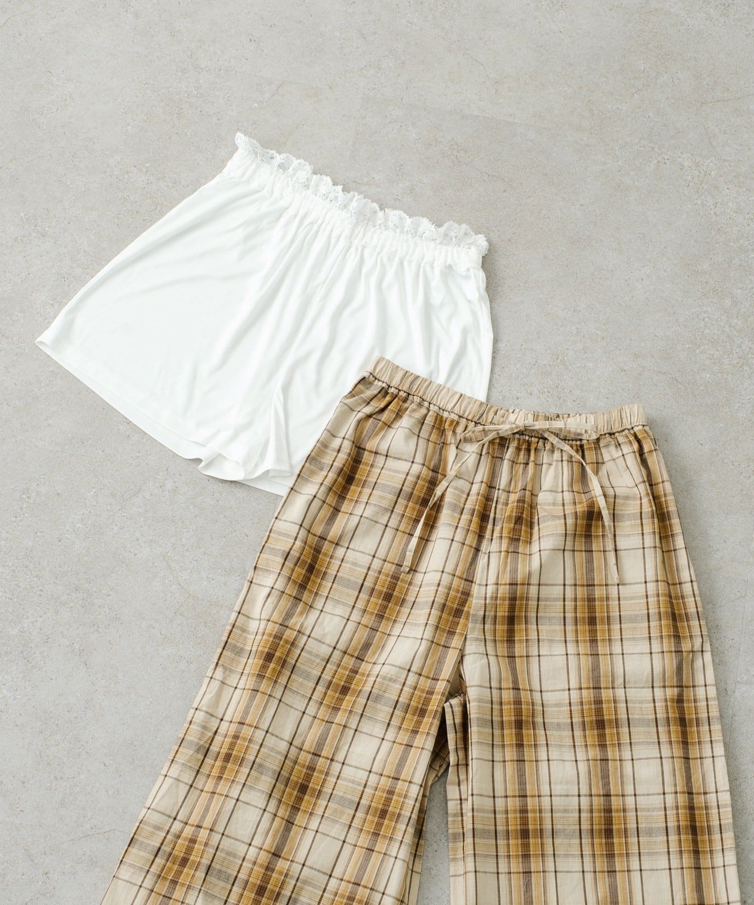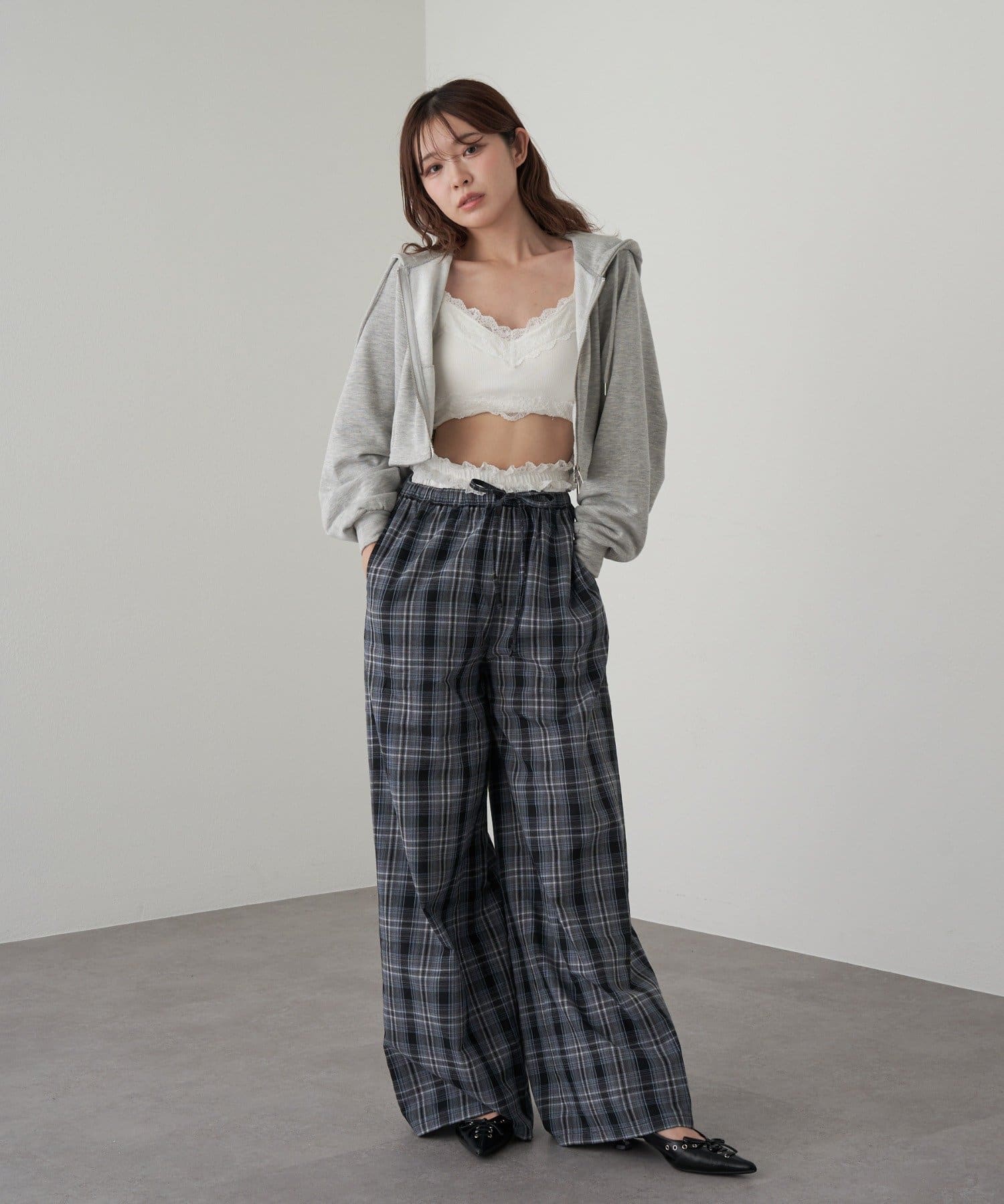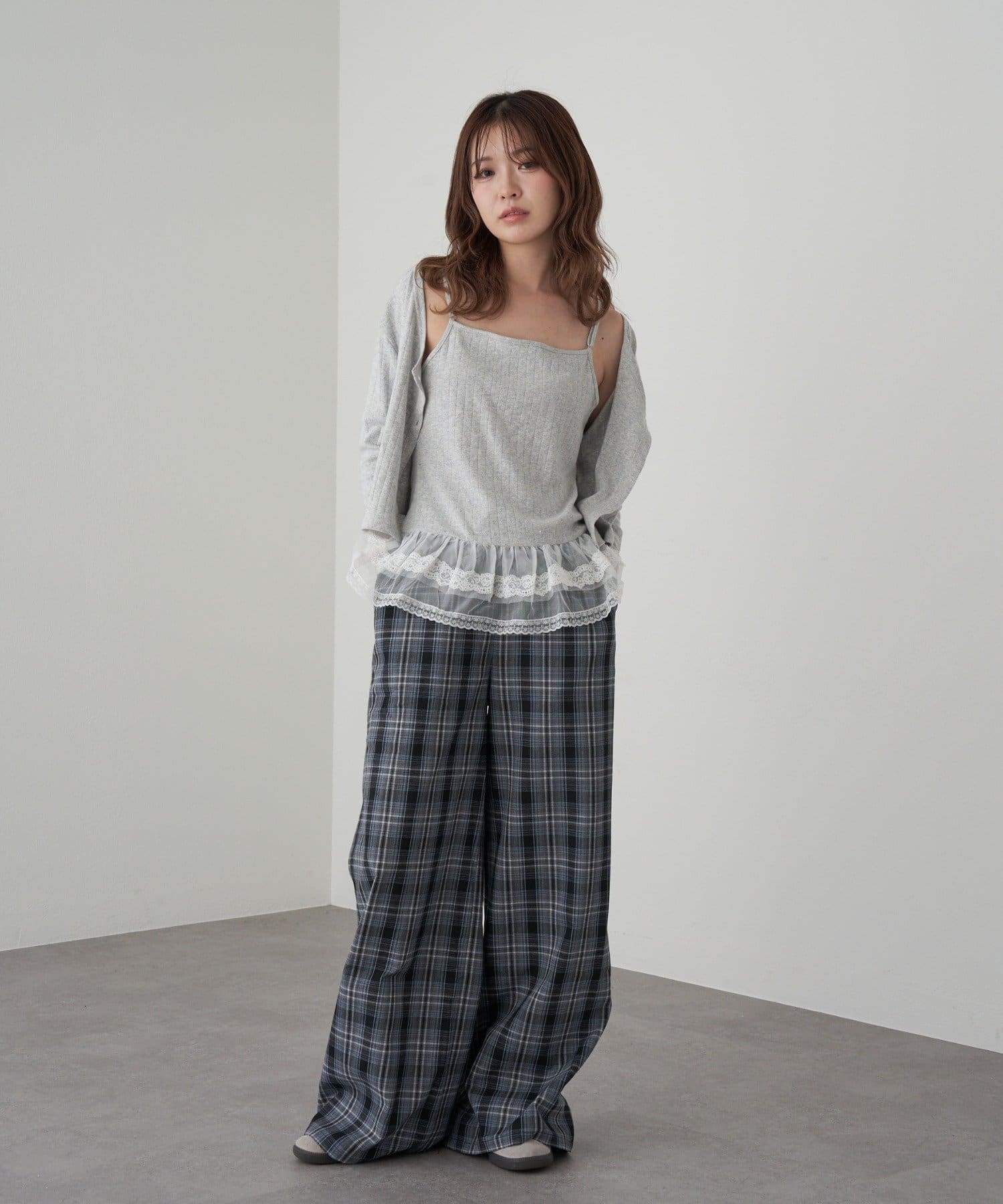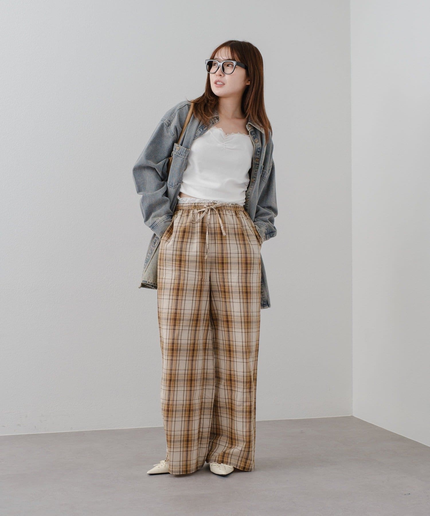 ・同柄のチェックキャミと合わせてセットアップでも着用可能です。