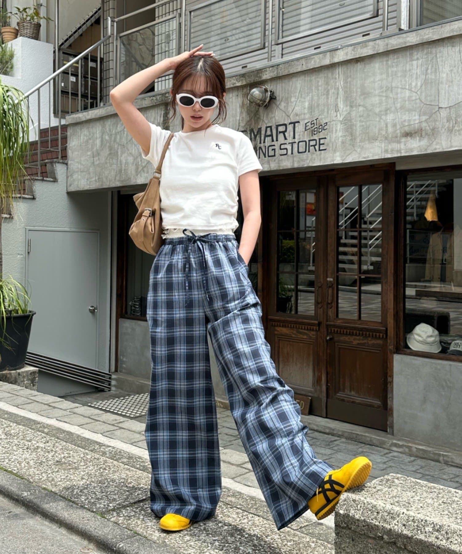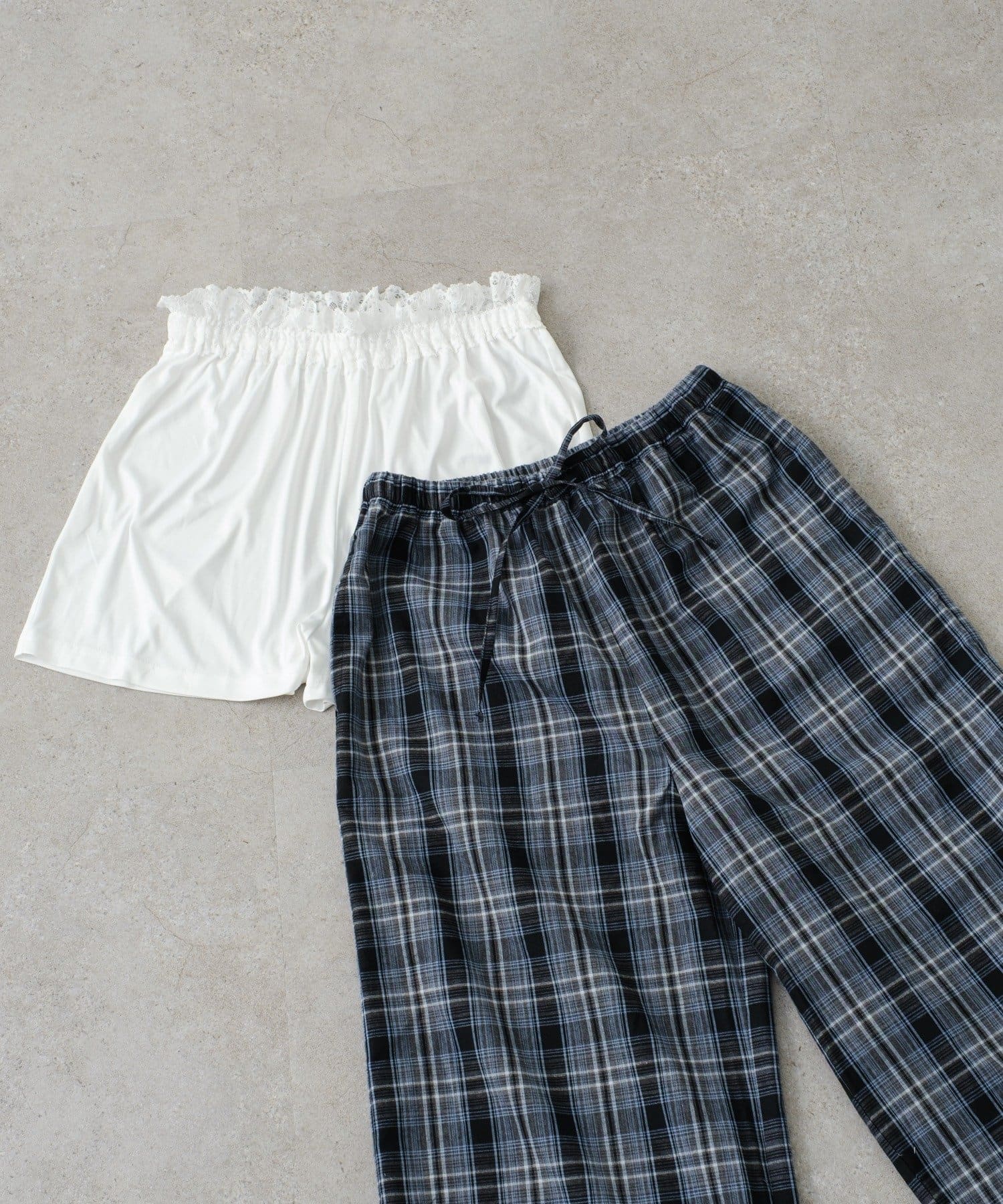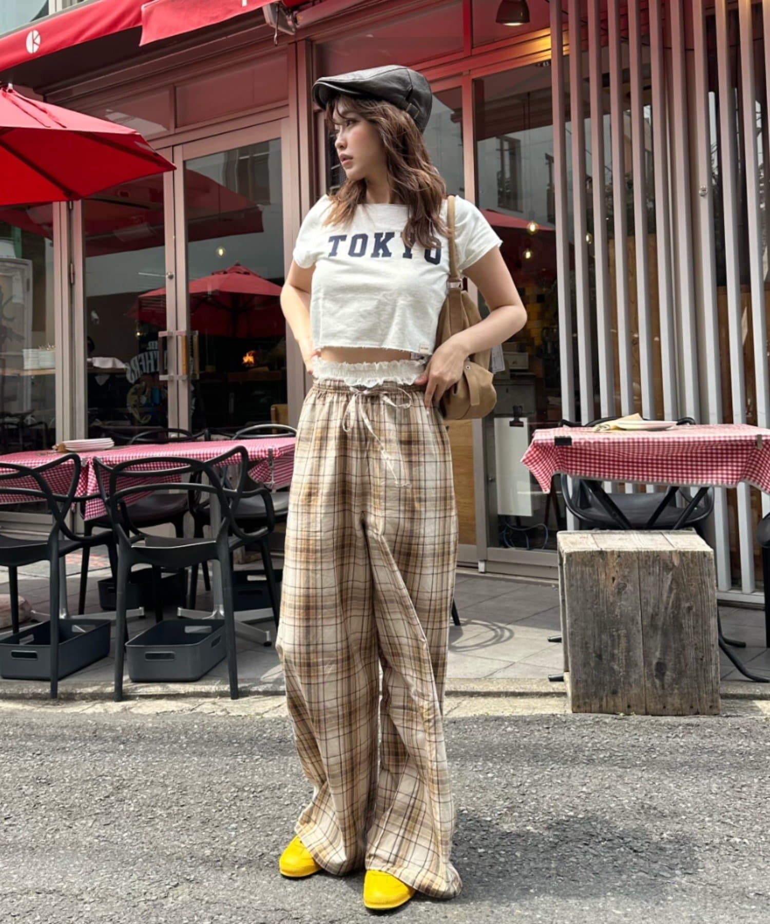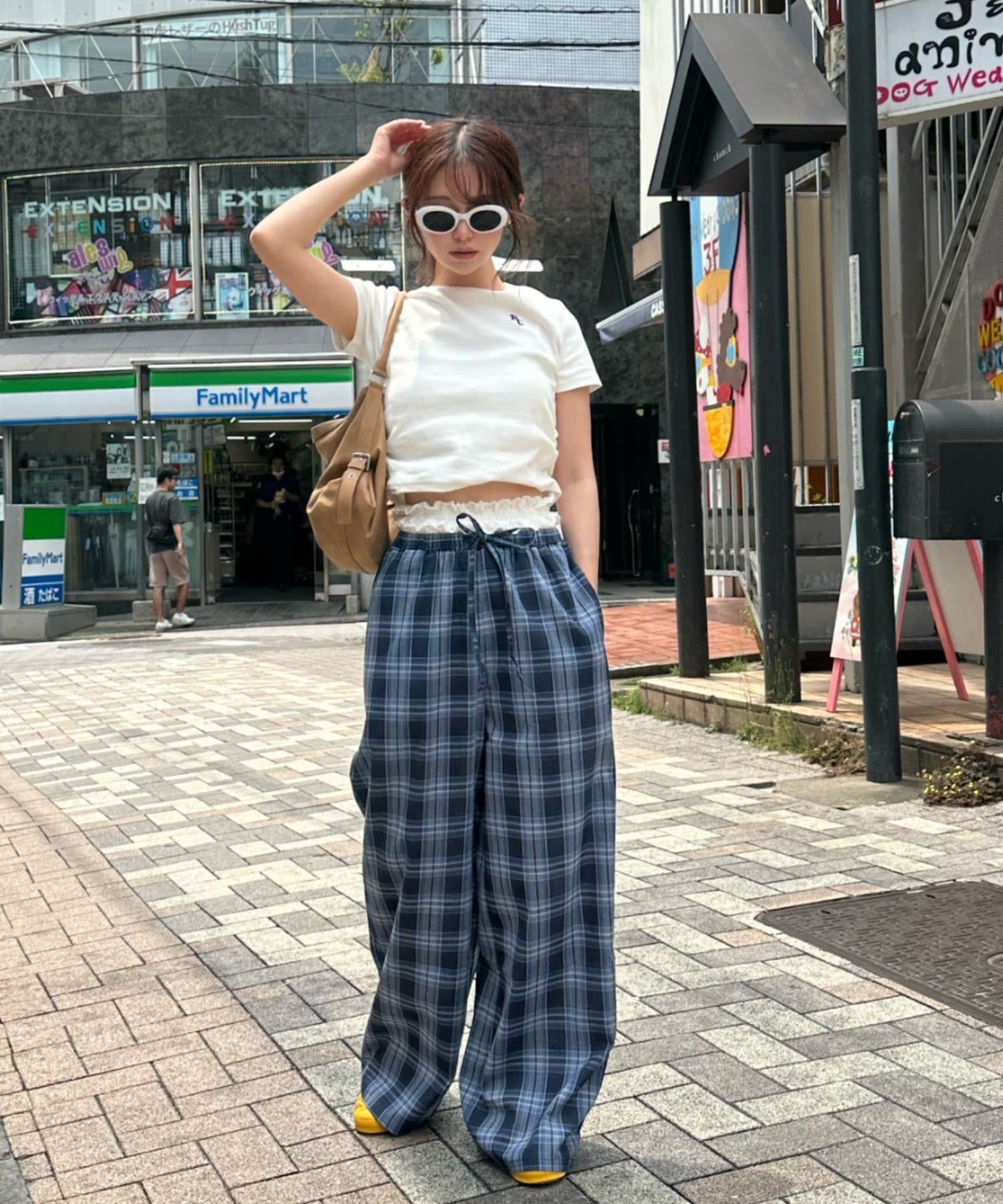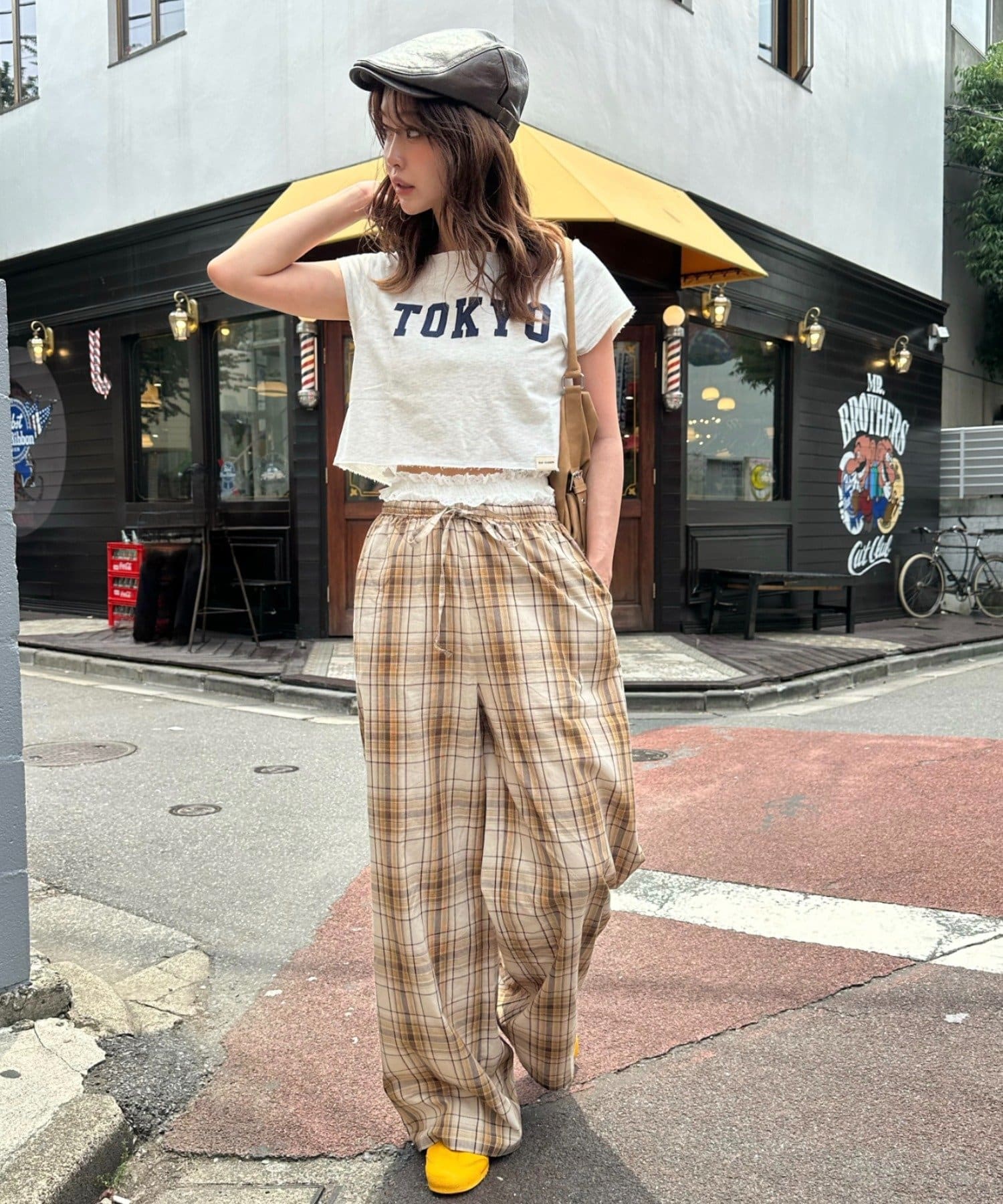 ・同柄のチェックキャミと合わせてセットアップでも着用可能です。