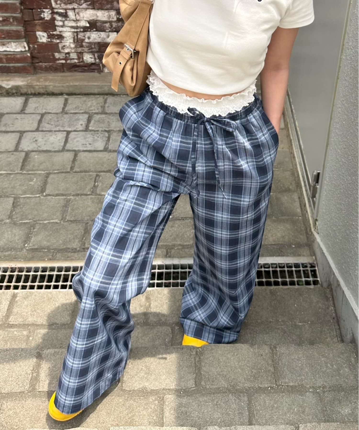 【RAY CASSIN】レイヤードチェックルーズパンツ