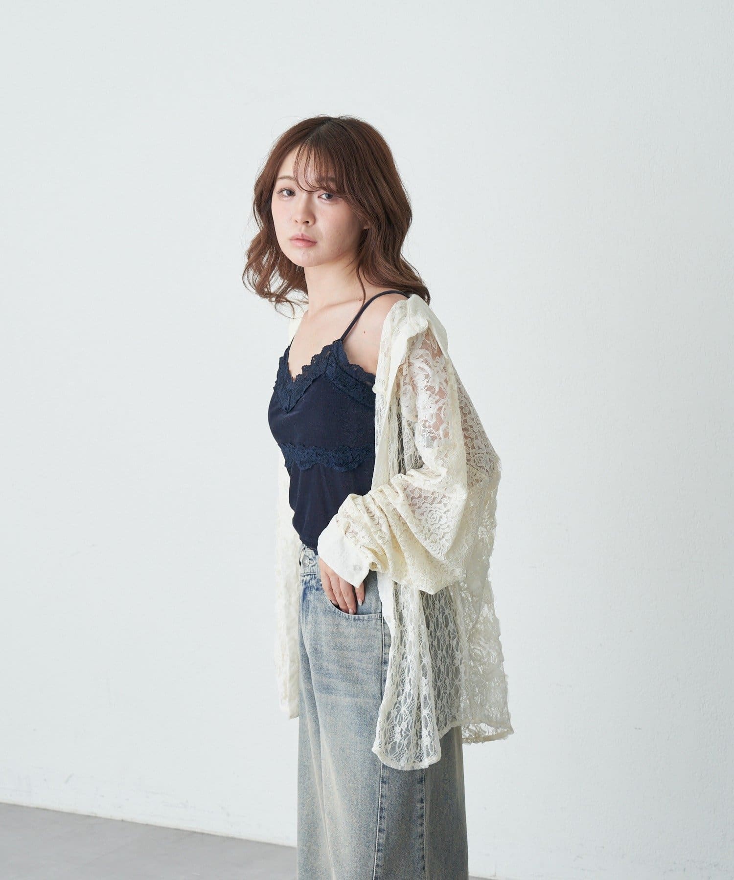 レースで透け感があるので夏の羽織にも長く着ていただけます。