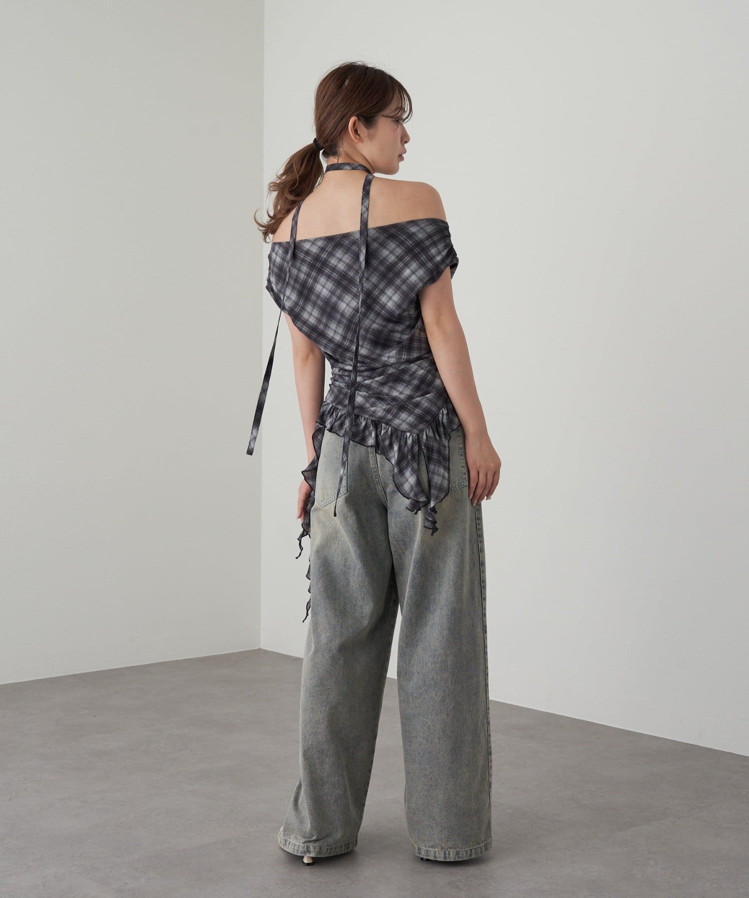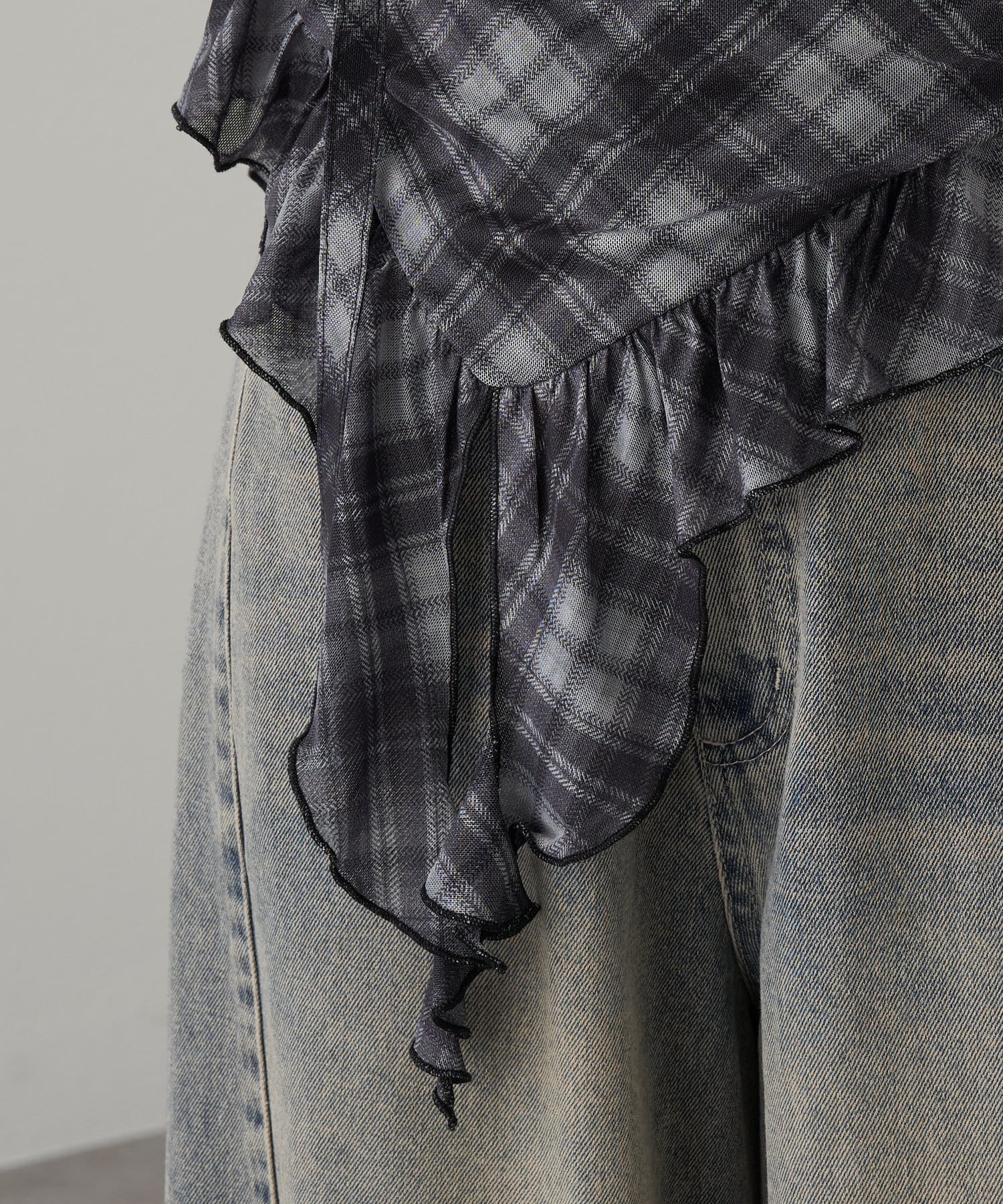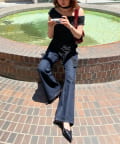 :【ウエスト調整可】サイド切替ワイドデニムパンツ