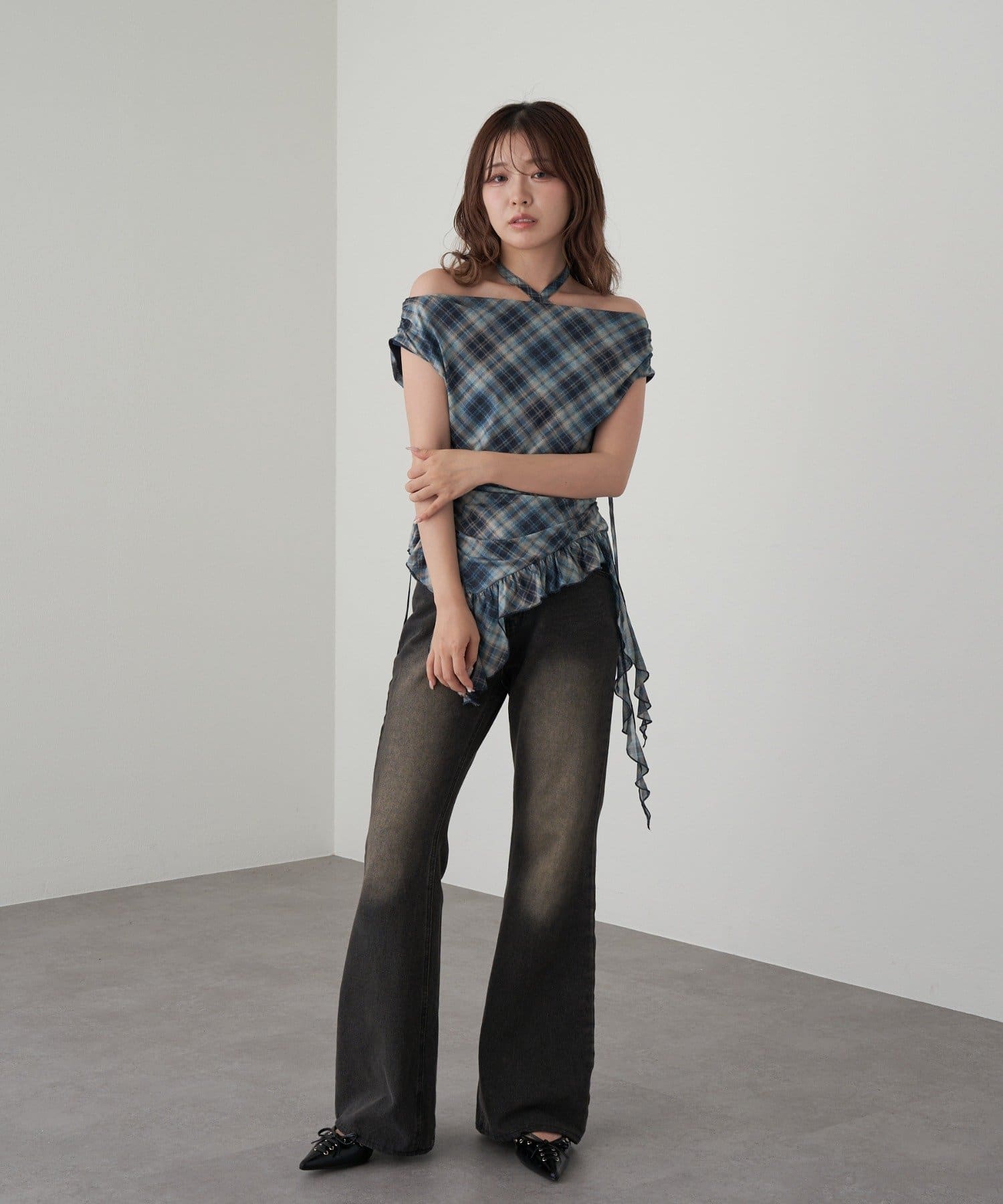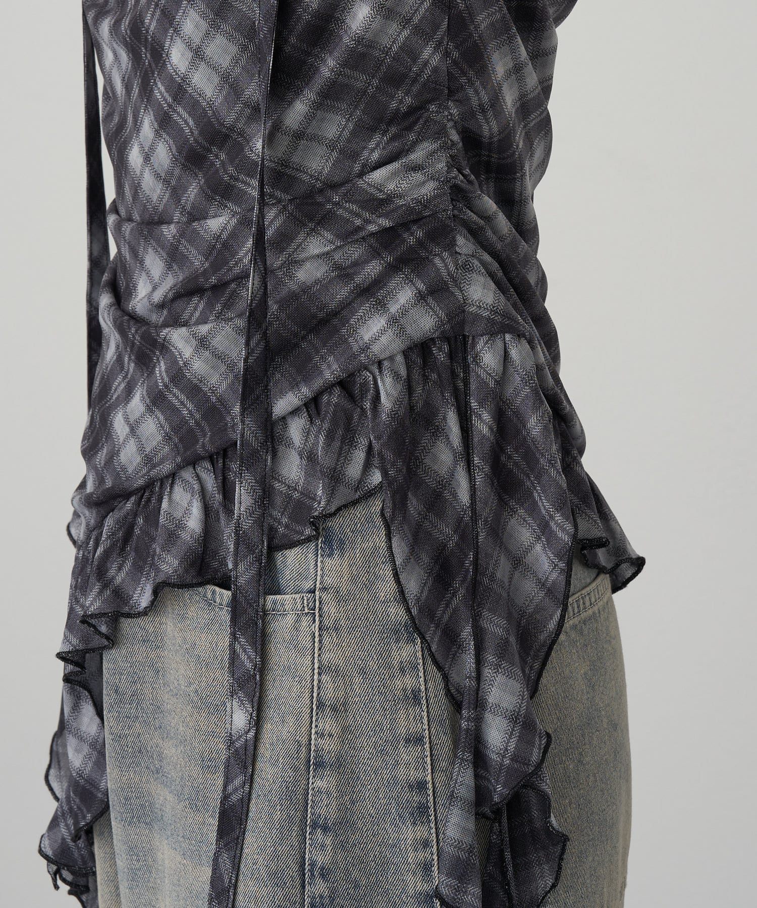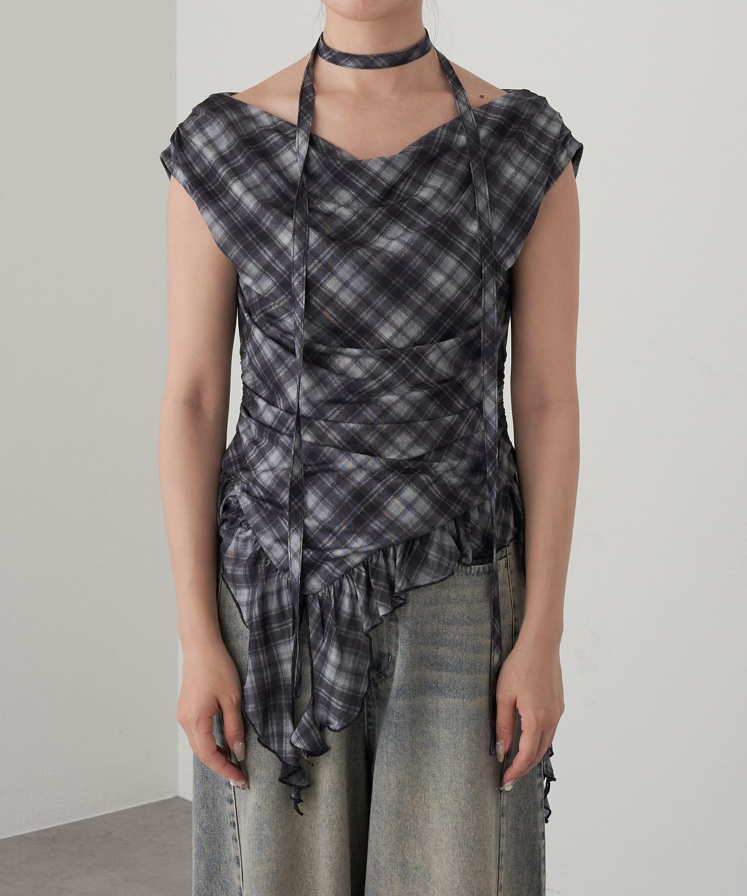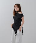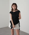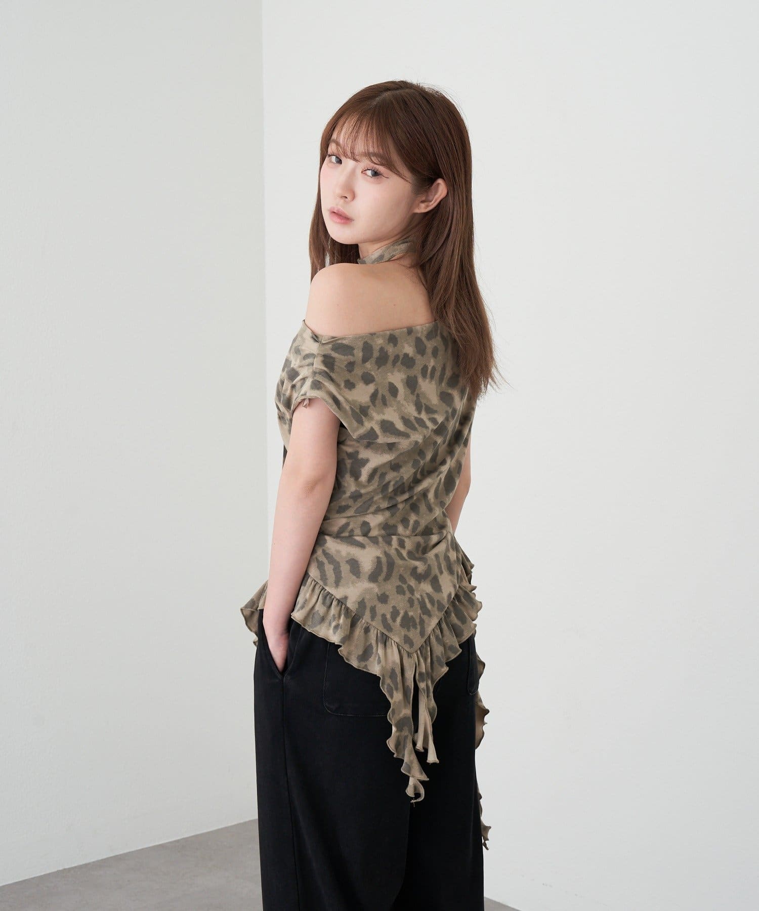【二の腕カバーにも◎/マルチウェイ/チョーカー付き】裾フリルドロストTシャツ