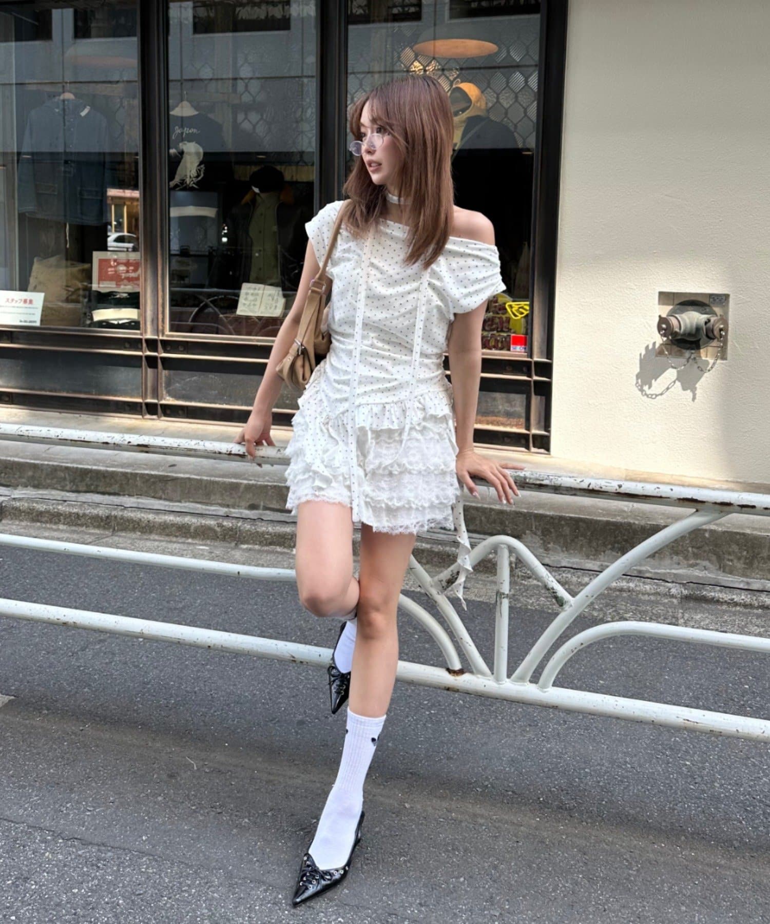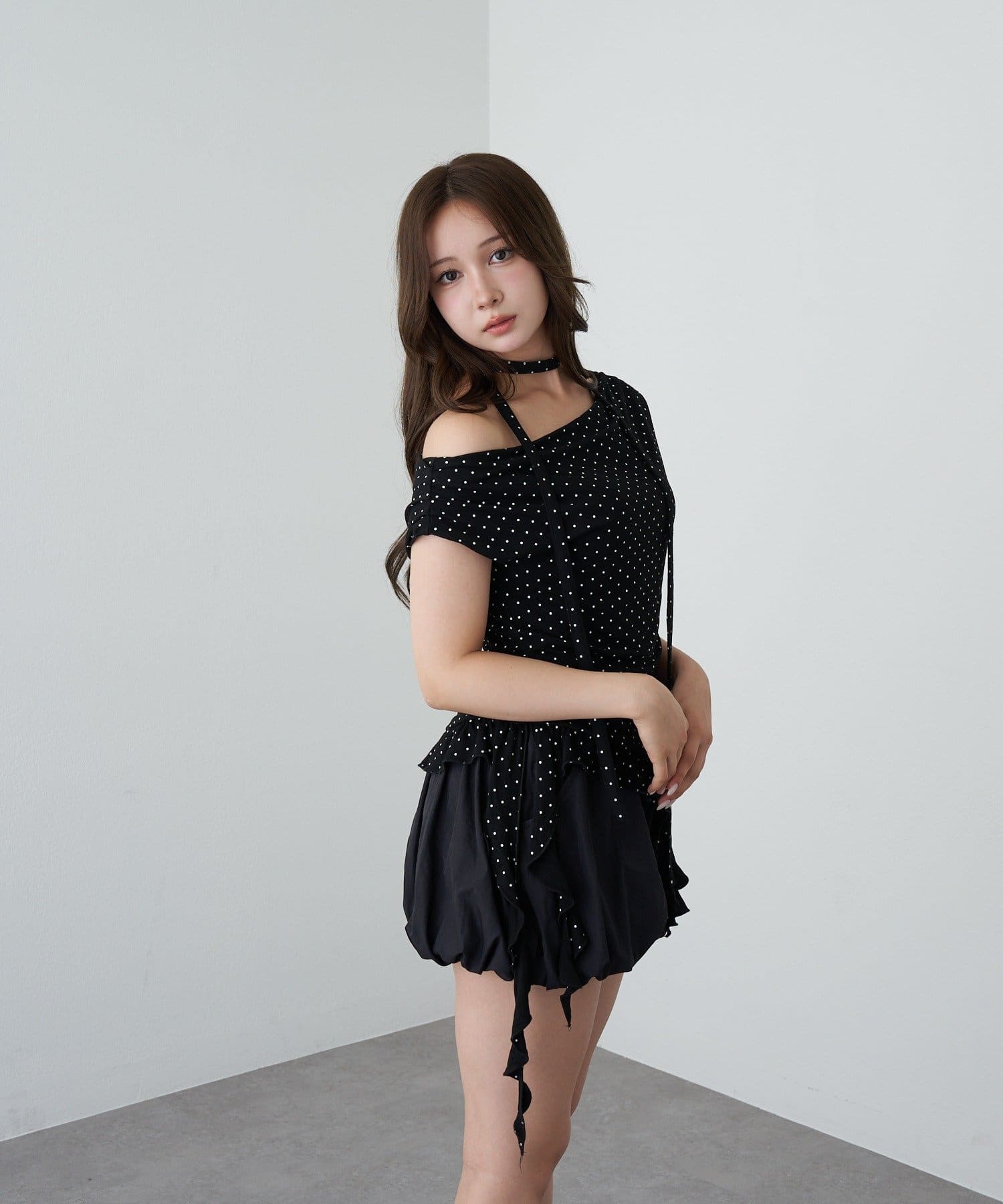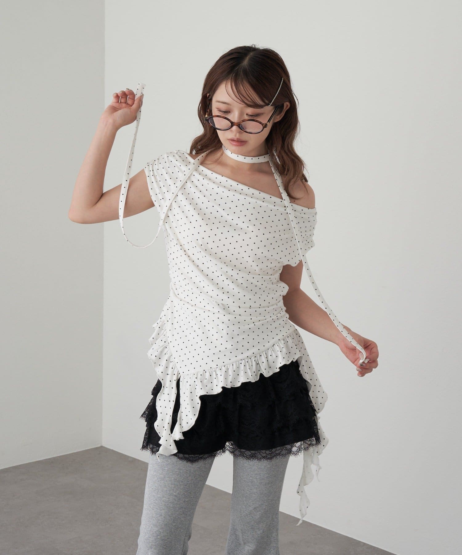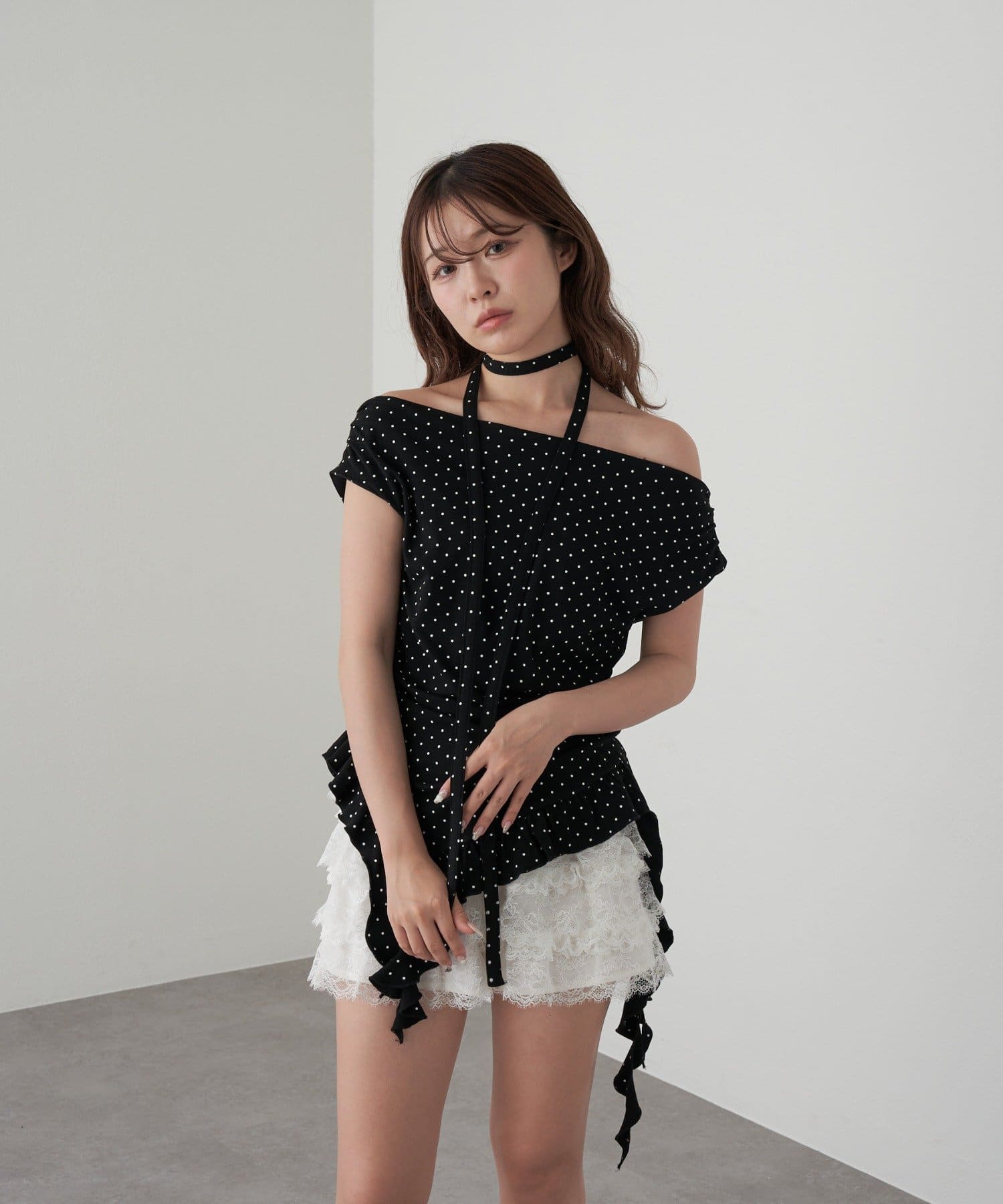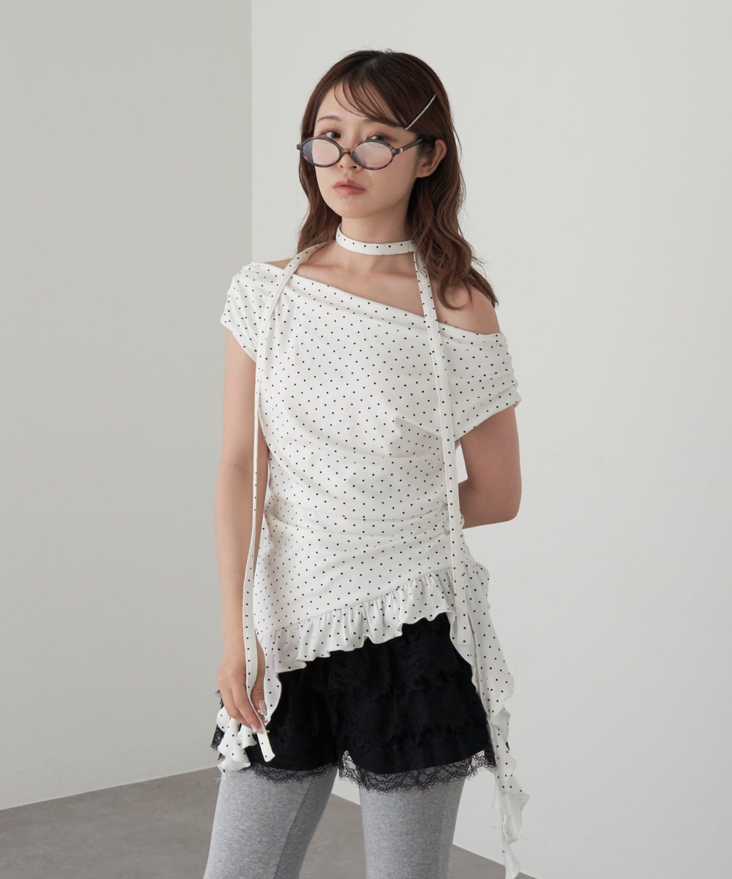 オフショル / ワンショル / チョーカー付き / モノトーン / バレエコア / ウィッシュコア