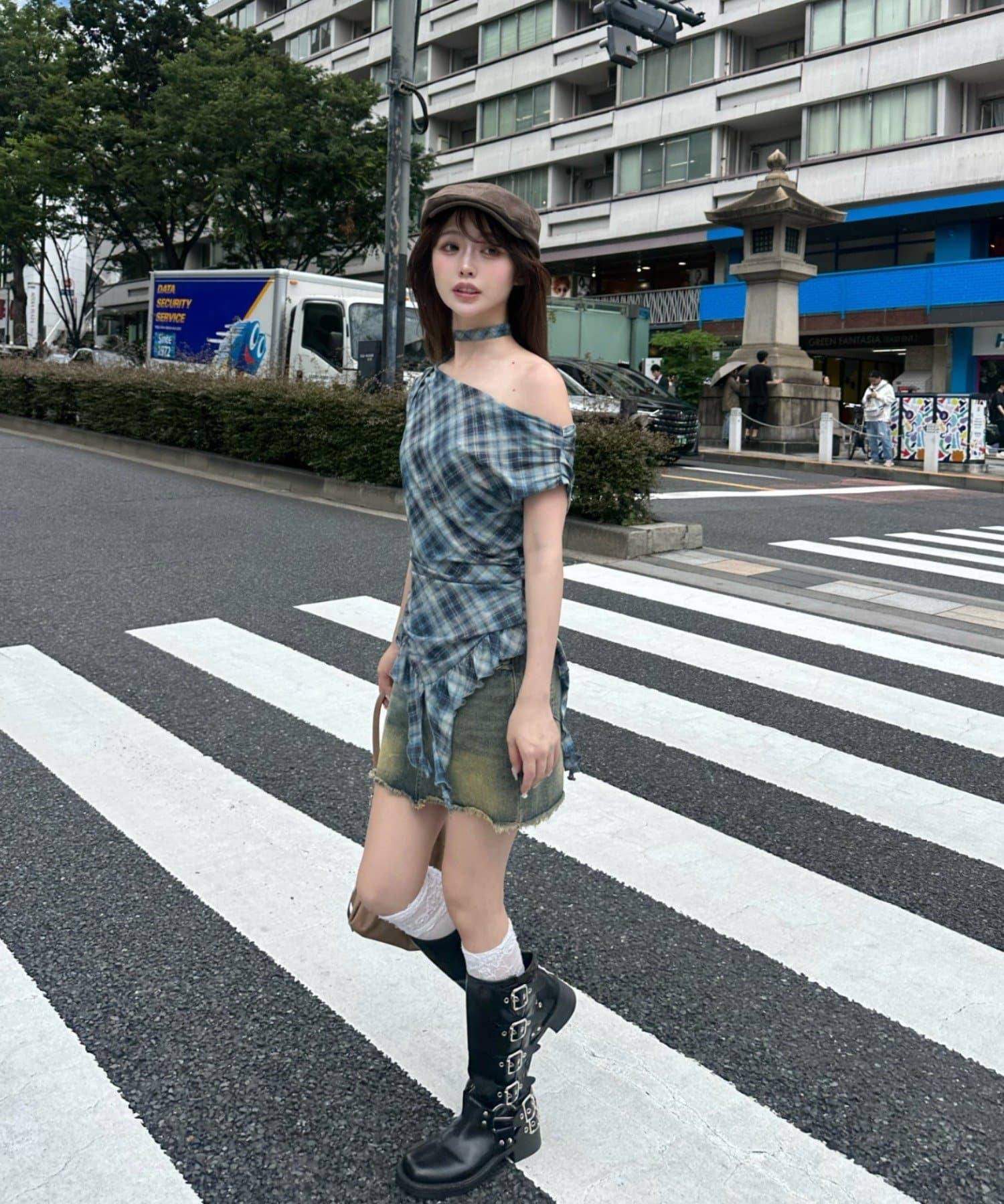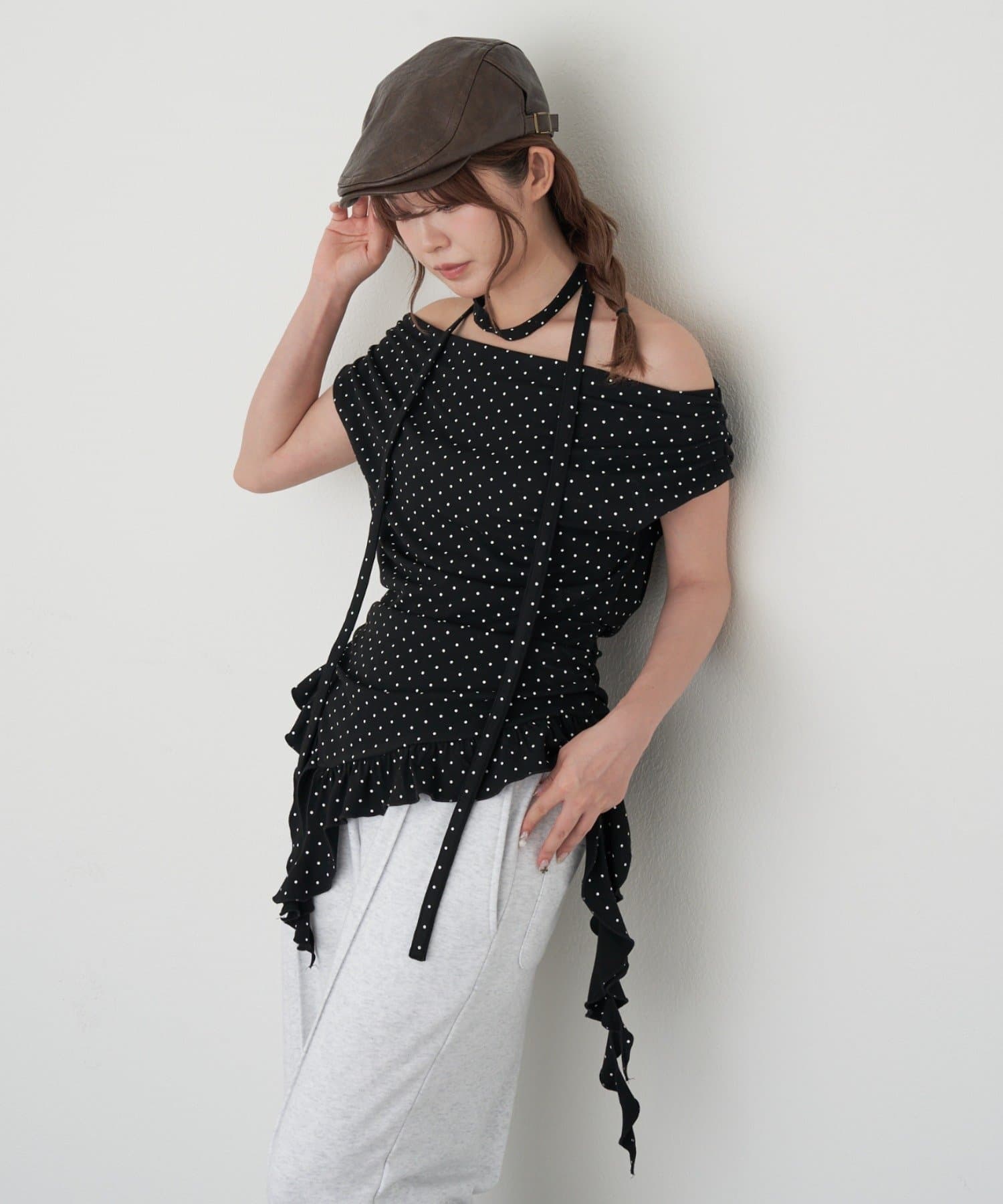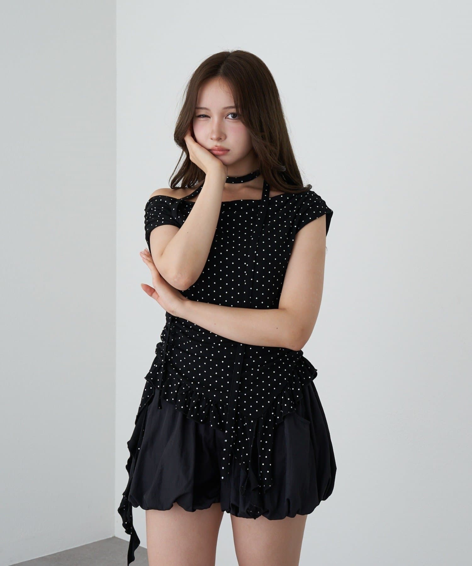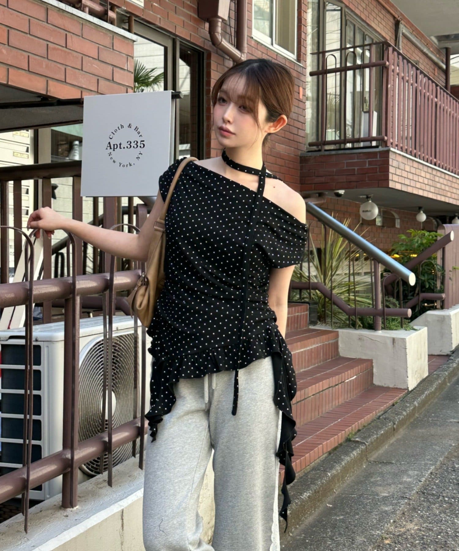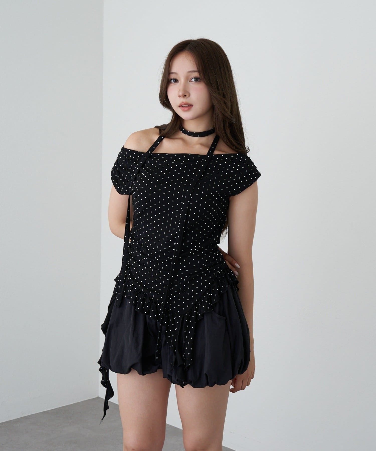 オフショル / ワンショル / チョーカー付き / モノトーン / バレエコア / ウィッシュコア